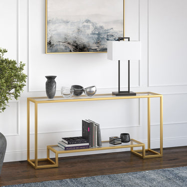 The geometric shapes of this coffee table add to its Hollywood Regency appeal and overall glam look. Form meets function as the lower shelf is stylishly raised to offer additional shelf space. It seamlessly fits into any room with your choice of neutral metallic finishes.