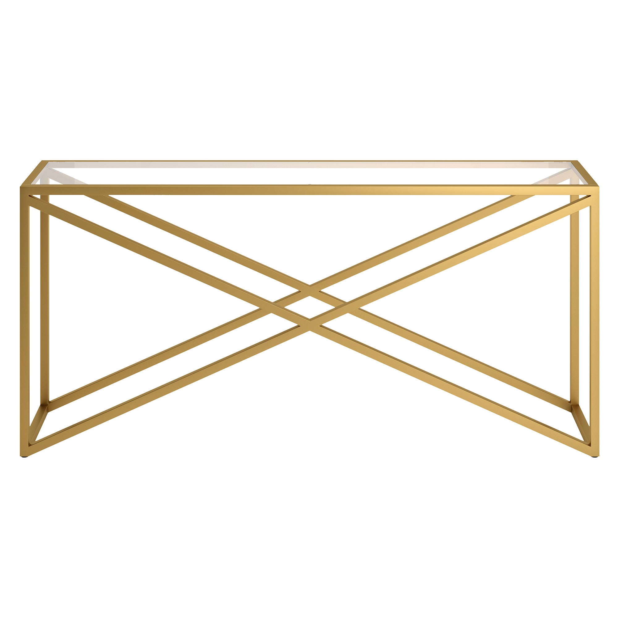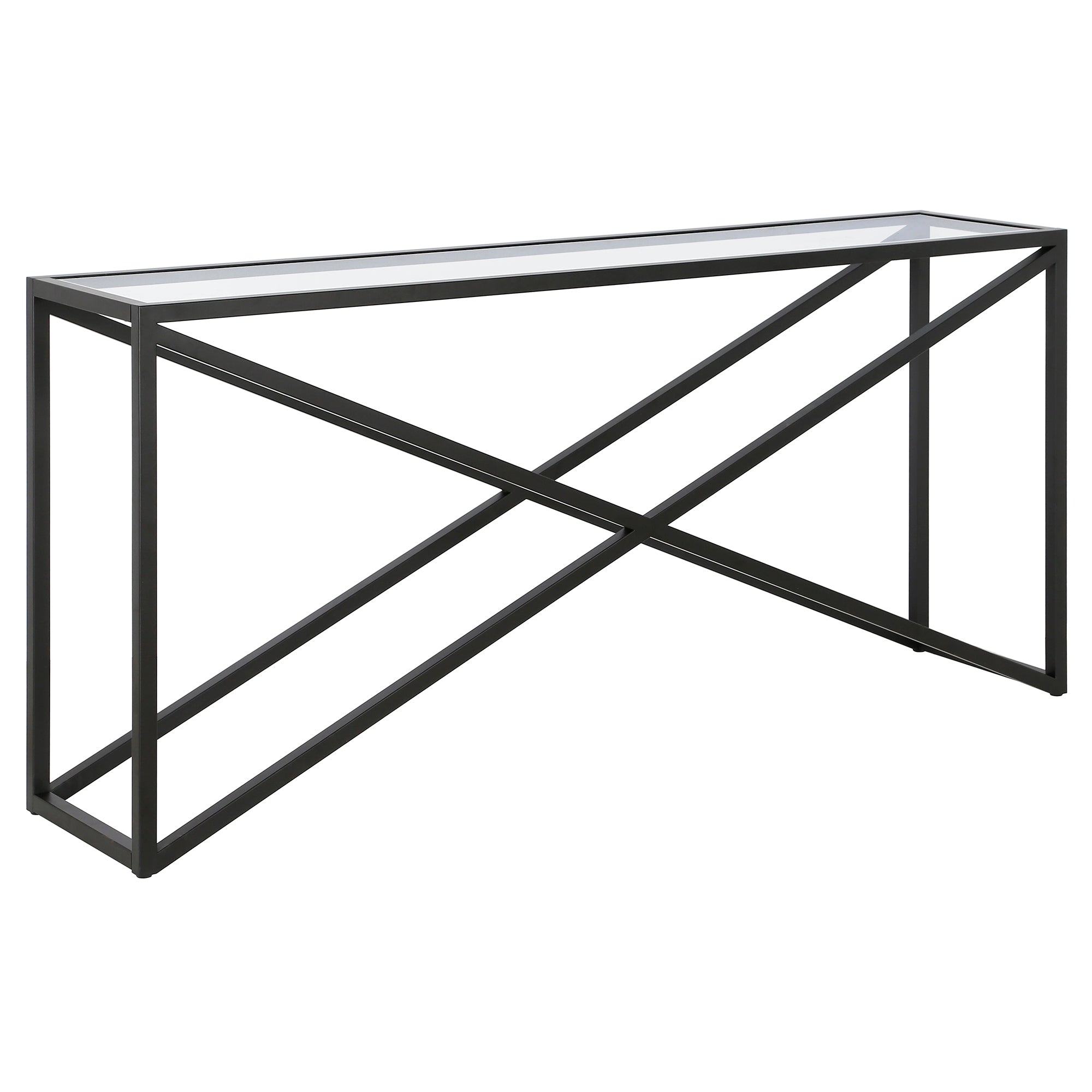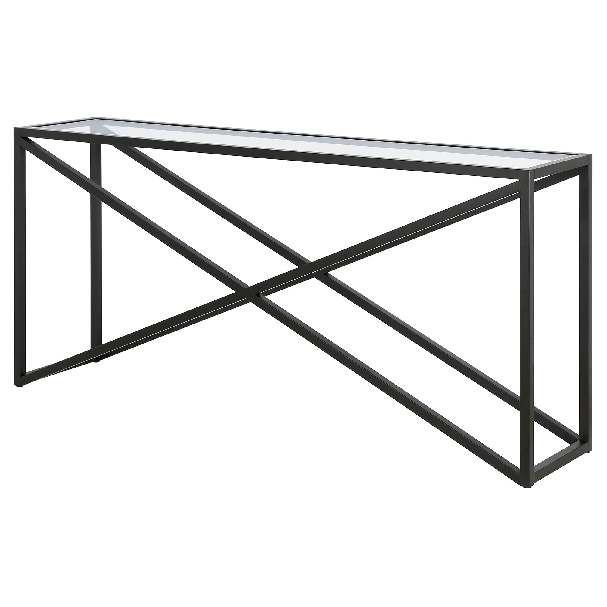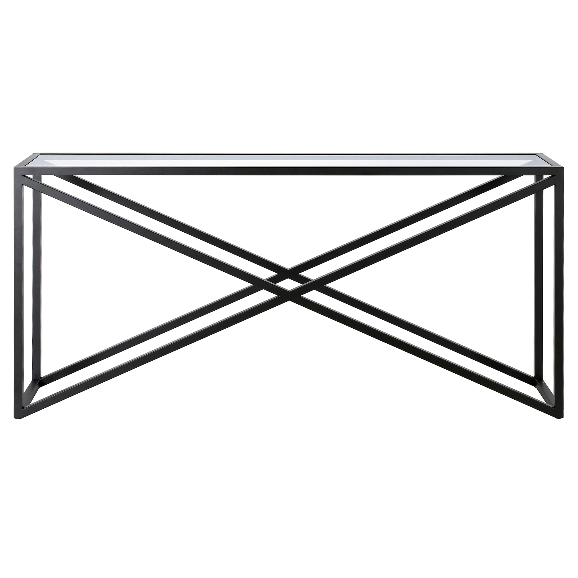 This urban inspired accent table is the perfect pick for your living room or den ensemble. Its base features x-shaped legs creating geometric interest. The top is a transparent tempered glass which shows off the architectural connection and carries the structured design through the frame.