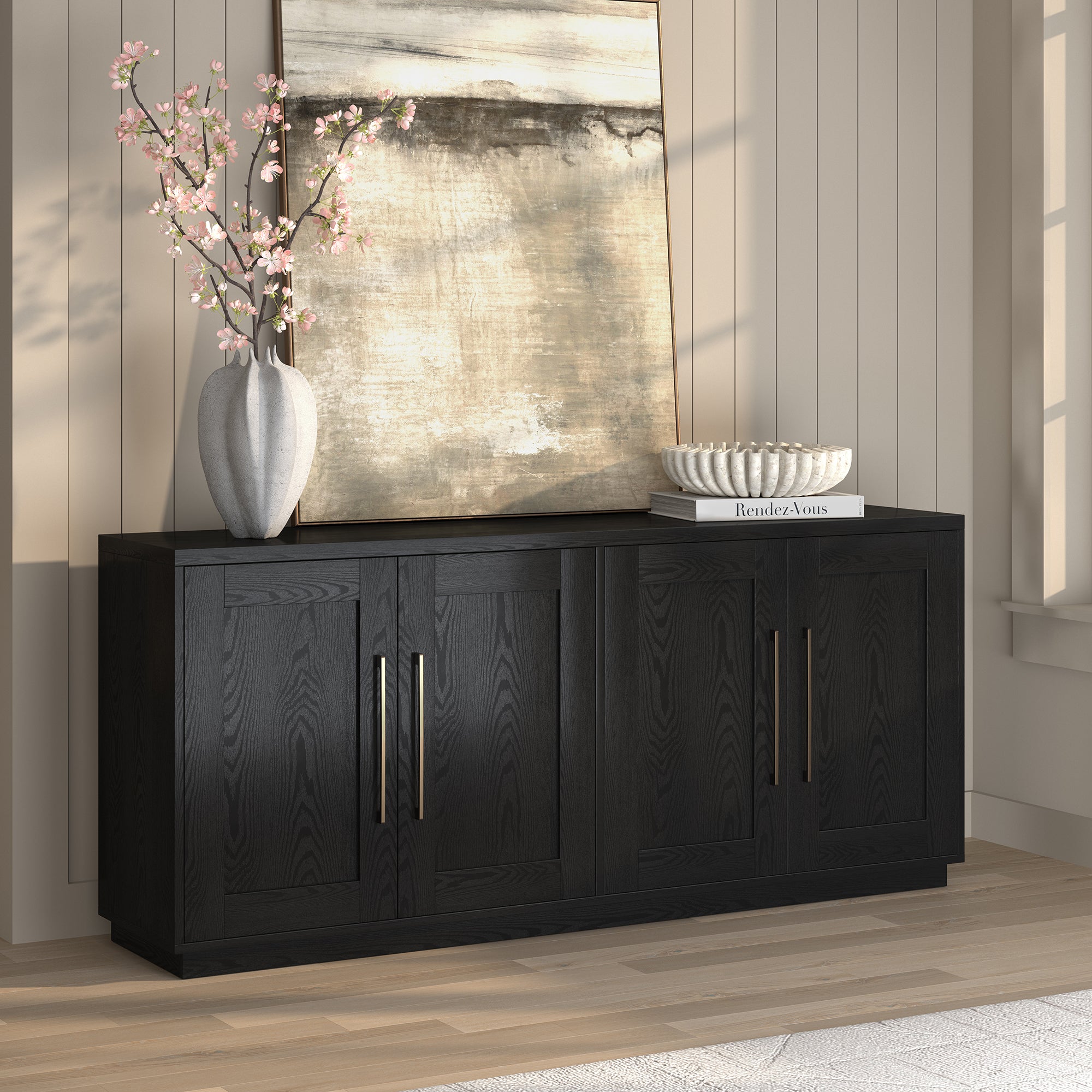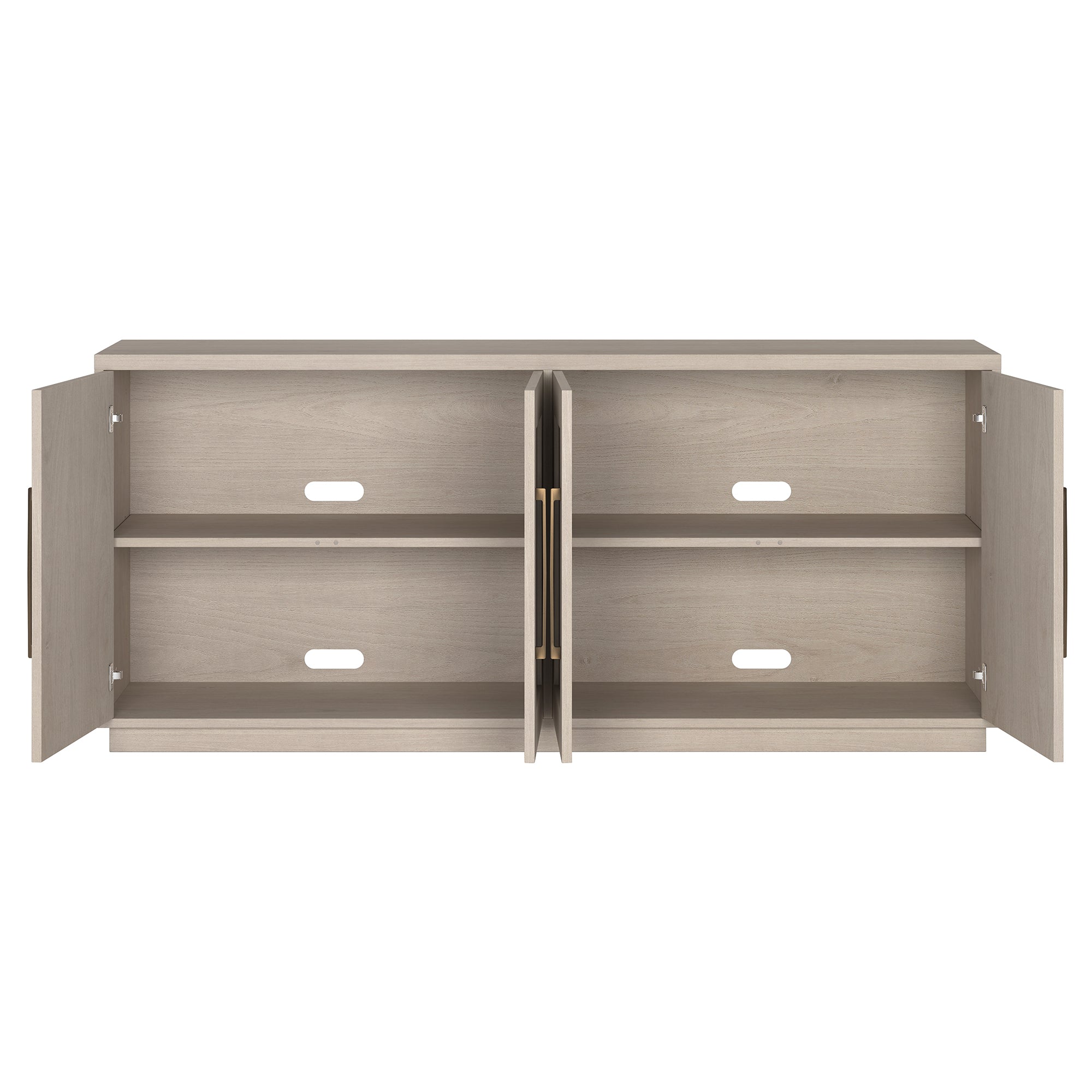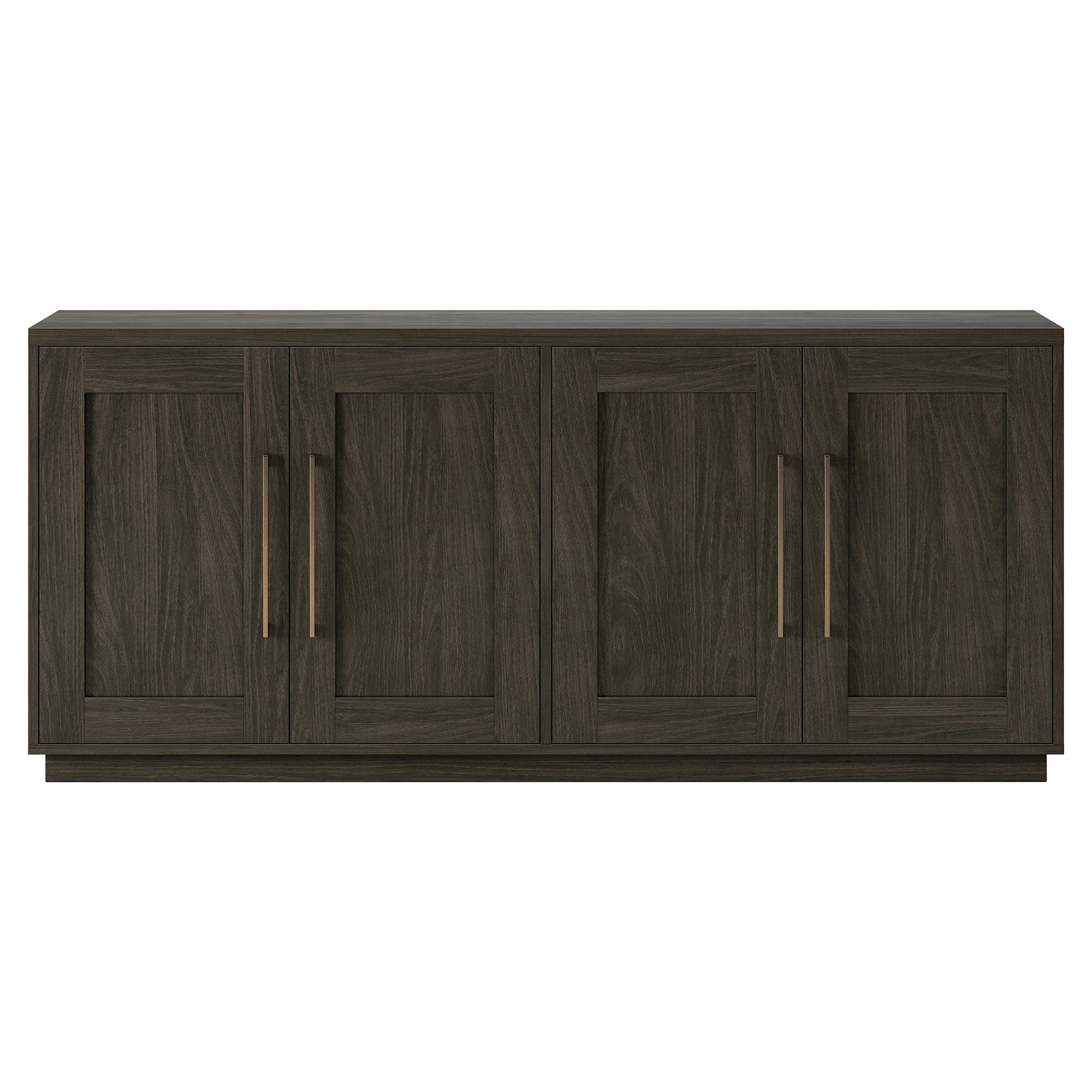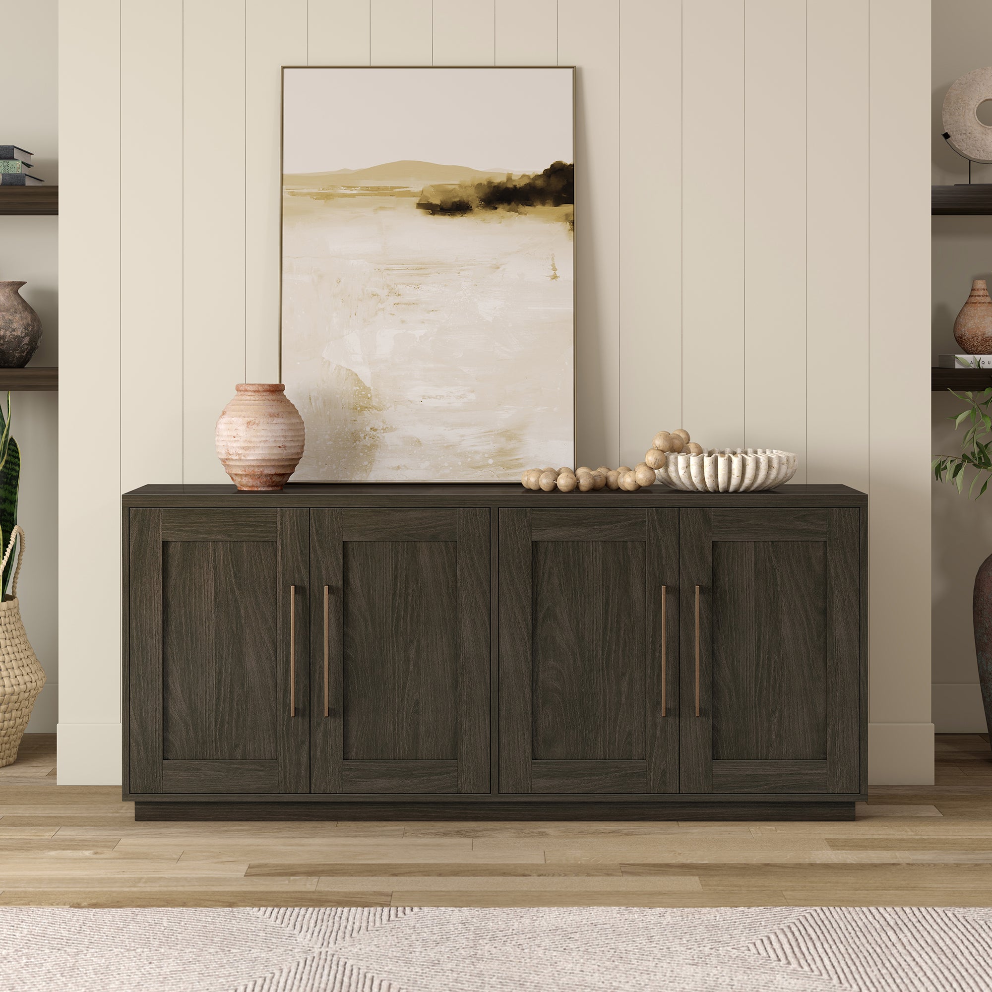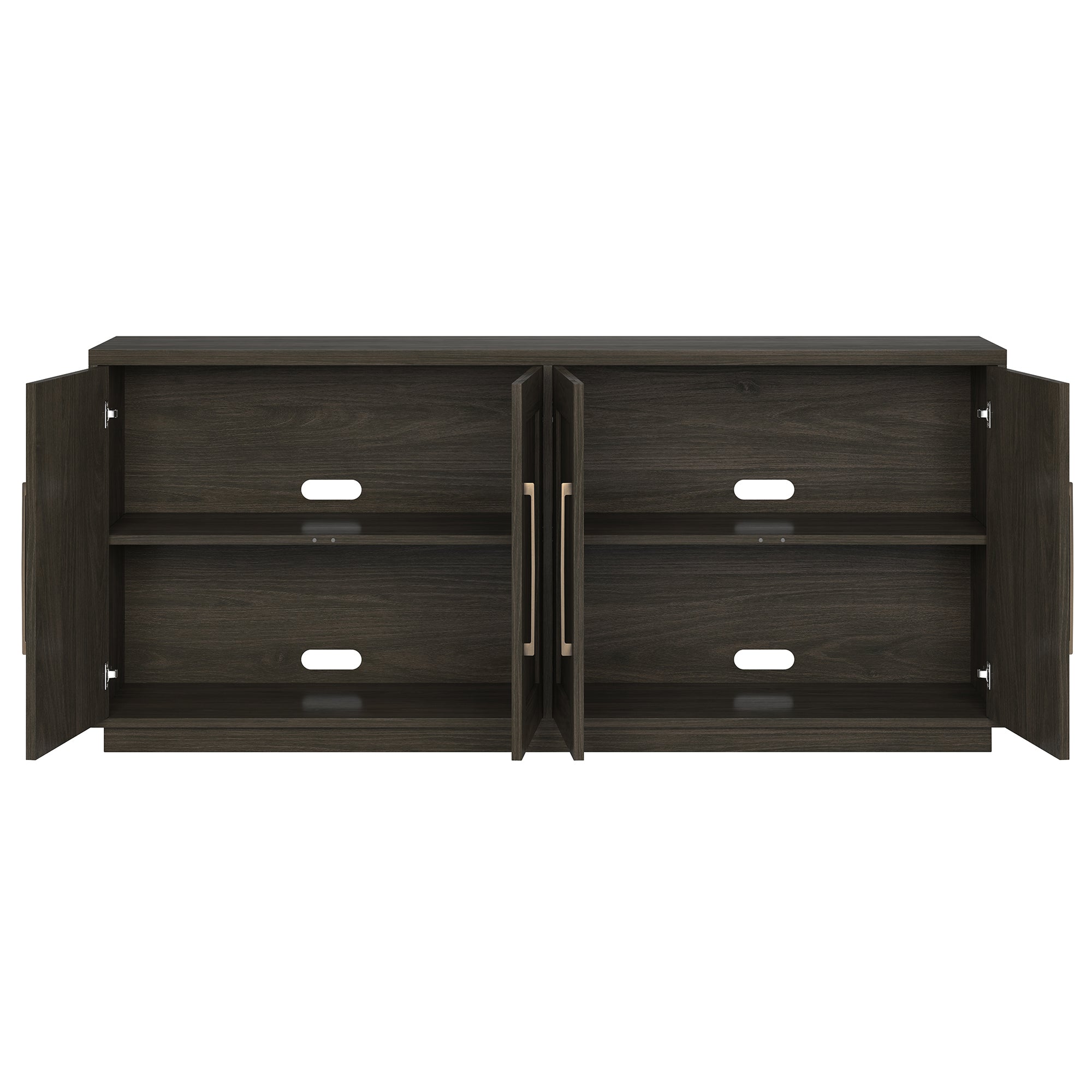 Cultivate effortless transitional style with the clean lines and eye-catching details of this 68” Buffet Table. Easy to style with many design inspirations, a rich wood-tone finish complements sleek metal cabinet handles. Featuring dual-level closed cabinet shelving, there’s plenty of storage space for your consoles and media collections, while cable management cut-outs in the finished back panel keep your cable and cord situation in check. Whether placed in your dining room or kitchen as a traditional buffet, or your living room for additional storage, this sturdy and spacious piece creates endless options for entertaining.