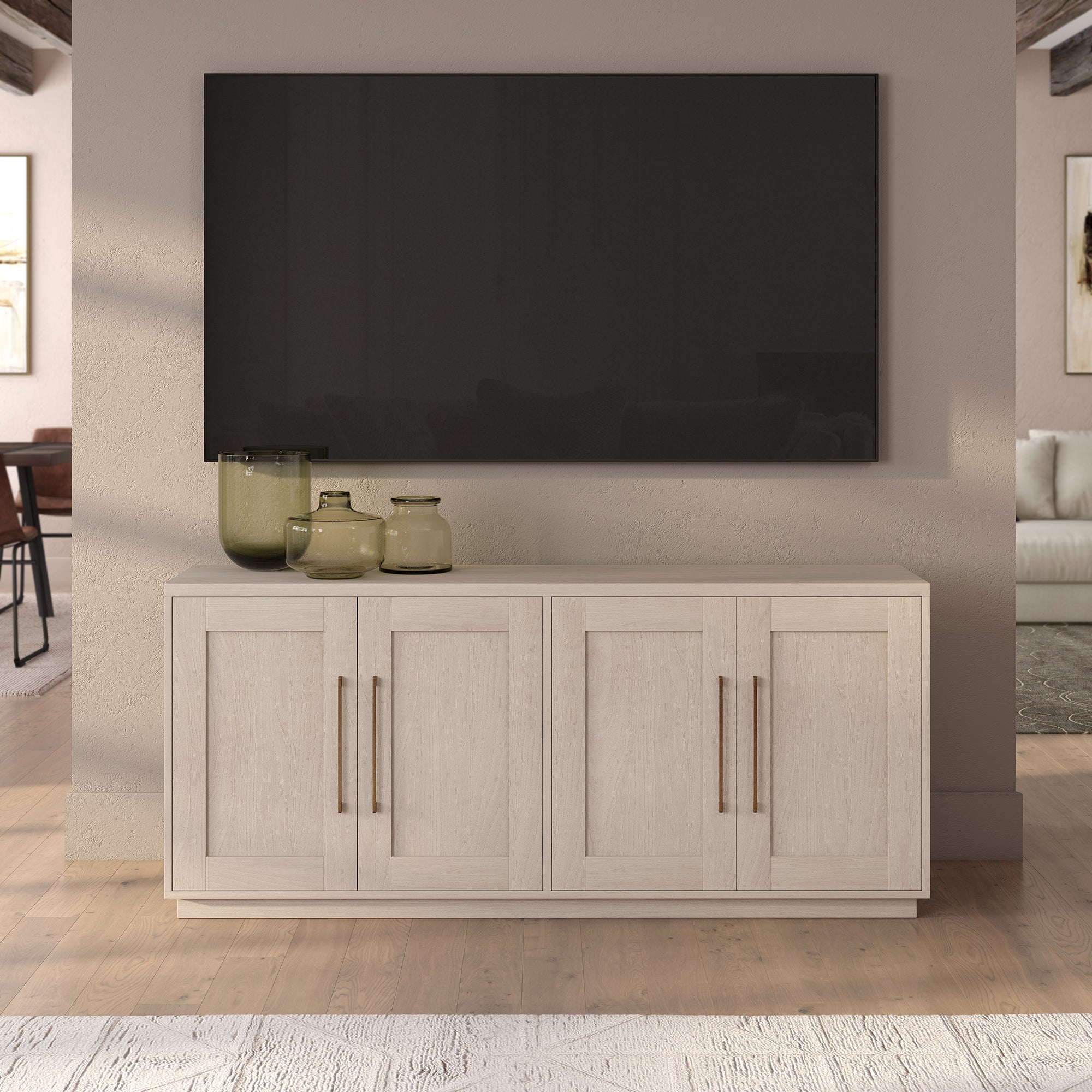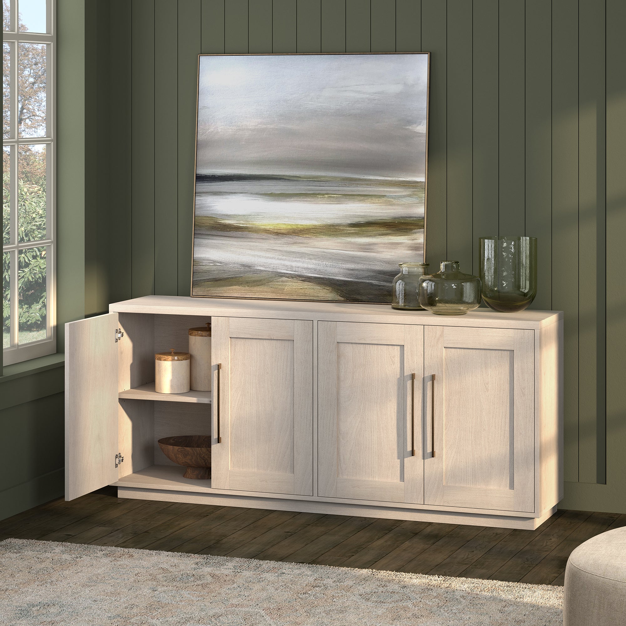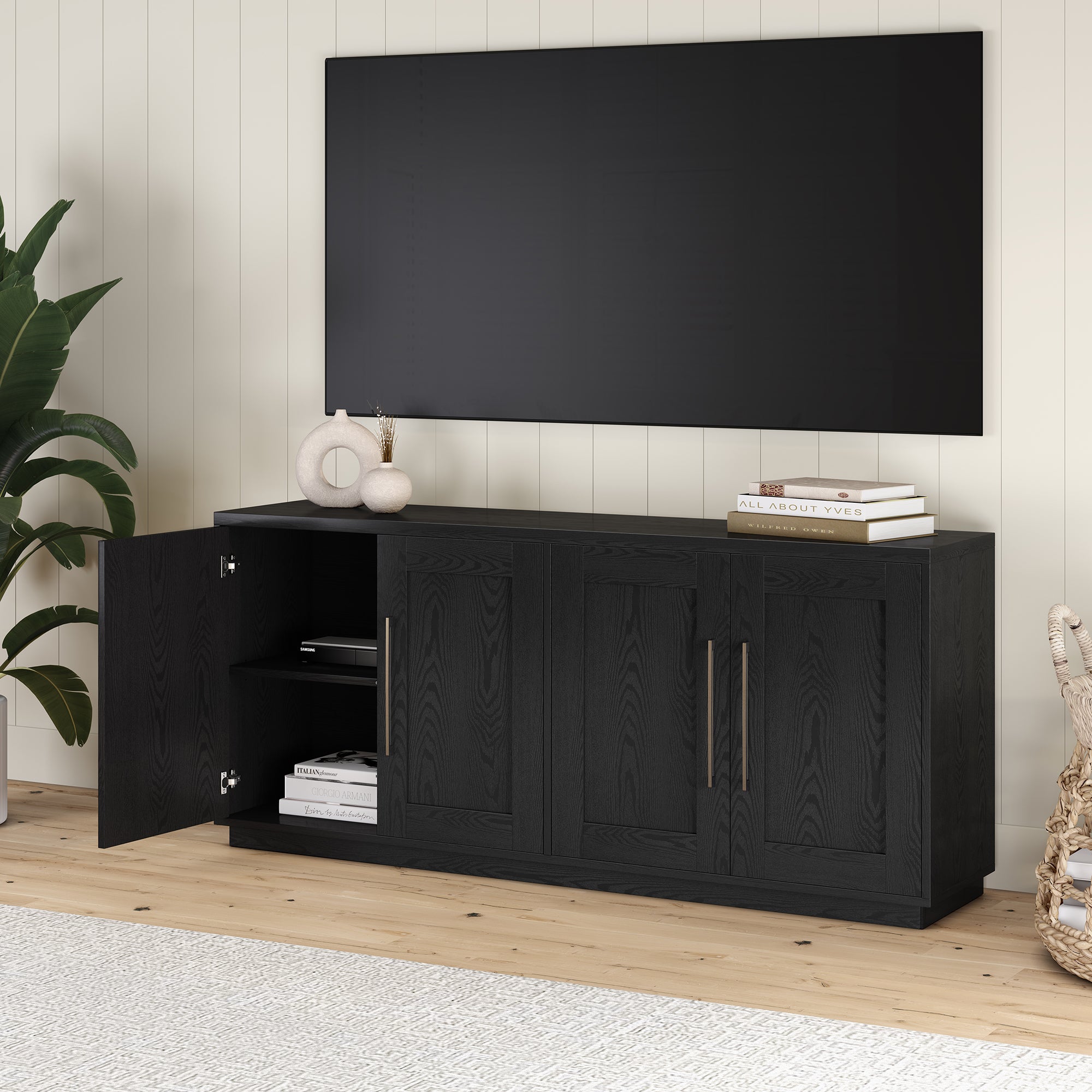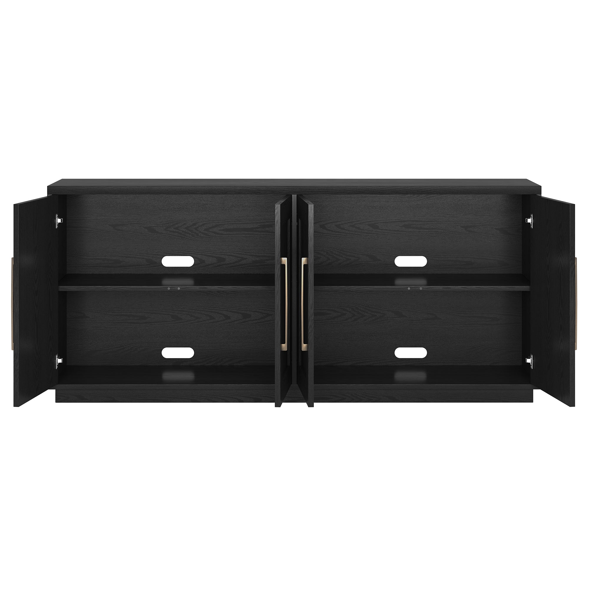 Cultivate effortless transitional style with the clean lines and eye-catching details of this 68” Buffet Table. Easy to style with many design inspirations, a rich wood-tone finish complements sleek metal cabinet handles. Featuring dual-level closed cabinet shelving, there’s plenty of storage space for your consoles and media collections, while cable management cut-outs in the finished back panel keep your cable and cord situation in check. Whether placed in your dining room or kitchen as a traditional buffet, or your living room for additional storage, this sturdy and spacious piece creates endless options for entertaining.