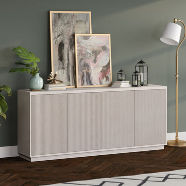 This versatile sideboard buffet table is the ultimate functional display piece. The clean-lined design includes plenty of storage, with two large enclosed cabinets featuring interior adjustable shelves to neatly organize your glassware, linens, and those fancy dishes you really should be using more often. Leveling feet and adjustable Euro door hinges ensure everything sits just right, and cable management cut-outs allow you to easily store and charge small appliances. Whether placed in your dining room or kitchen as a traditional buffet, or your living room for additional storage, this sturdy and spacious piece creates endless options for entertaining. From holiday dinners to your next group game night, get ready to be the host with the most!