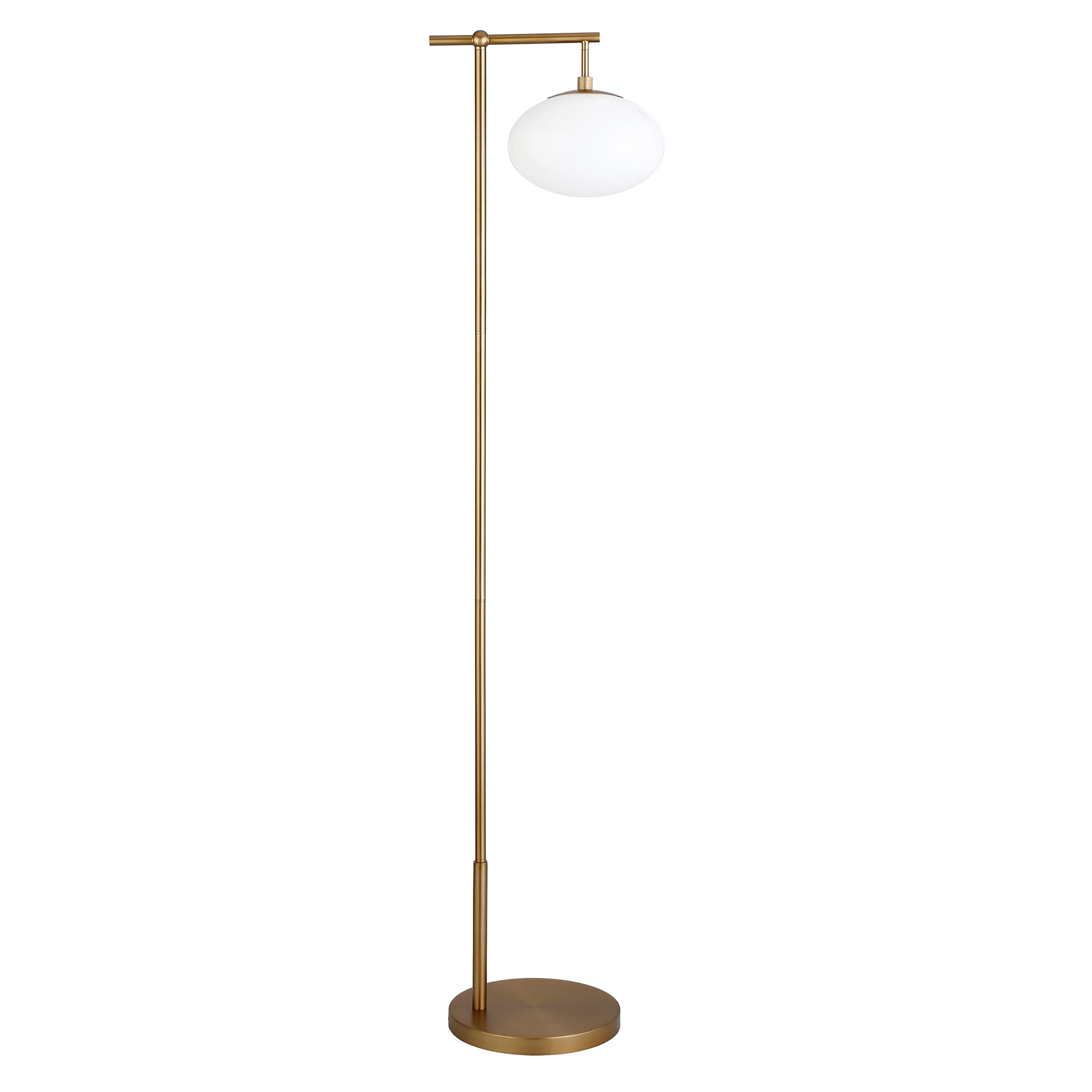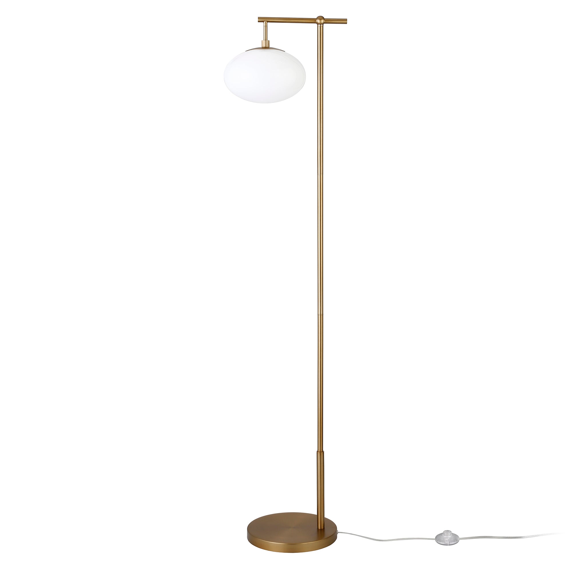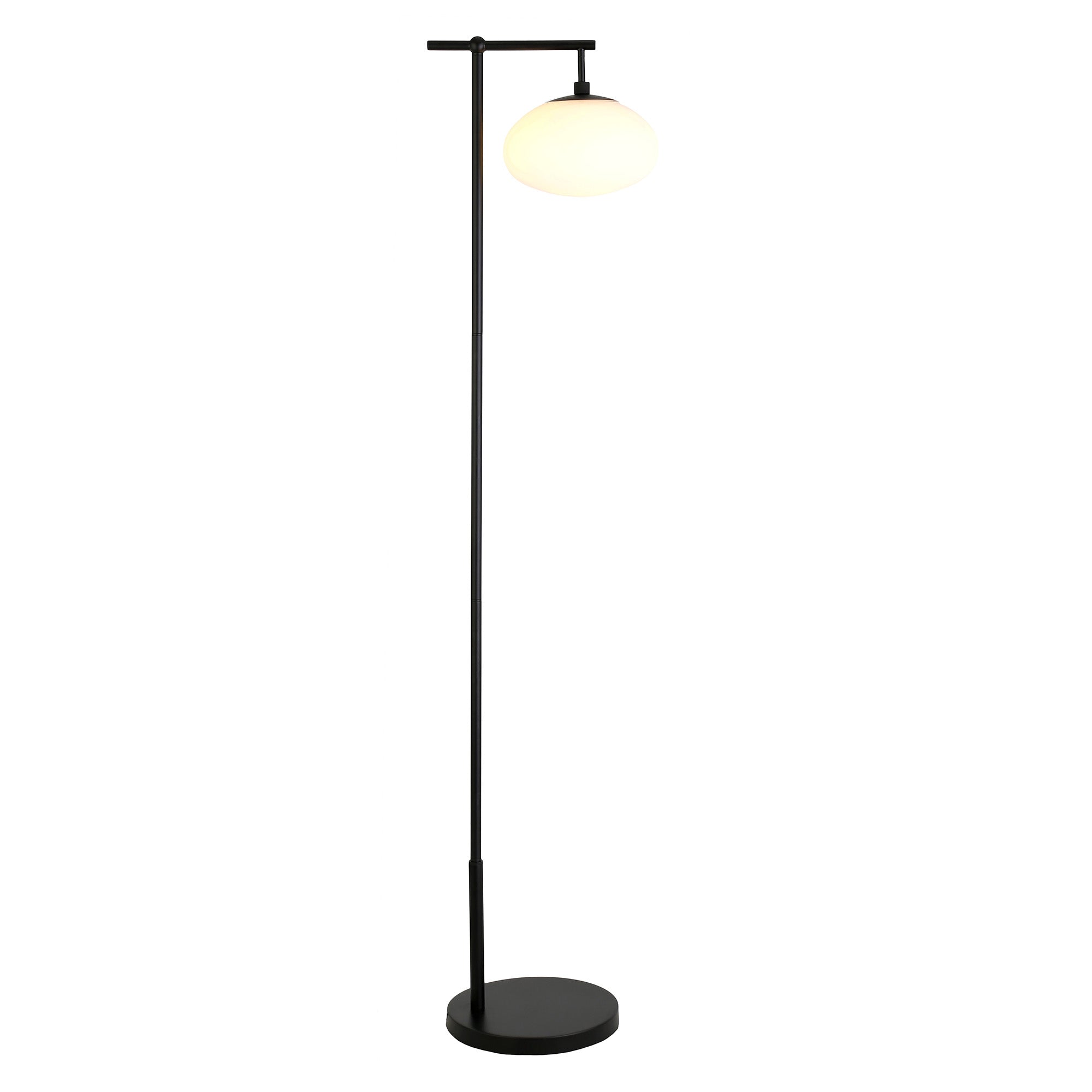 The clean and modern lines of this floor lamp, paired with its glass globe shade adds a visual interest to any room. The L-shaped frame allows light to shine directly on your workspace or reading nook. The handmade globe shade creates a subtle vintage look, while still maintaining a contemporary look and feel. This floor lamp is the perfect companion to your living room, bedroom, den, and more.