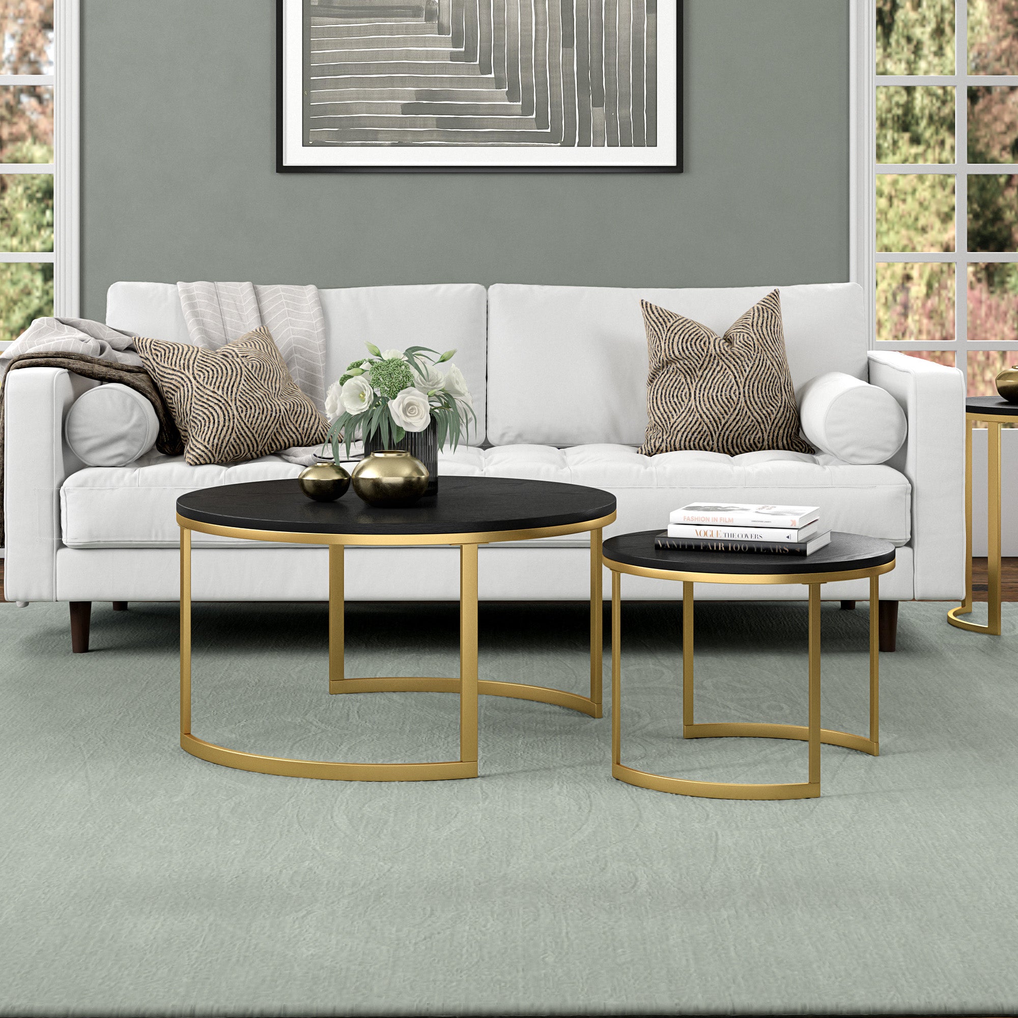 An open geometric design takes this nesting coffee table set to the next level. Nest them fully or separate them to best suit your needs. A seamless blend of mixed materials gives these tables an eclectic style that'll make your space look warm and inviting. Easy to assemble and easy to style, the wood-look top and blackened bronze frame make them the perfect addition to your living room or bedroom ensemble.