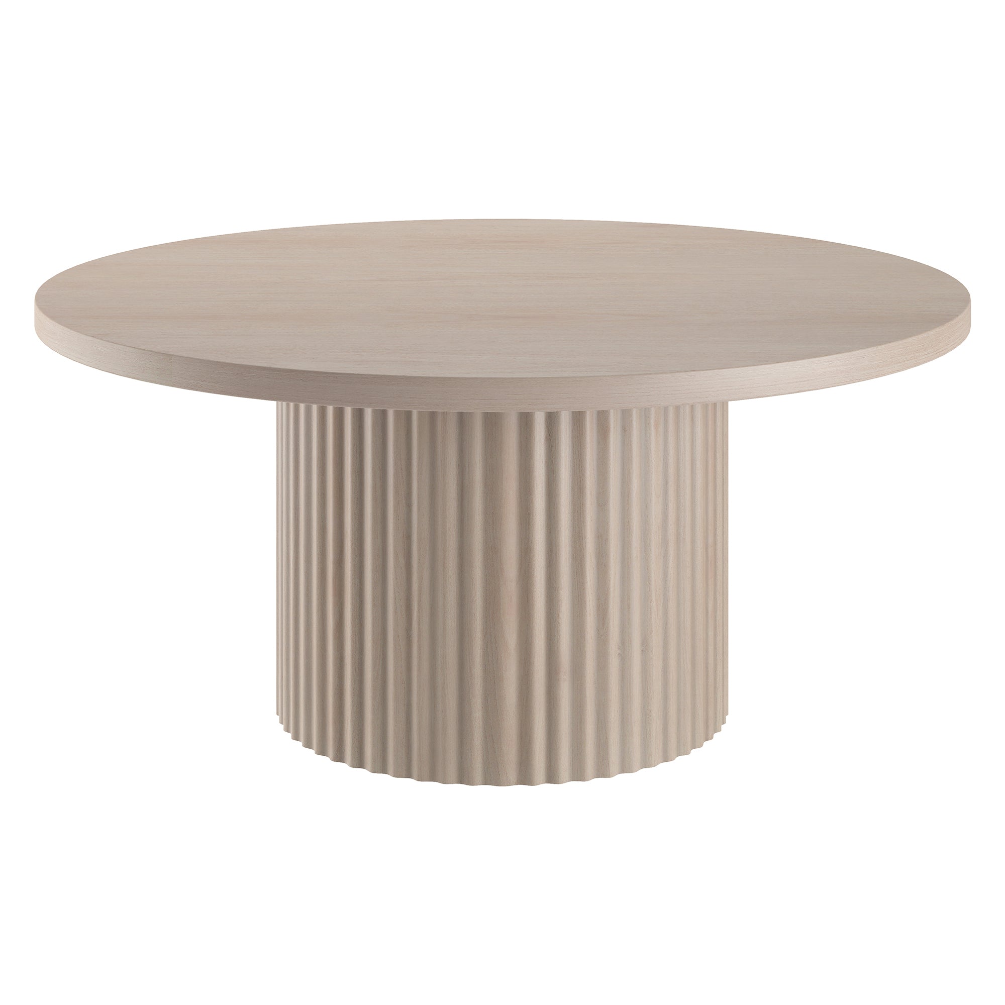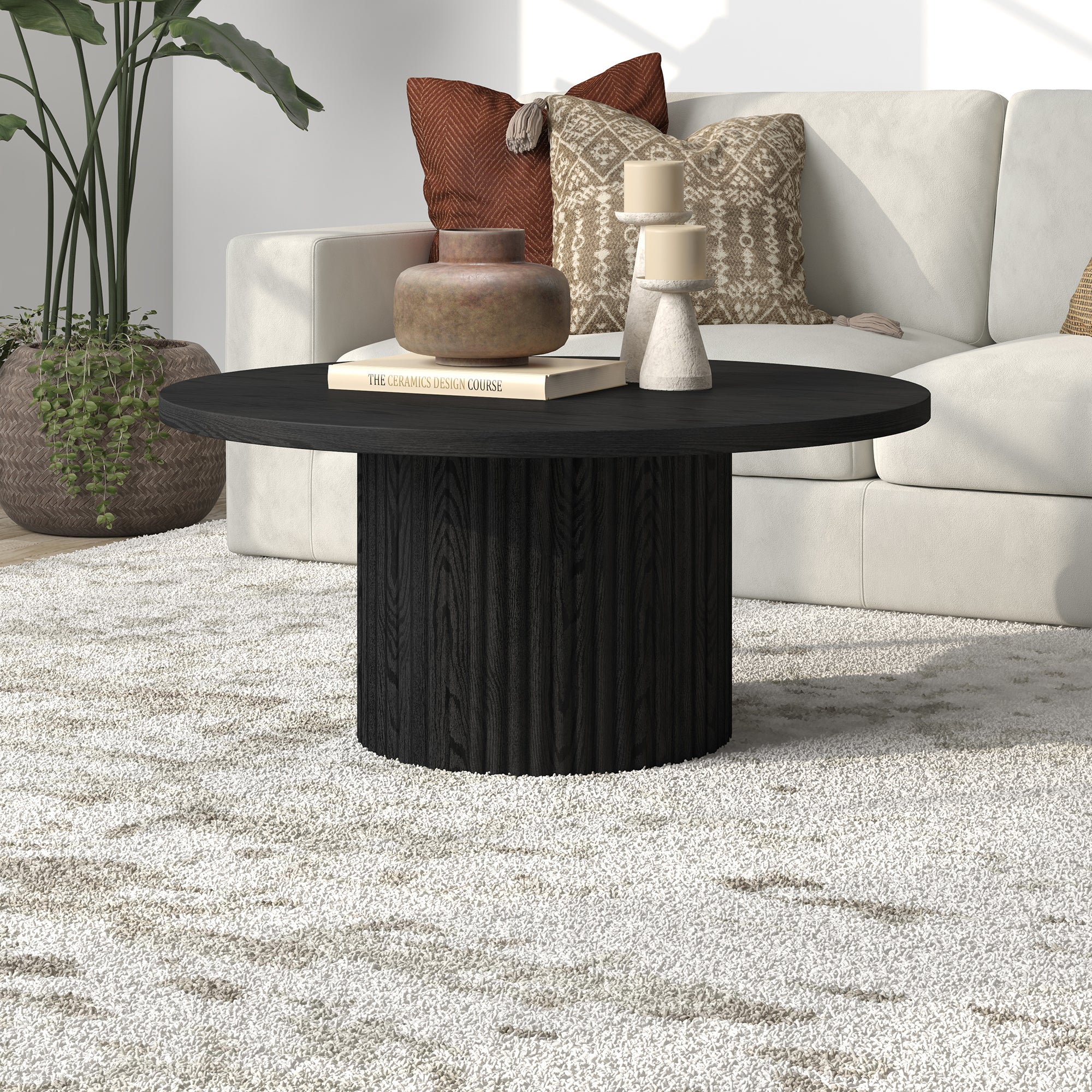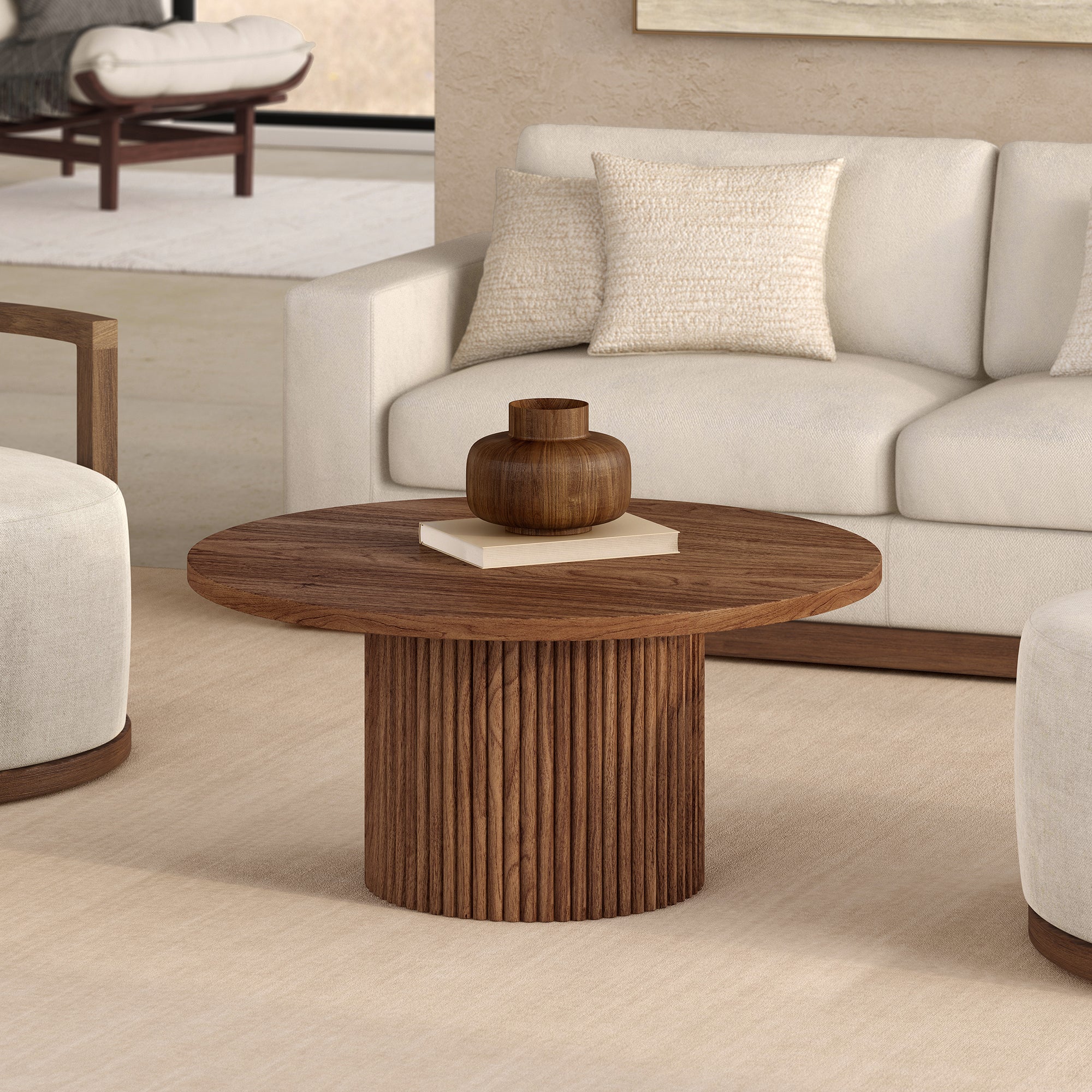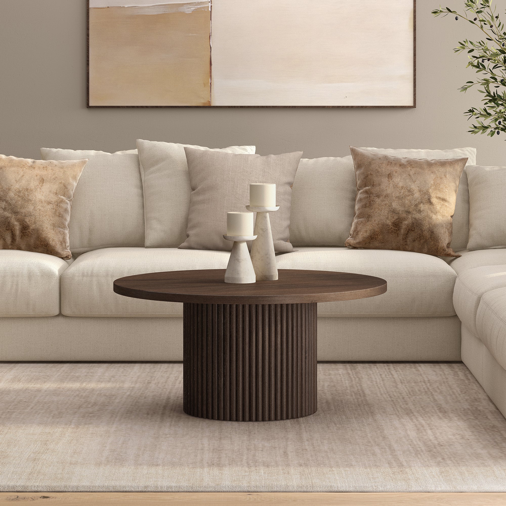 Striking in its simplicity, this minimalist coffee table emphasizes clean lines and straightforward design. The fluted pedestal base anchors the look, while the natural wood-look finish adds texture and tonal variation to your space. Featuring a 75 lb. weight capacity and adjustable leveling feet, this 32" round piece will imbue your living room, family room, or entertainment area with an on-trend focal point.