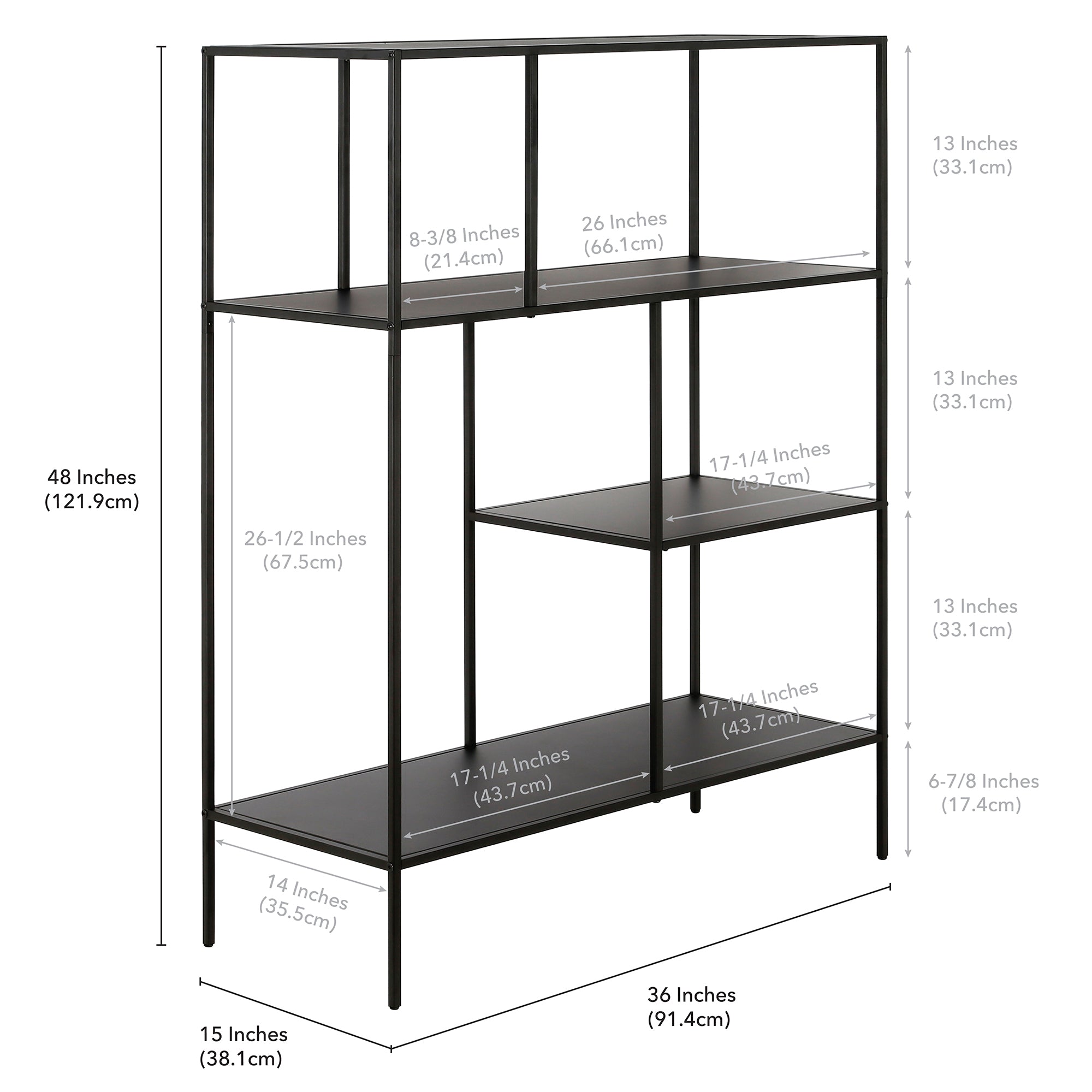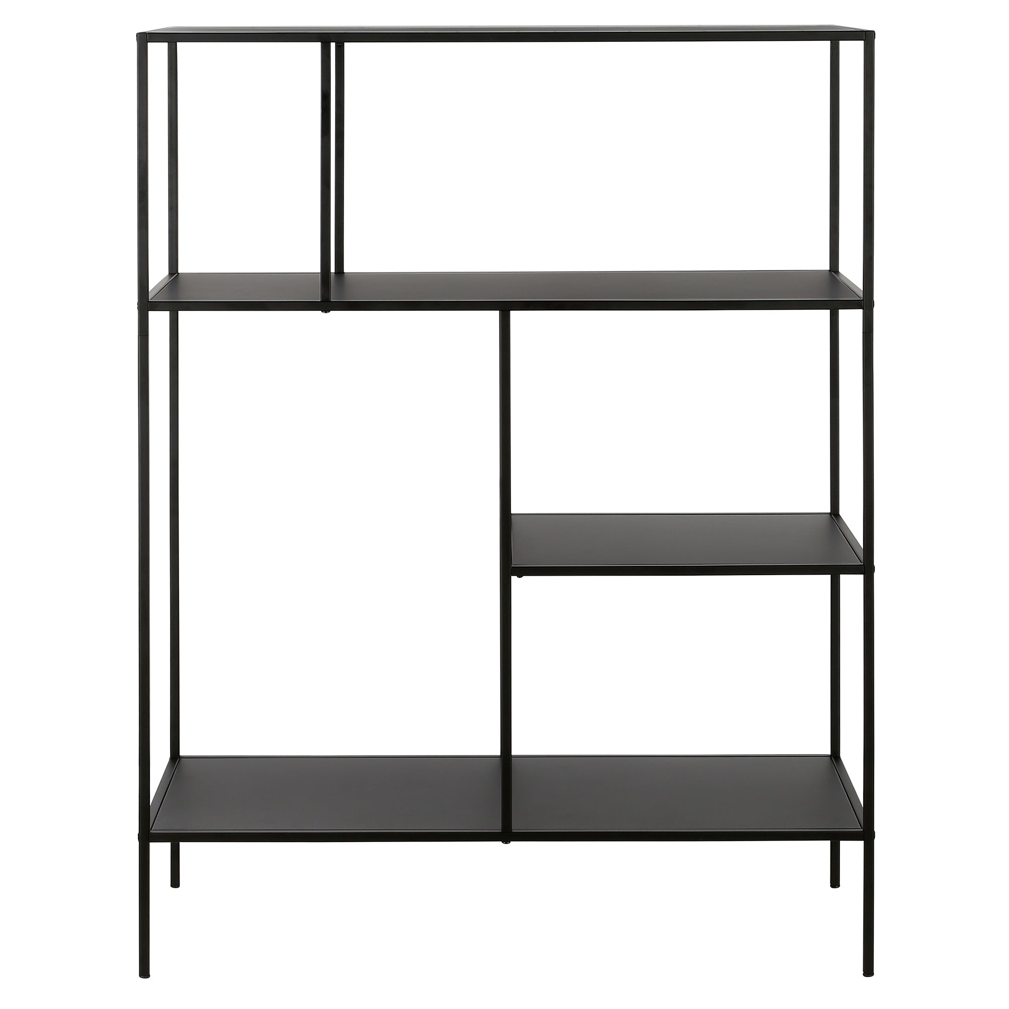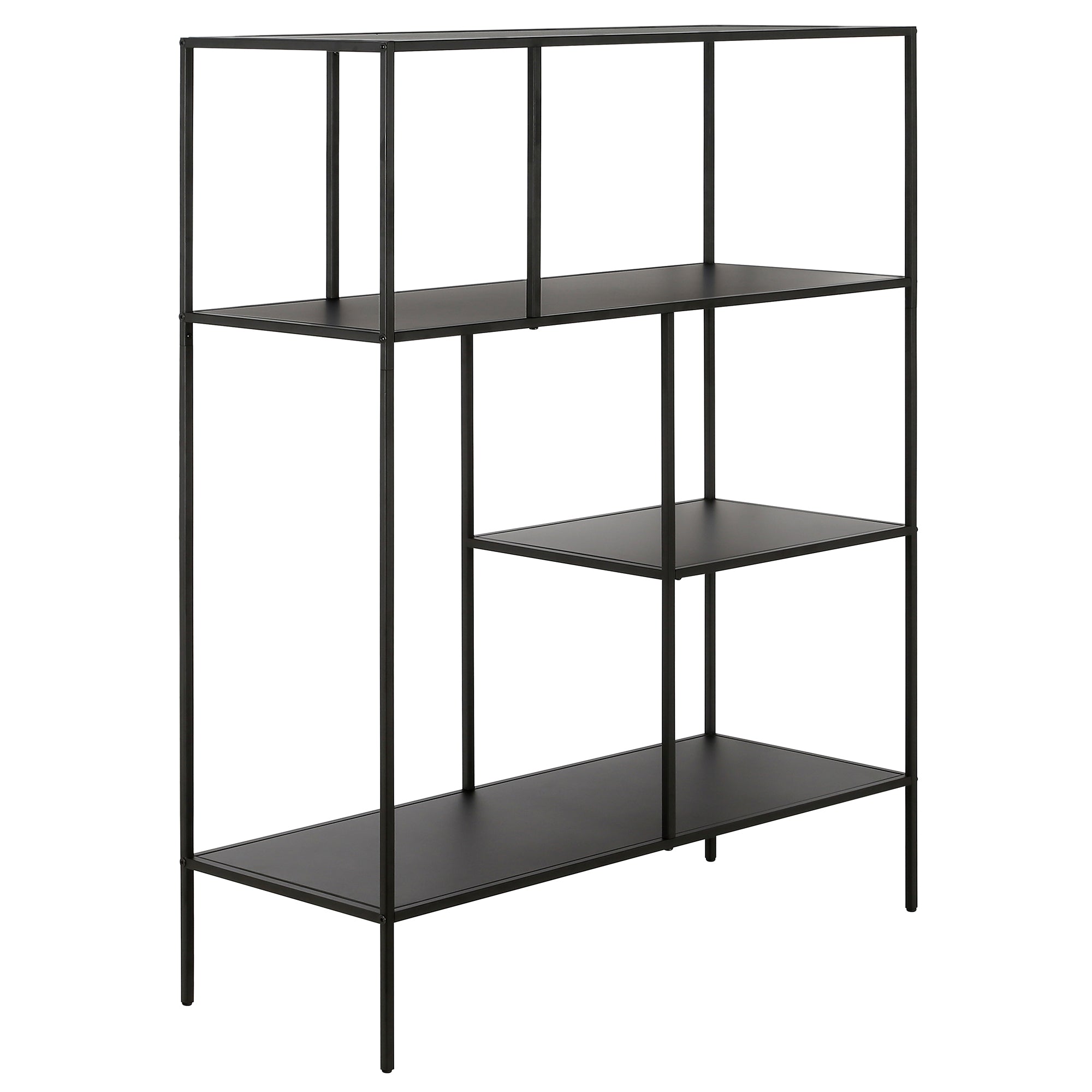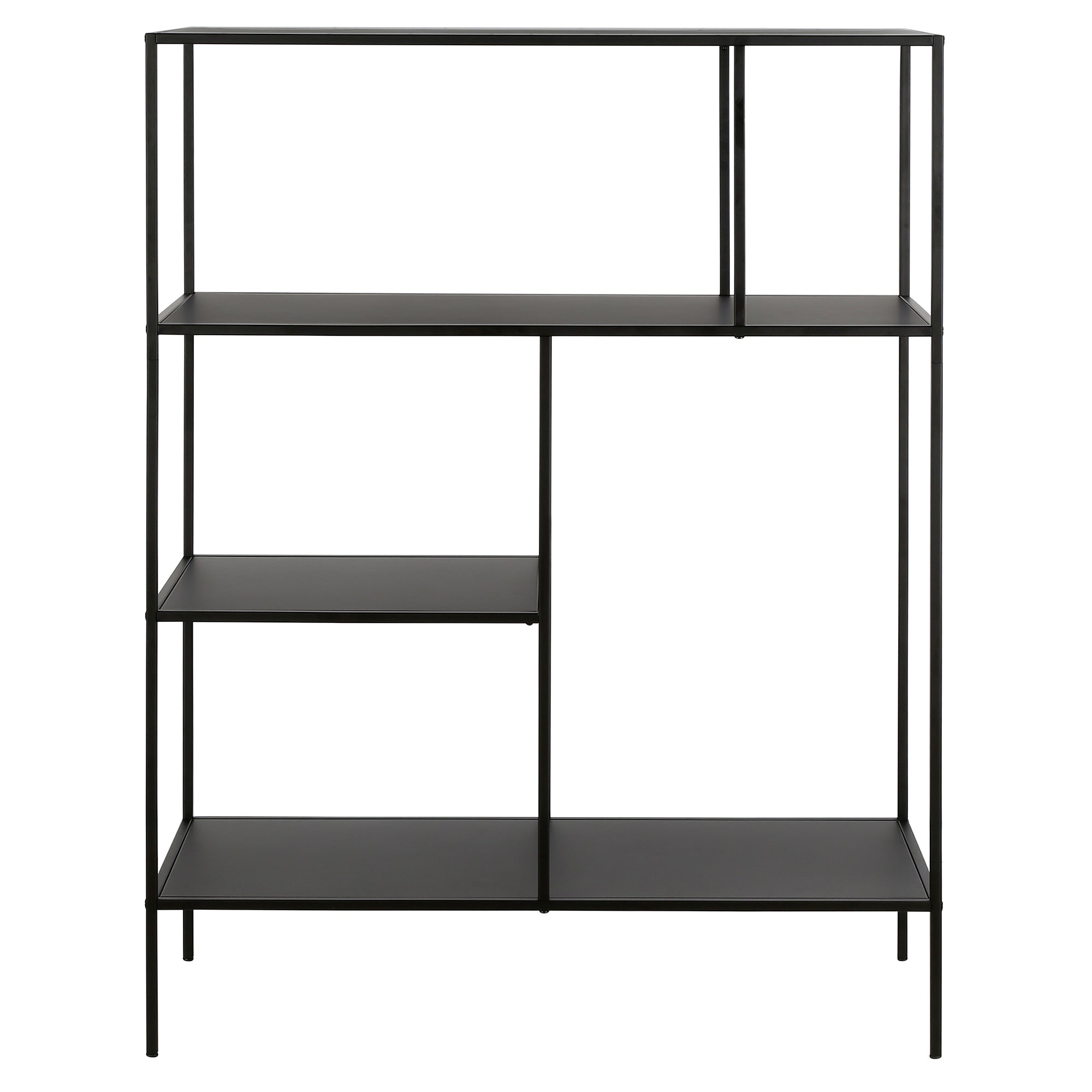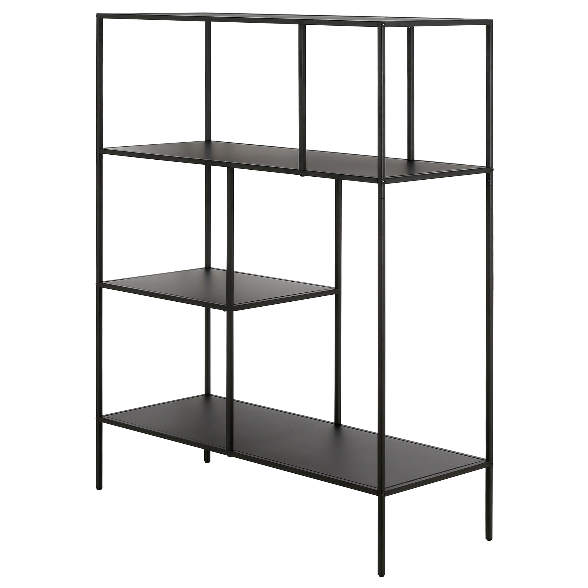 Showcase your favorite books and decorative items with this 48" bookcase. Crafted from steel, it strikes a clean-lined silhouette that’s equally at home in a contemporary living room or industrial home office. It boasts a neutral metallic finish and staggered metal shelves for a look that blends with nearly any color palette.