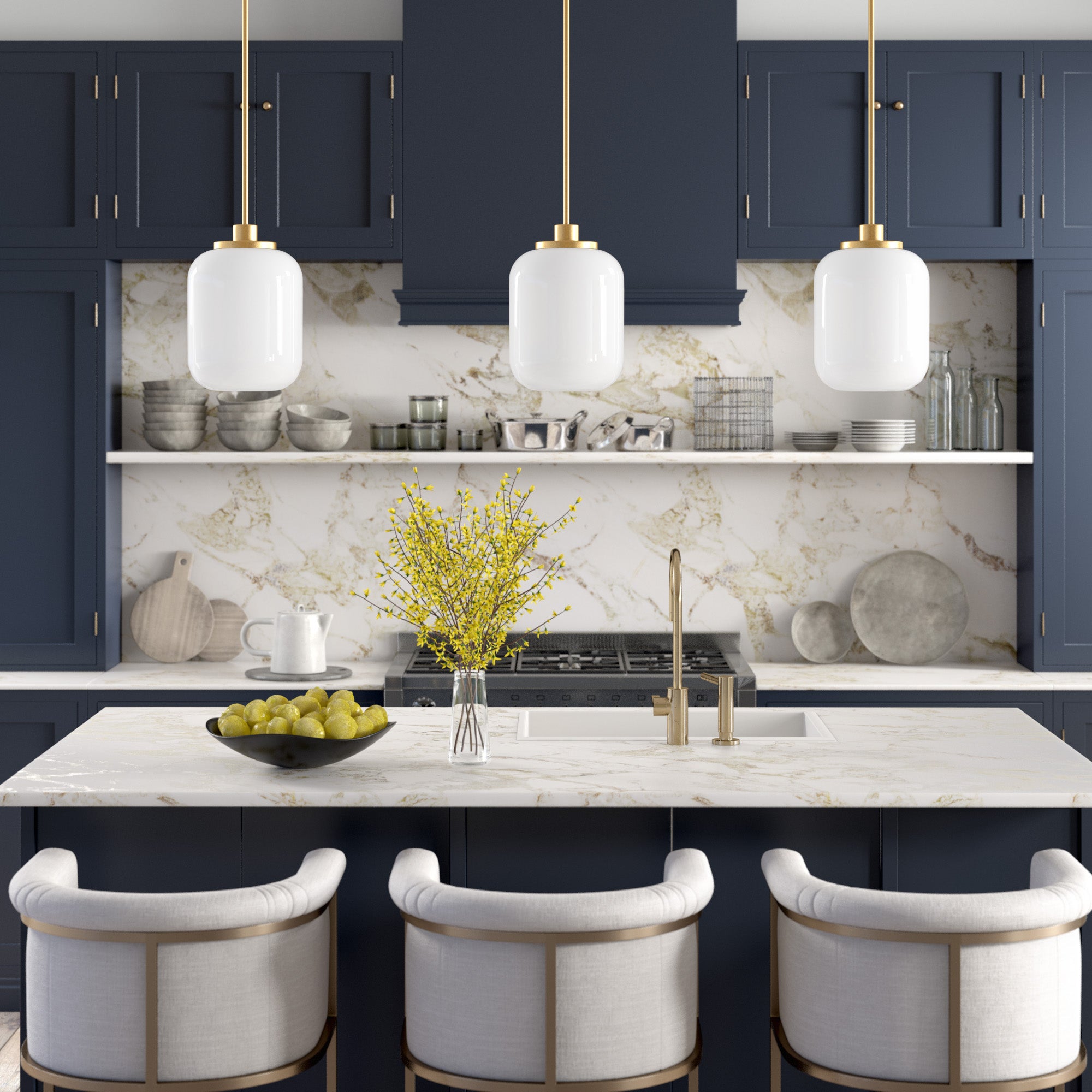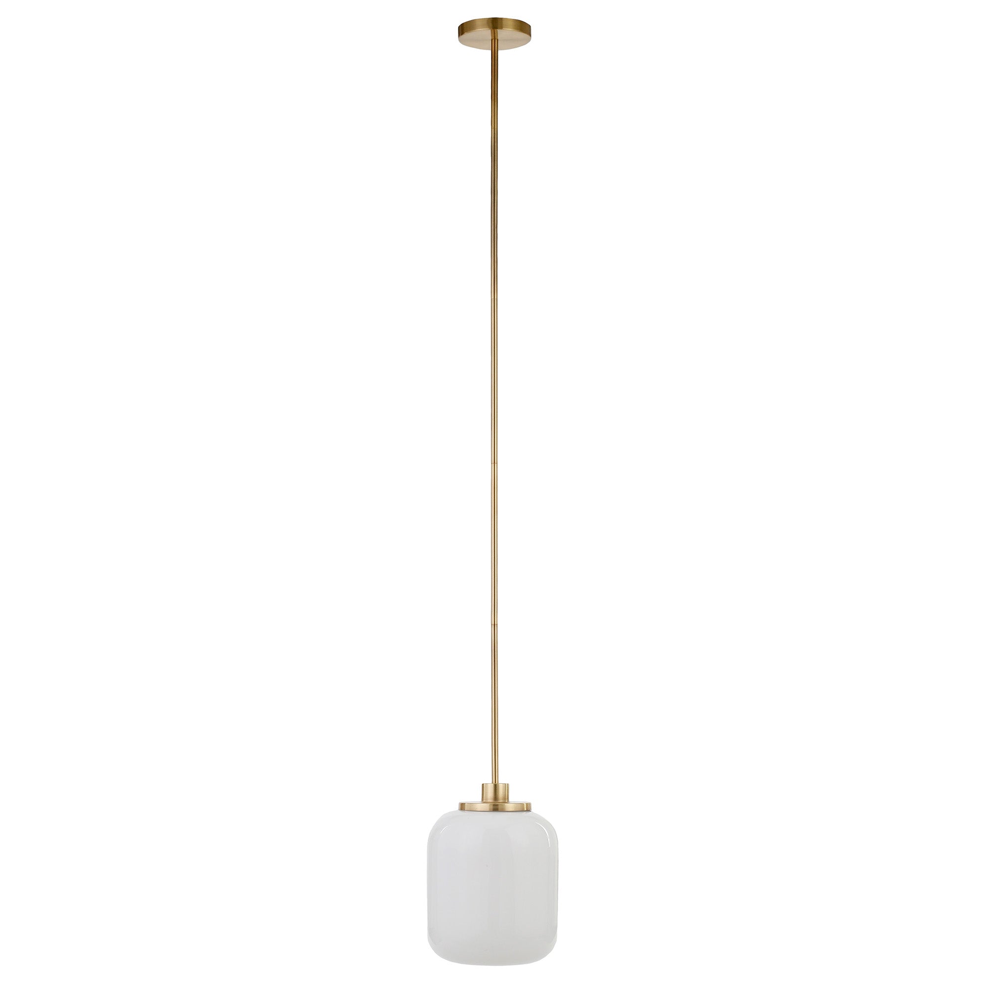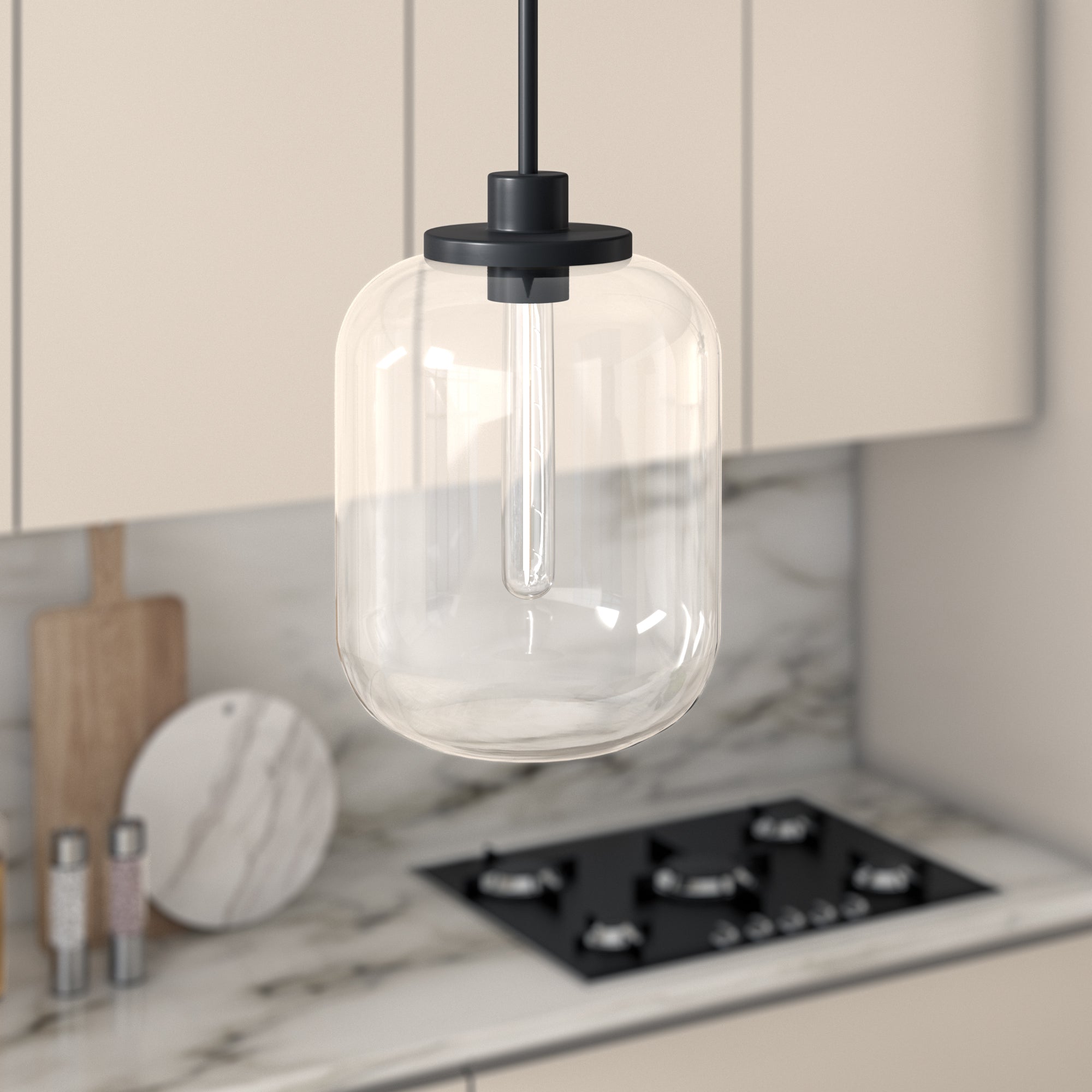 Minimalist modern design meets industrial chic with this simple, yet dynamic pendant. The clear glass shade and warm neutral finishes blend easily into any color palette. Style it with an Edison bulb for serious modern farmhouse vibes.
