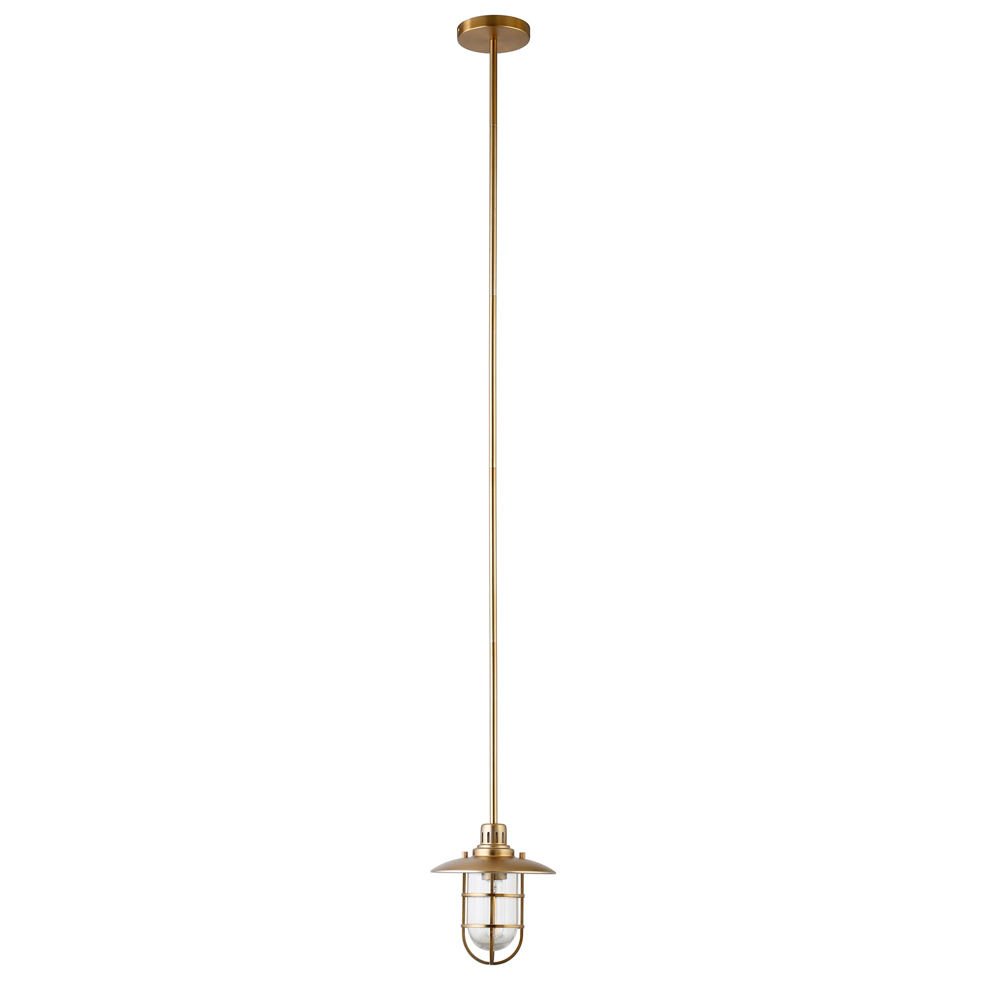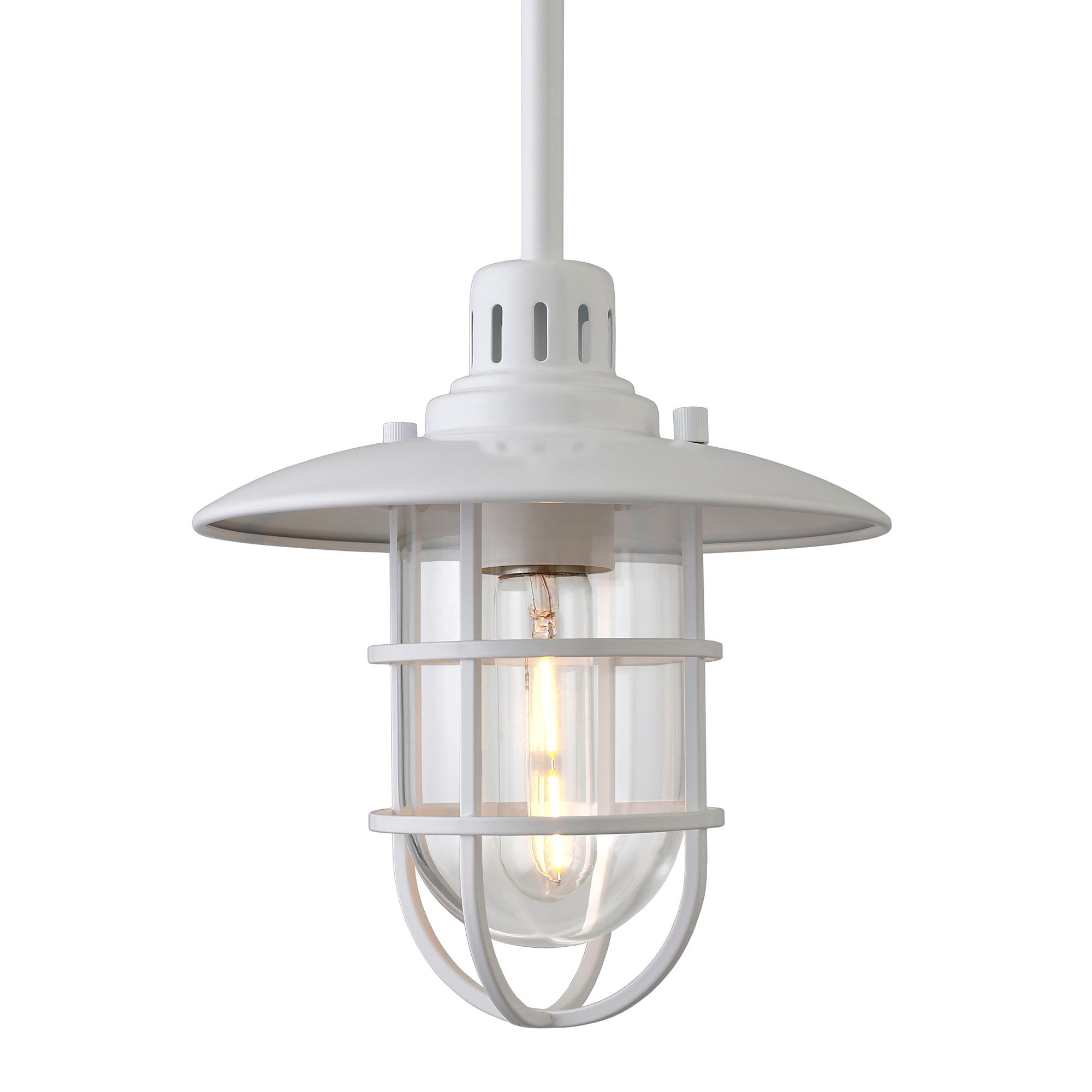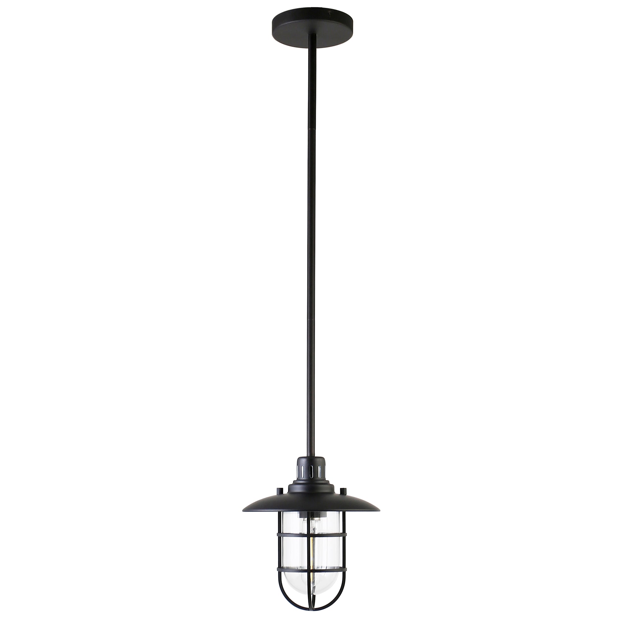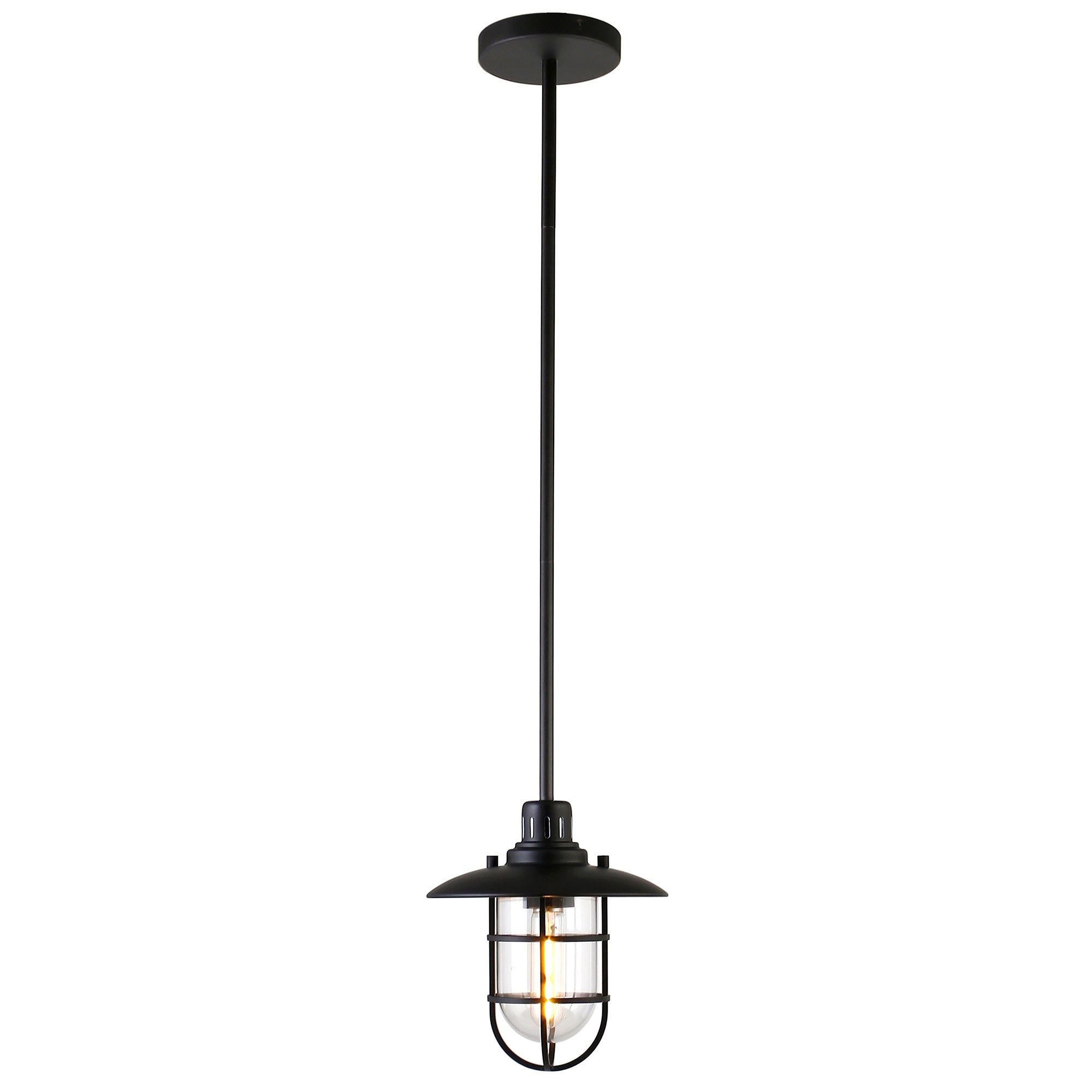 Brighten your kitchen, dining room, or foyer with this nautical-inspired pendant light. The globed glass shade is surrounded by a lantern-style frame, providing both direct and diffused light while allowing the statement light bulb of your choice to shine through. The handcrafted finish continues above the fixture onto the adjustable down rod, creating visual interest throughout the height of your space. This pendant is perfect for your coastal, cottage, or modern farmhouse décor.