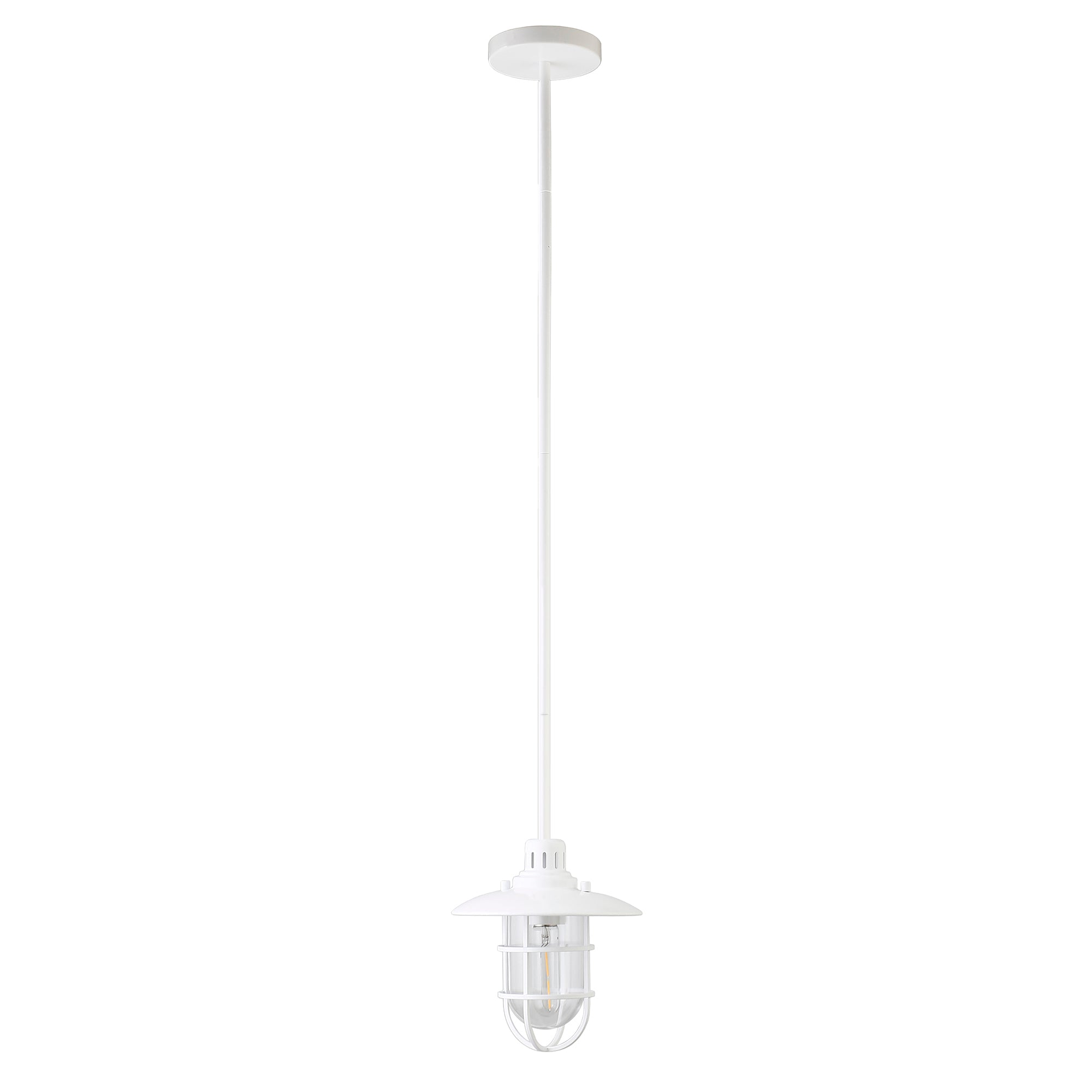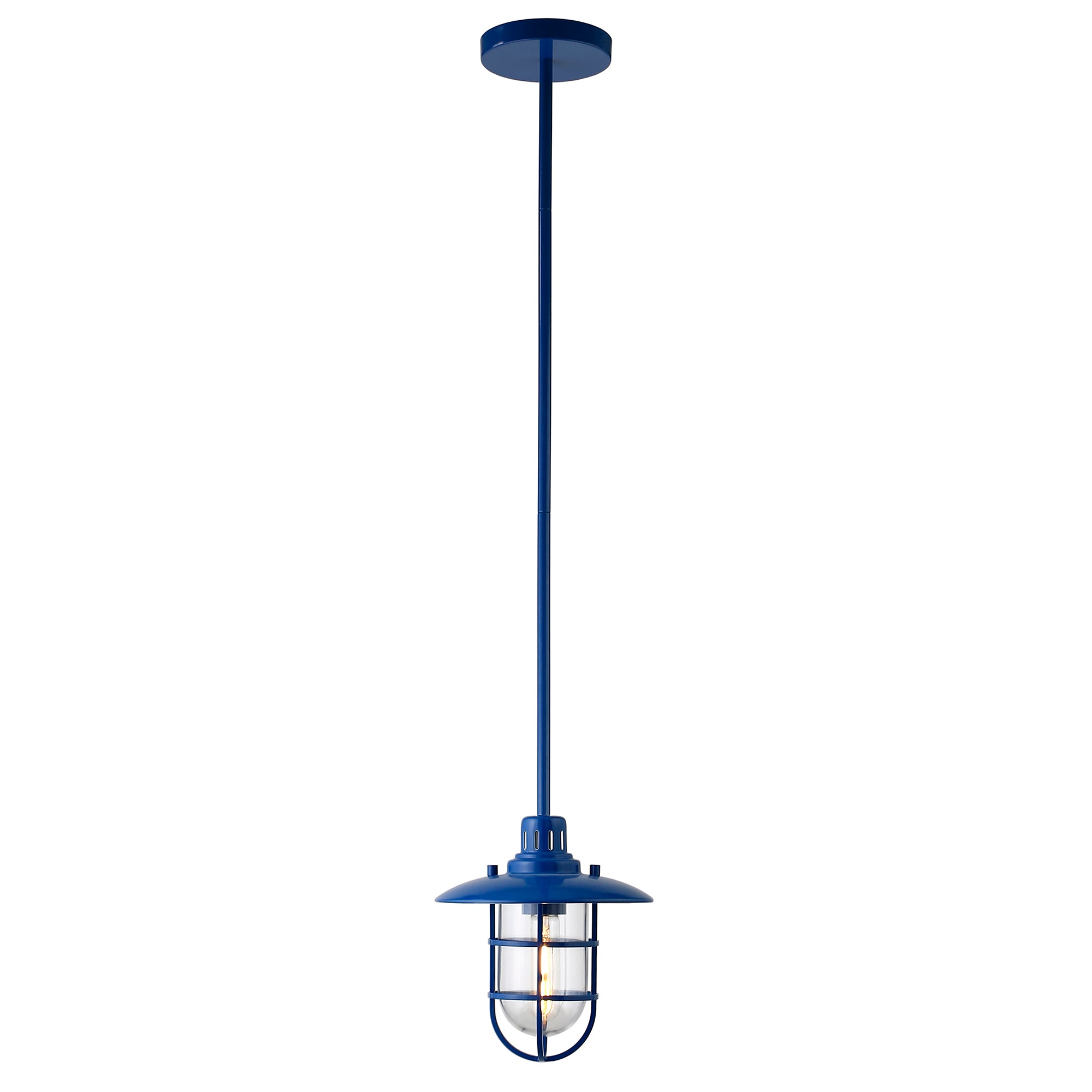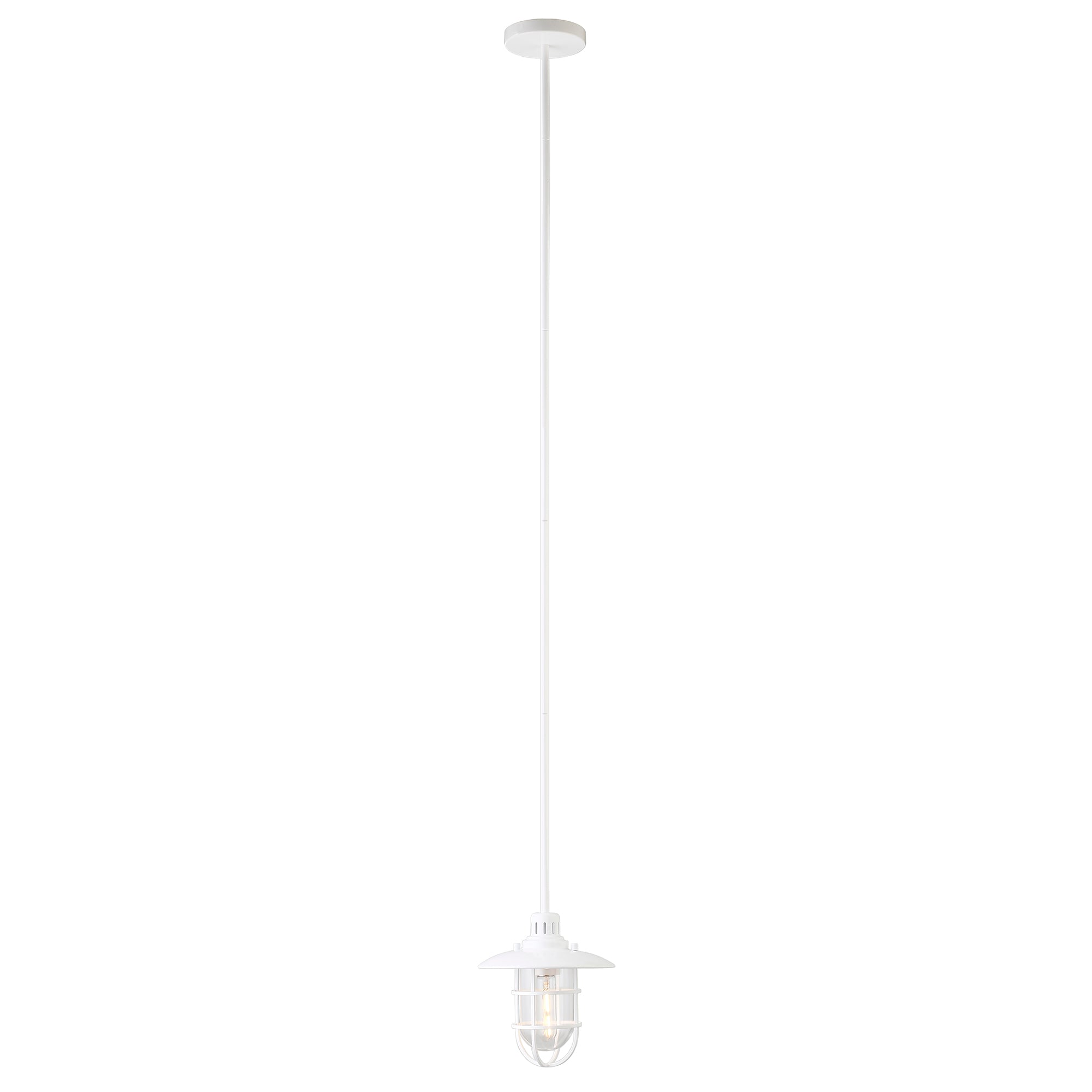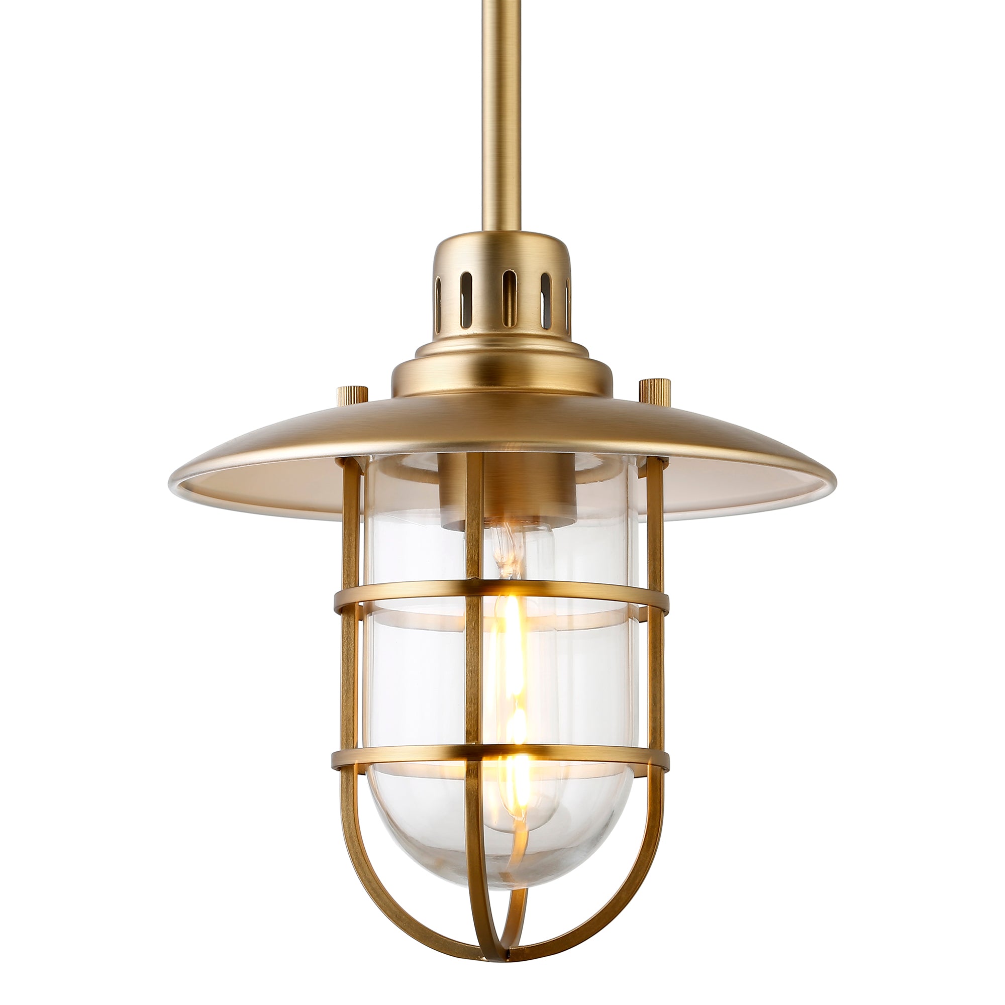 Brighten your kitchen, dining room, or foyer with this nautical-inspired pendant light. The globed glass shade is surrounded by a lantern-style frame, providing both direct and diffused light while allowing the statement light bulb of your choice to shine through. The handcrafted finish continues above the fixture onto the adjustable down rod, creating visual interest throughout the height of your space. This pendant is perfect for your coastal, cottage, or modern farmhouse décor.