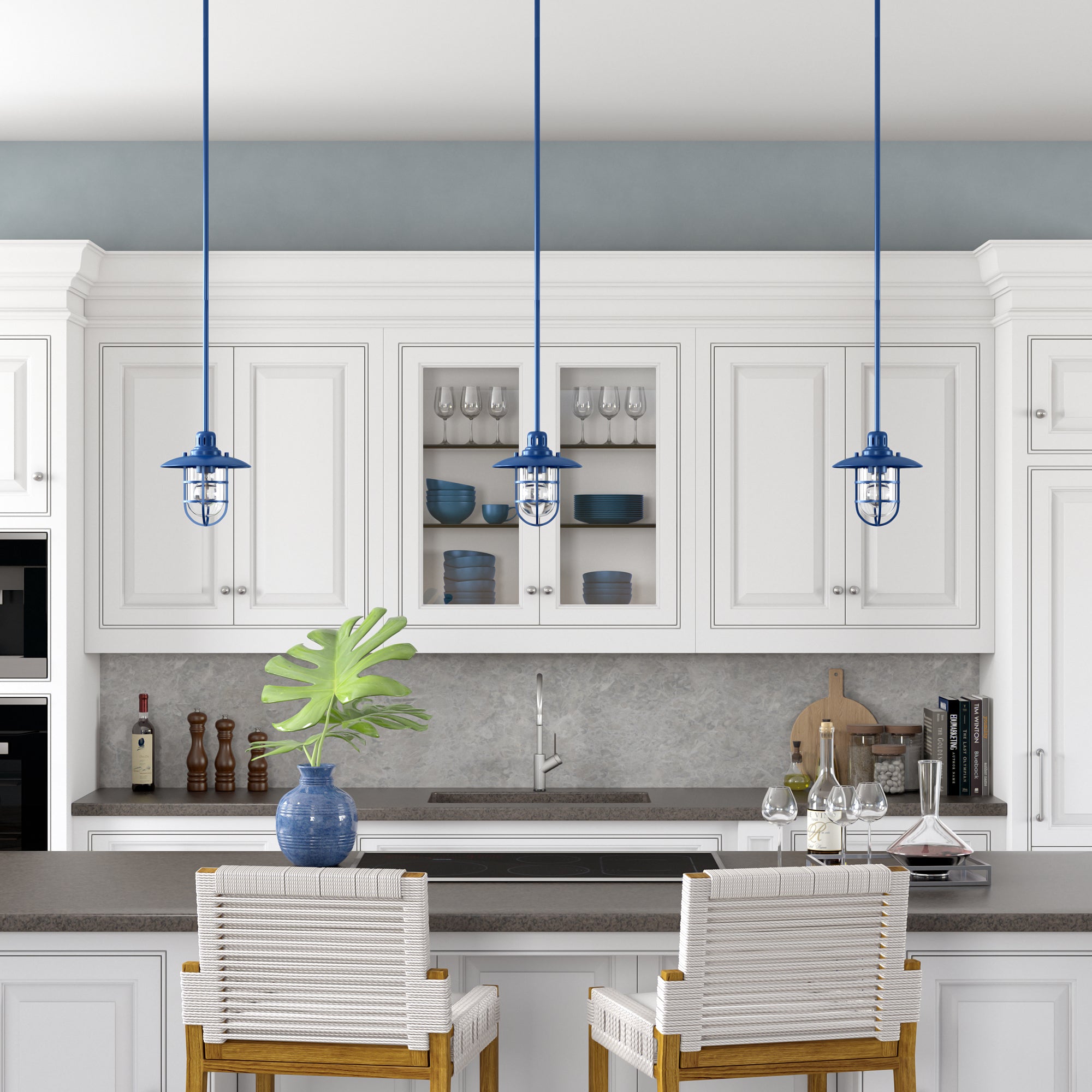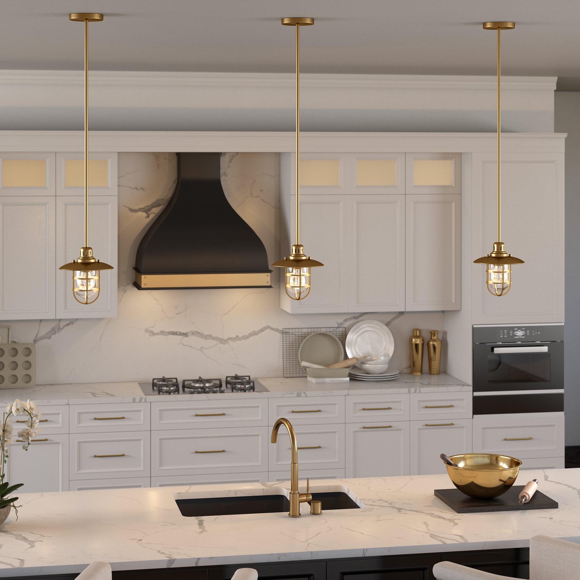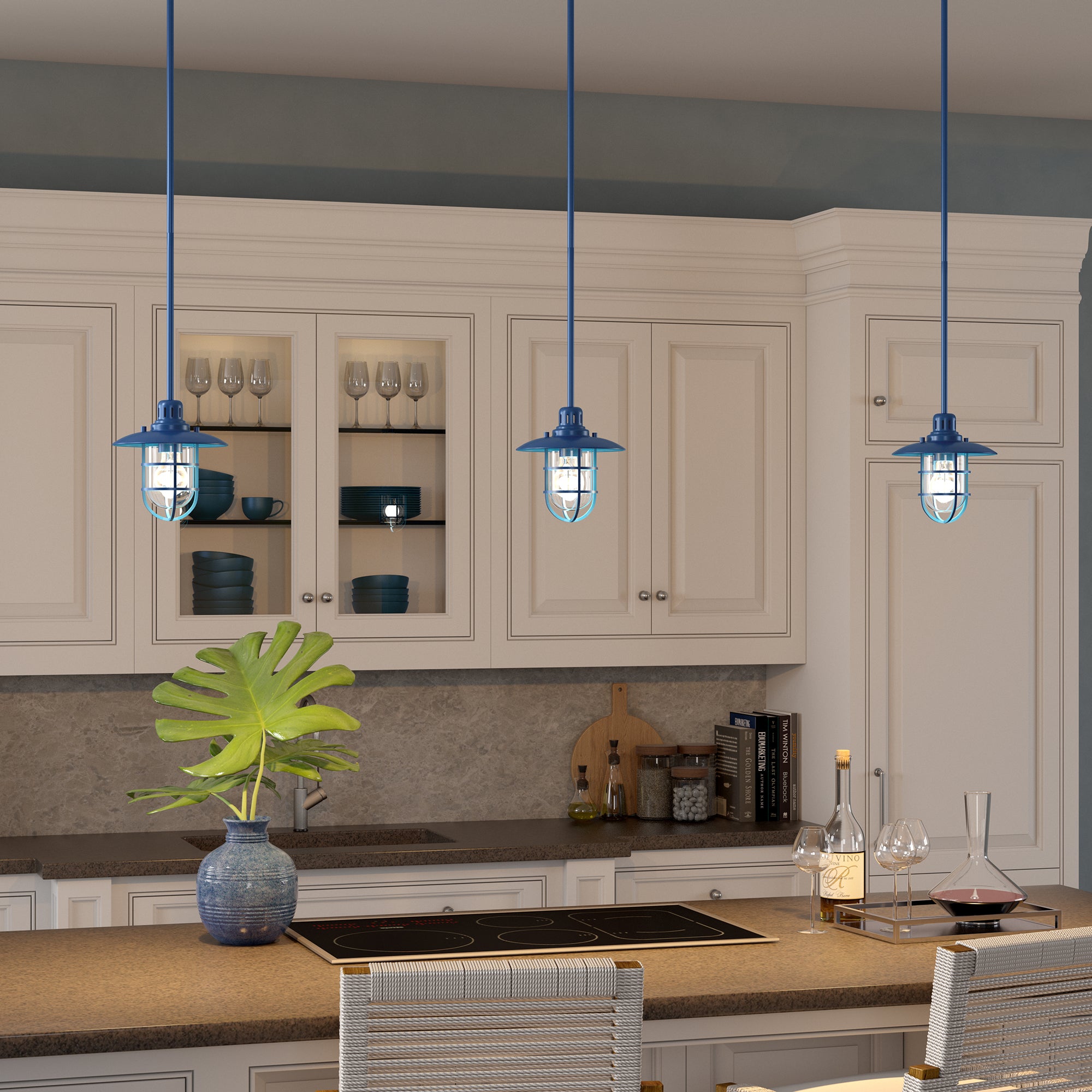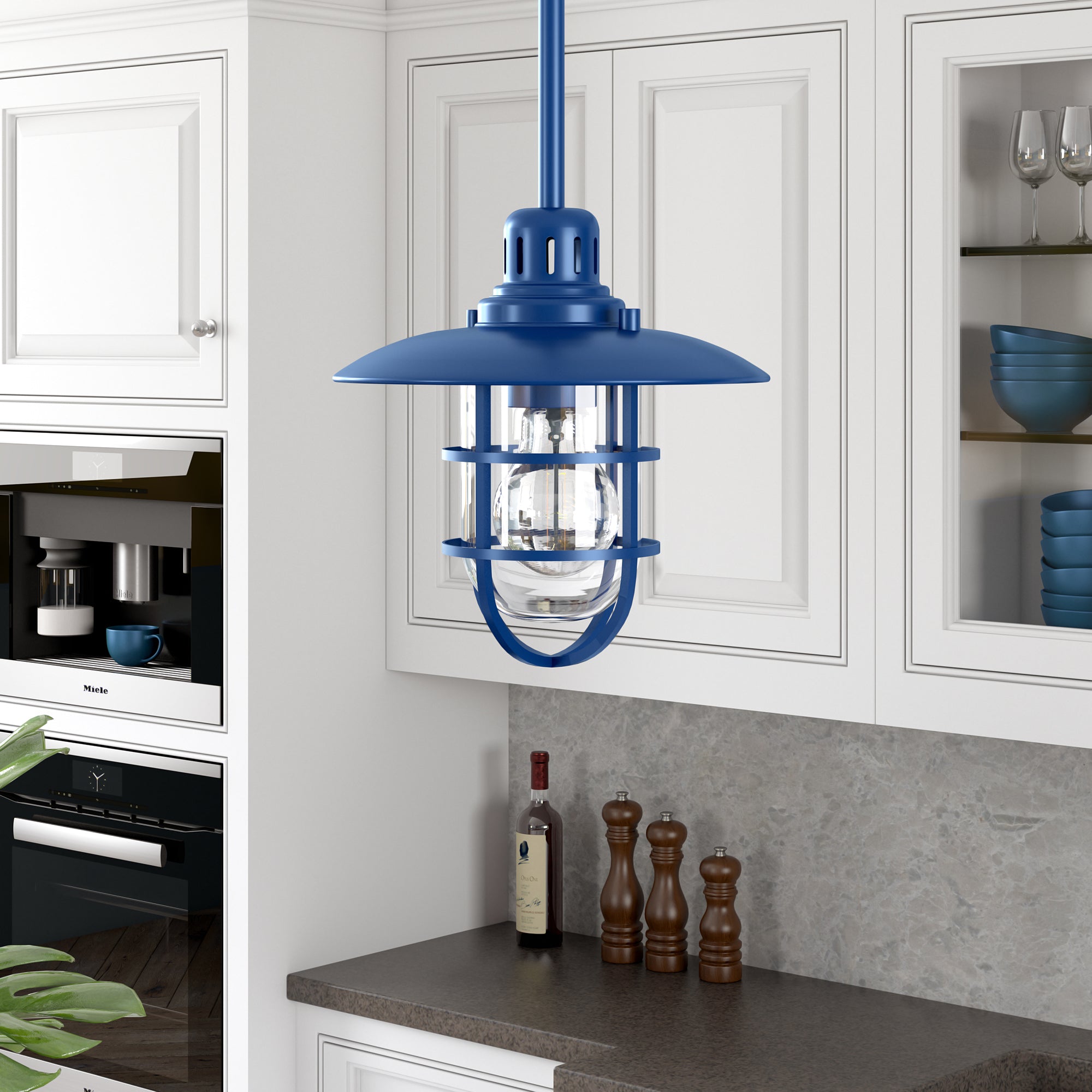 Brighten your kitchen, dining room, or foyer with this nautical-inspired pendant light. The globed glass shade is surrounded by a lantern-style frame, providing both direct and diffused light while allowing the statement light bulb of your choice to shine through. The handcrafted finish continues above the fixture onto the adjustable down rod, creating visual interest throughout the height of your space. This pendant is perfect for your coastal, cottage, or modern farmhouse décor.