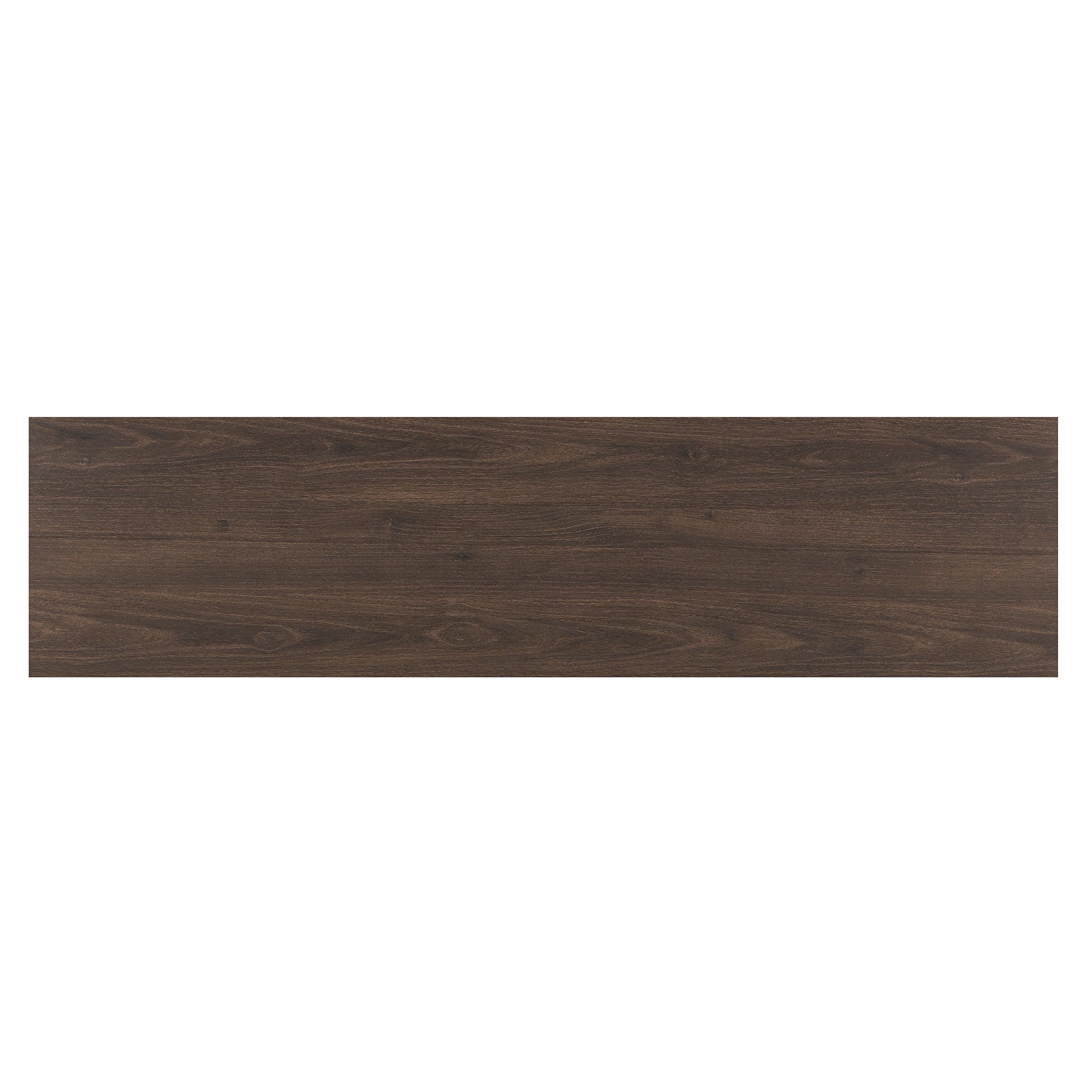 - Constructed of sturdy MDF materials in a handcrafted Alder Brown finish.