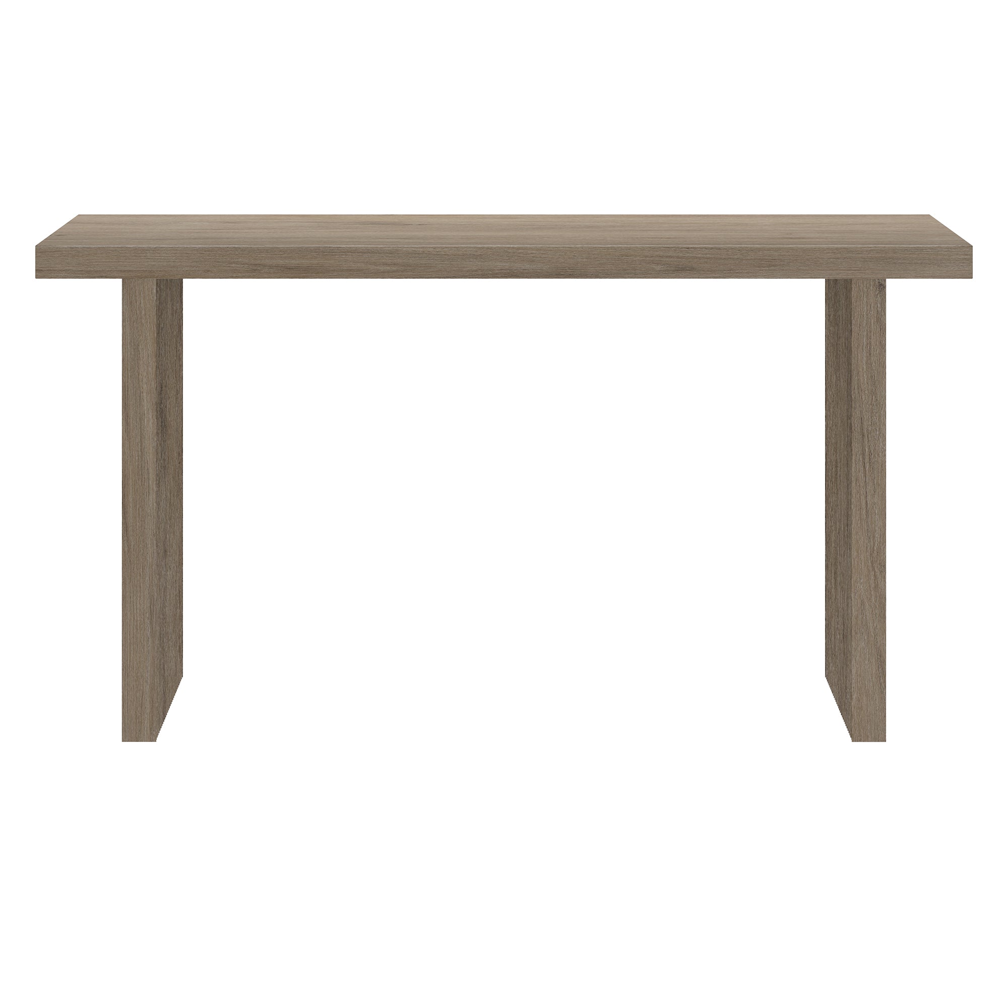 Impressively straightforward in its design, this modern console table emphasizes clean lines and unadorned structure. The table's simple style is given extra dimension with the fluted detailing on the base. The natural wood-look finish adds texture and tonal variation to your space, while the open sled base allow for plenty of storage options. With an assembly time under 30 minutes, this is the perfect piece to effortlessly update your living room, family room, or office.
