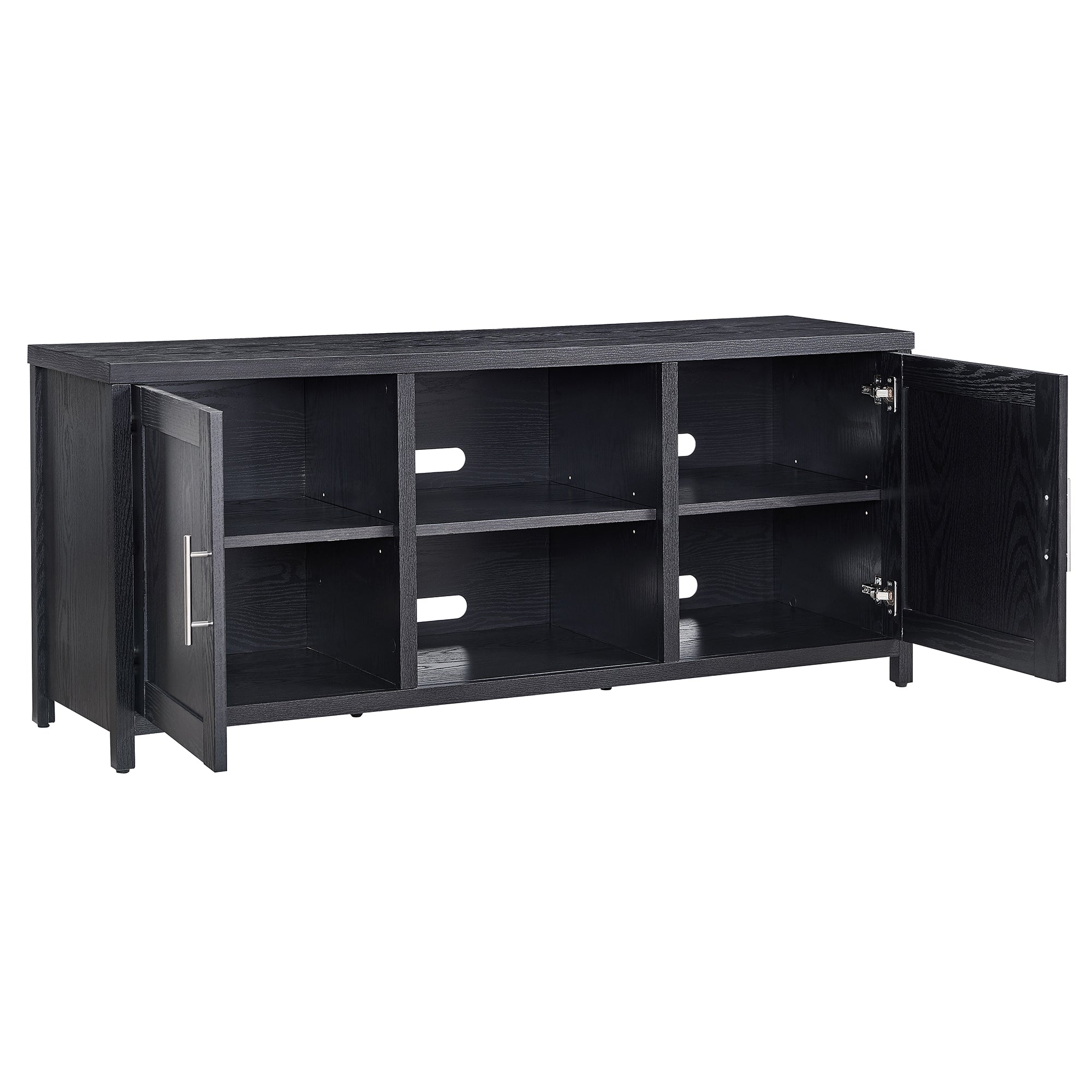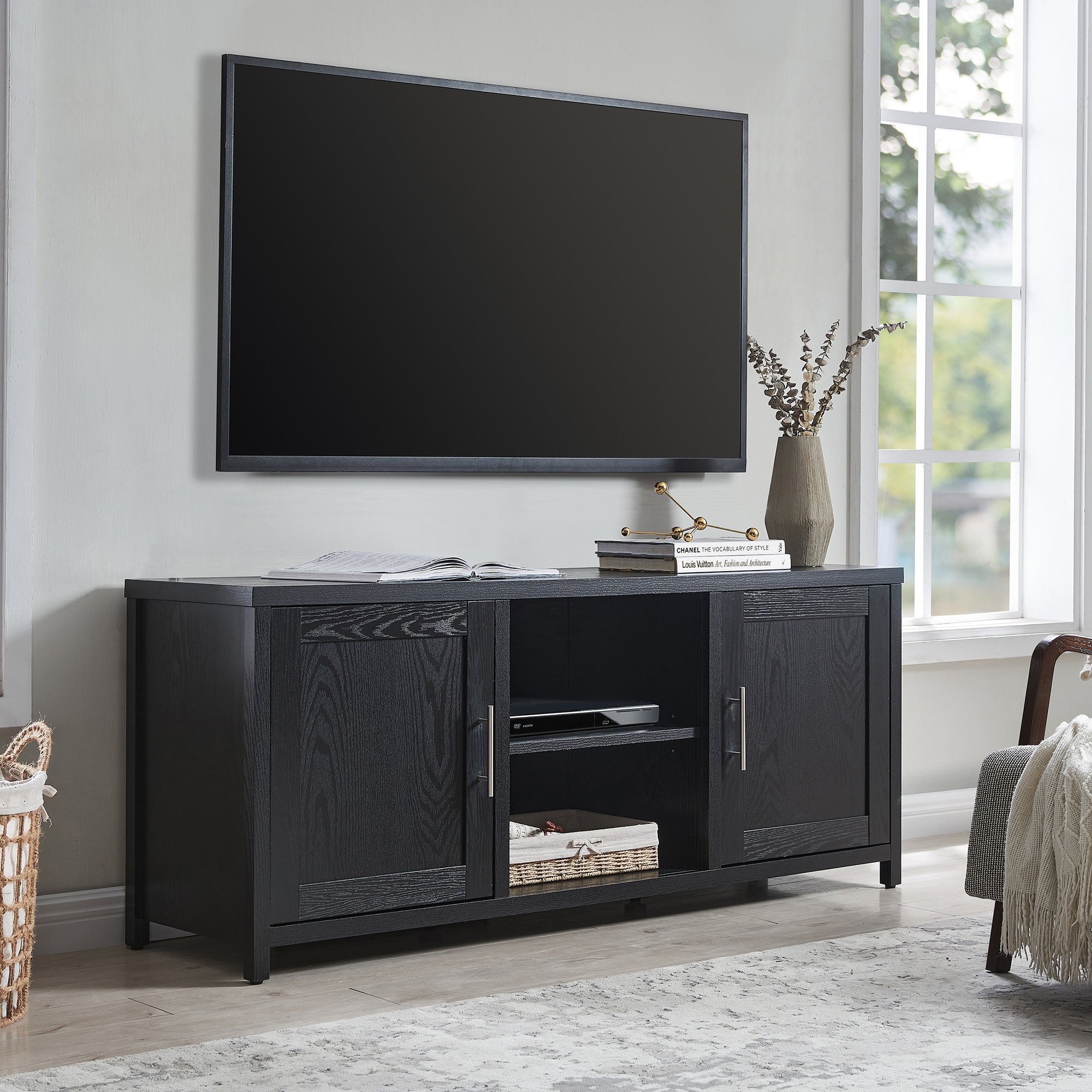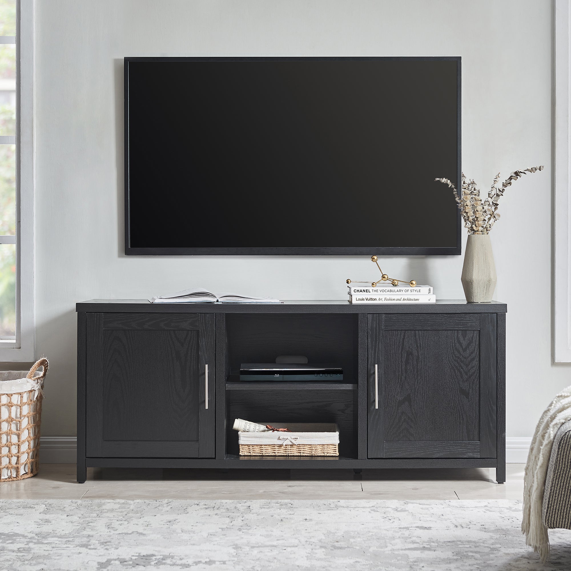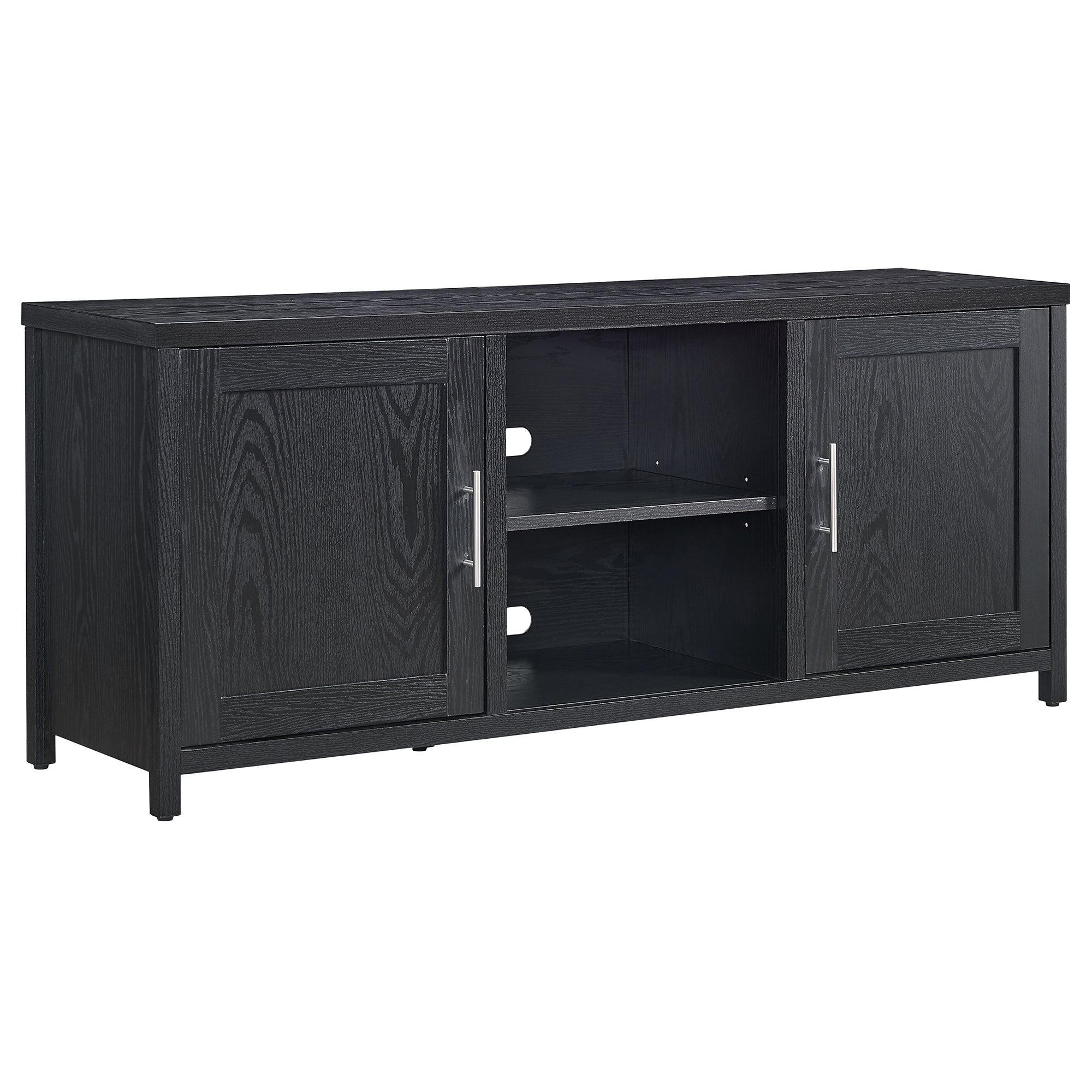 Combine functionality and transitional design with this sturdy TV stand. Its rich wood tone creates a warm neutral palette that will blend seamlessly into any color scheme, while its side cabinets allow for plenty of hidden storage. A must-have for living areas and entertainment spaces, this TV stand sets the stage for the big game, a movie marathon, or that season finale everyone’s been talking about.