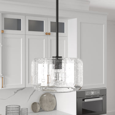 Minimalist modern design meets retro chic with this simple, yet dynamic pendant. The seeded glass shade and metallic accents blend easily into any color palette. Style it with an Edison bulb for serious modern farmhouse vibes. The height-adjustable cord allows this fixture to fit perfectly in your space.