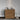 - Handcrafted blackened bronze and brass finishes are applied to the round metal base.