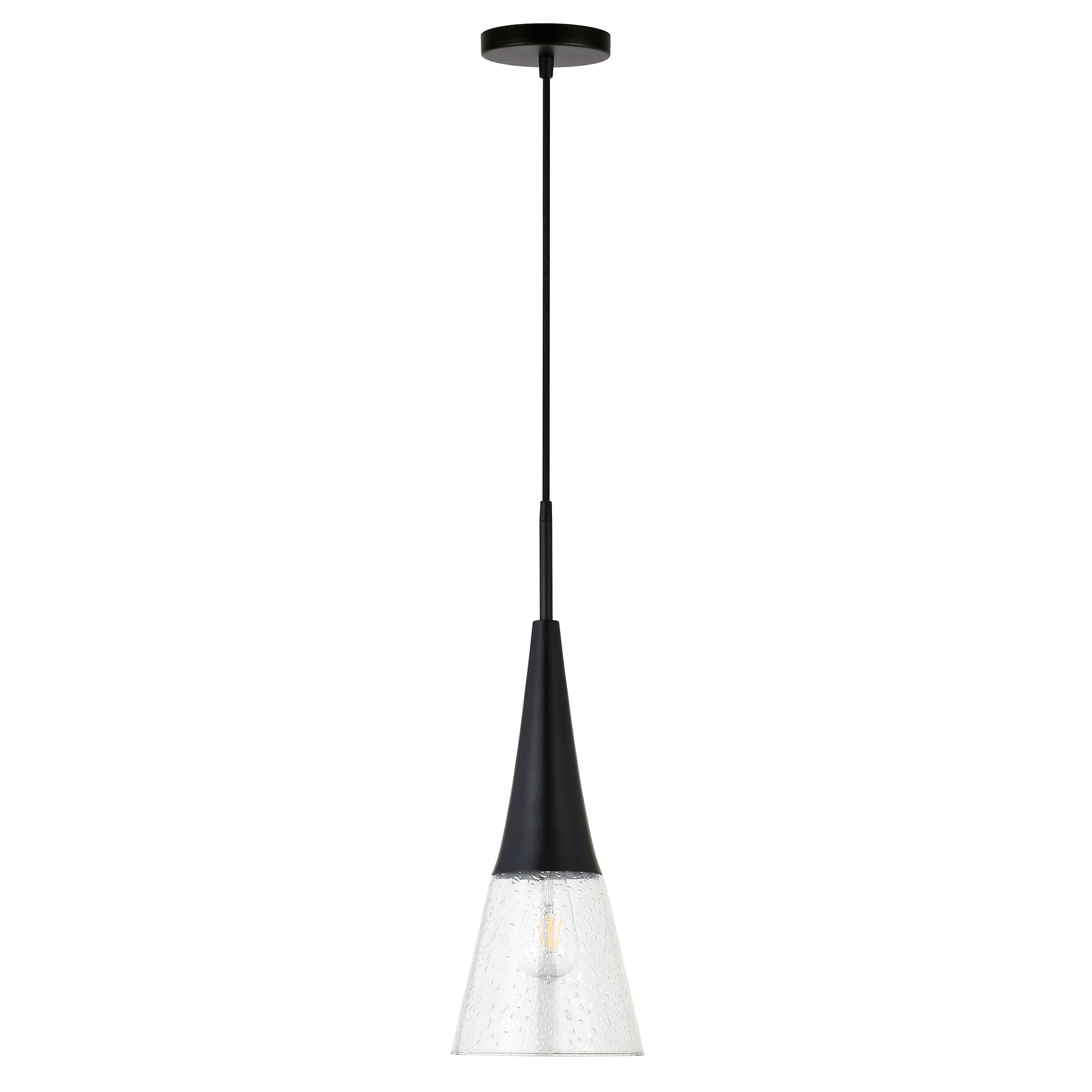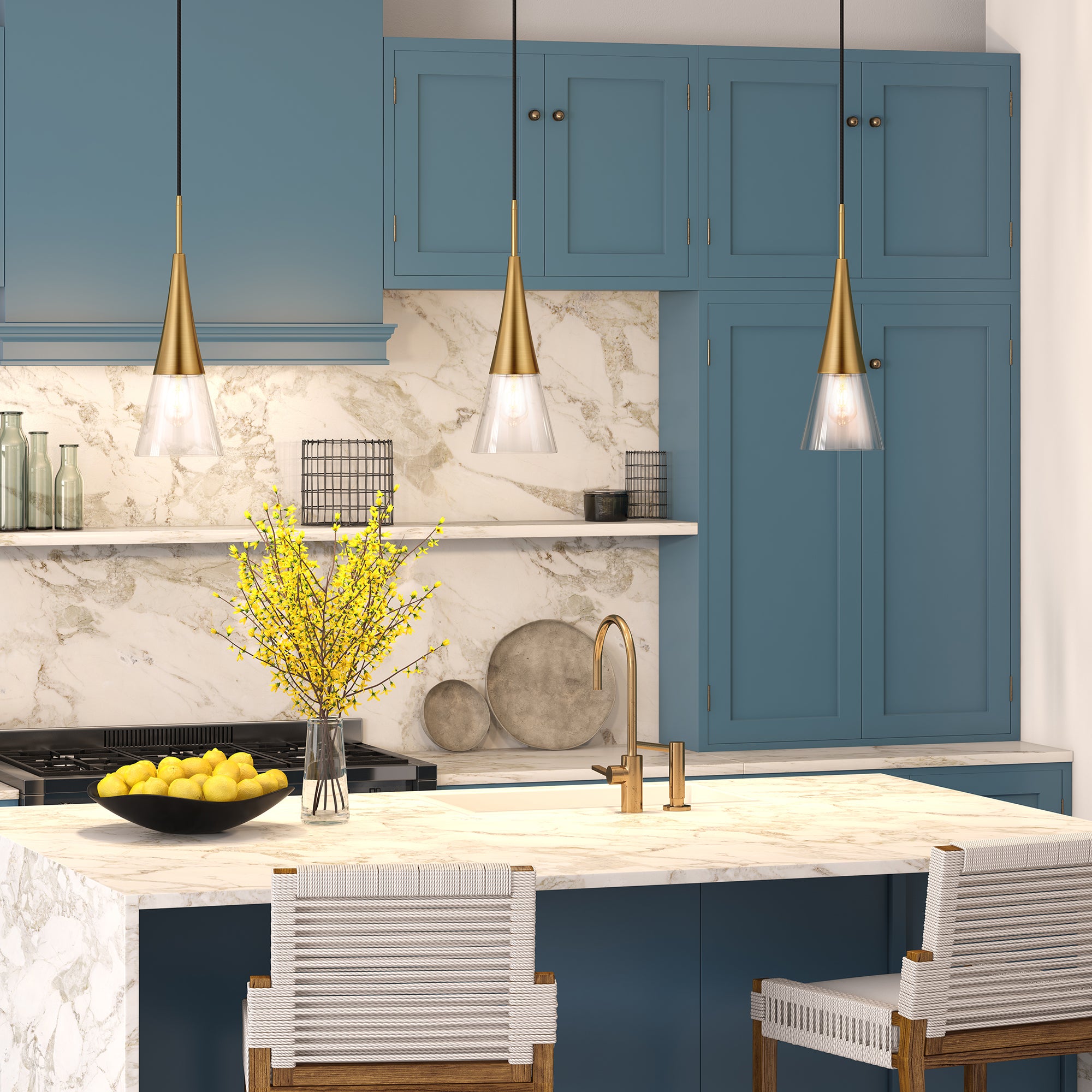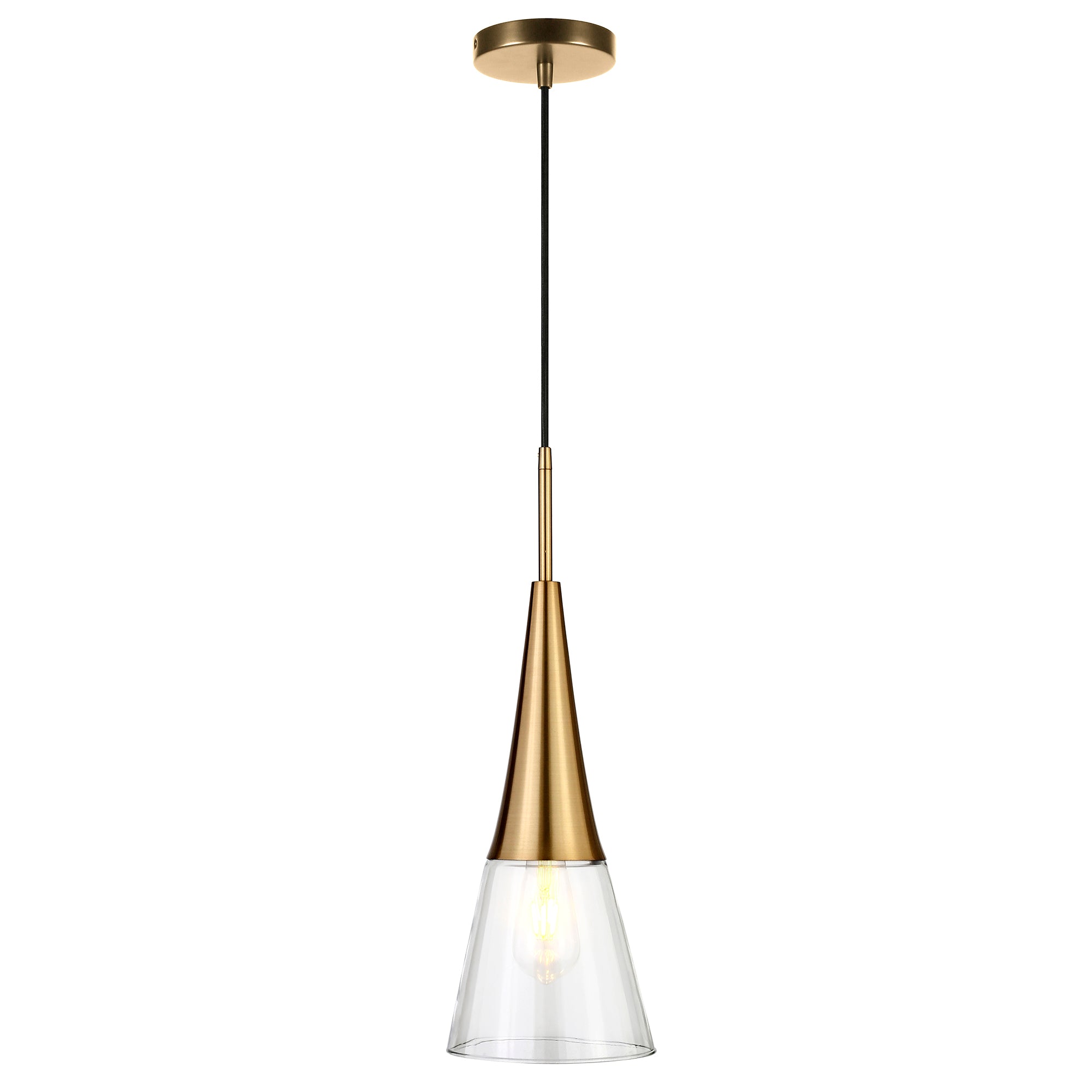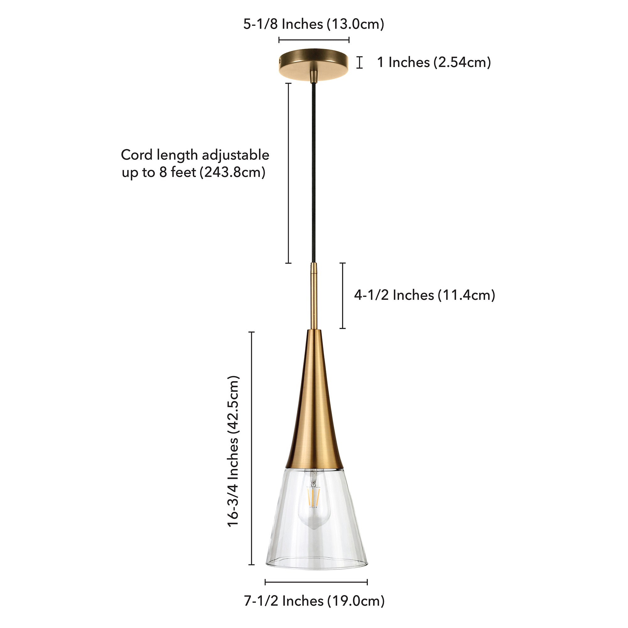 Brighten your kitchen, dining room, or foyer with this timeless pendant light that never goes out of style. The conical glass shade is topped with lustrous metal accents, providing both direct and diffused light while allowing the statement light bulb of your choice to shine through. The 8’ foot adjustable cord lets you customize this fixture to fit your space perfectly.