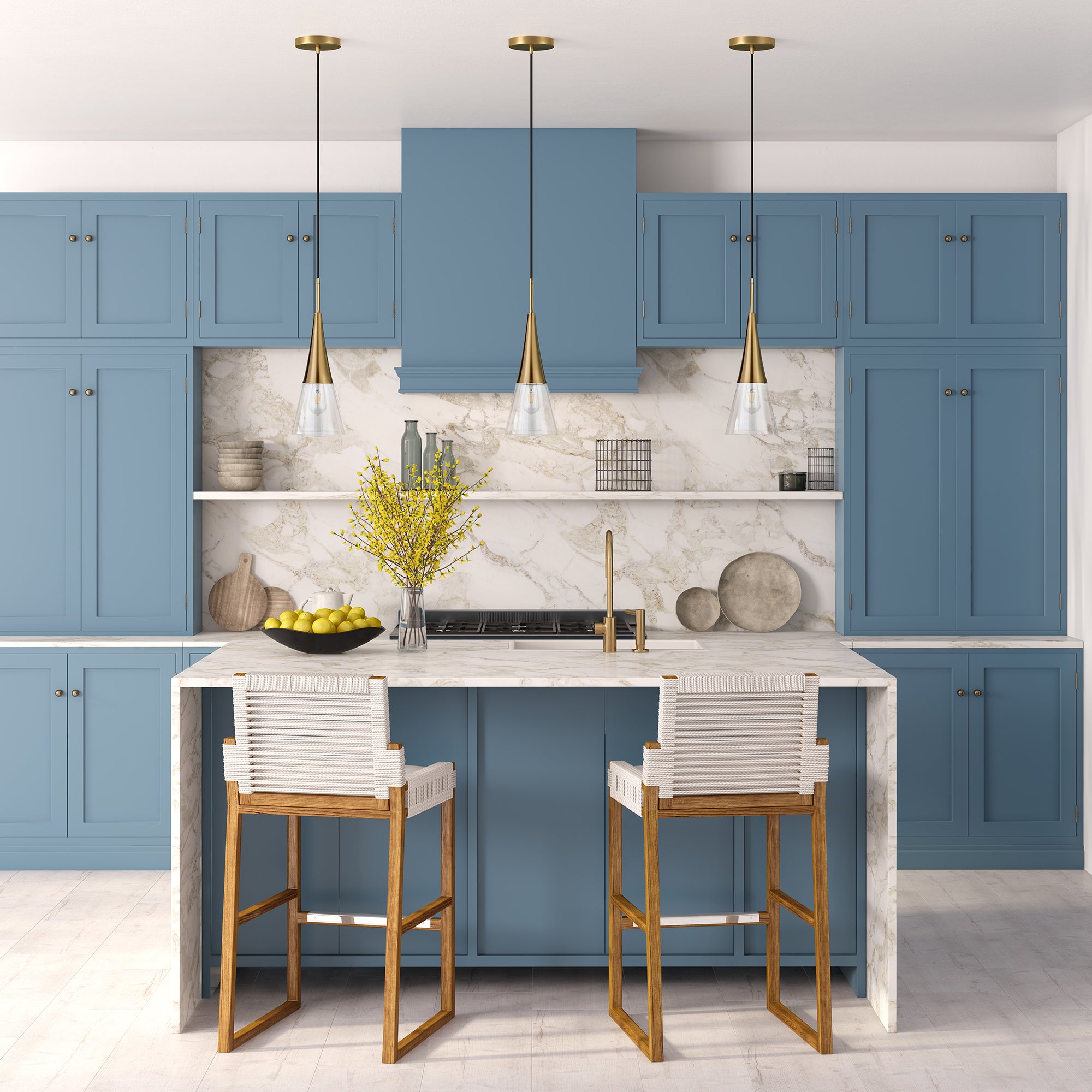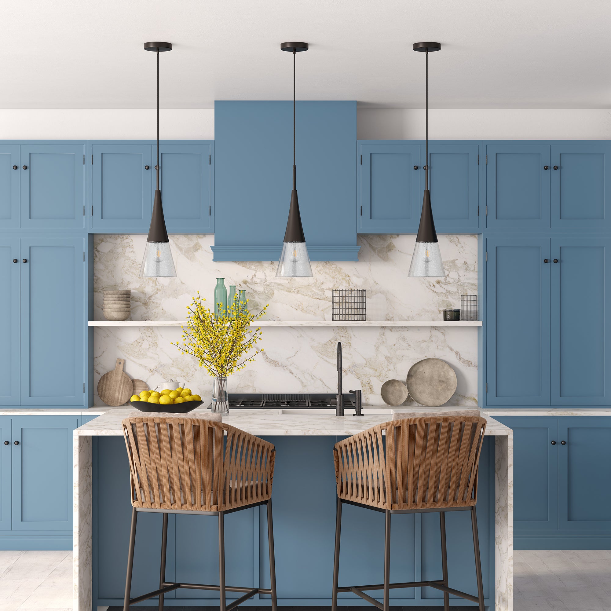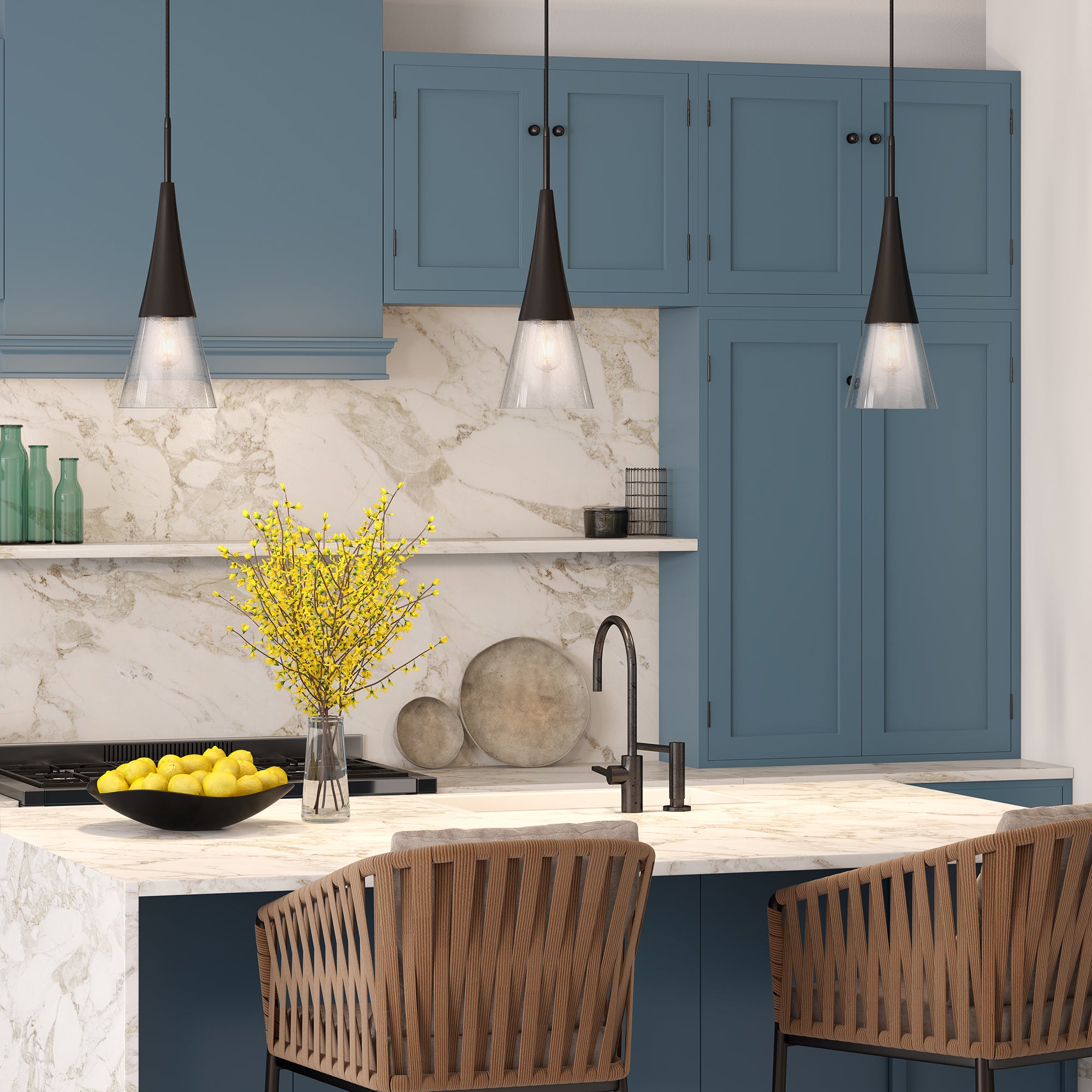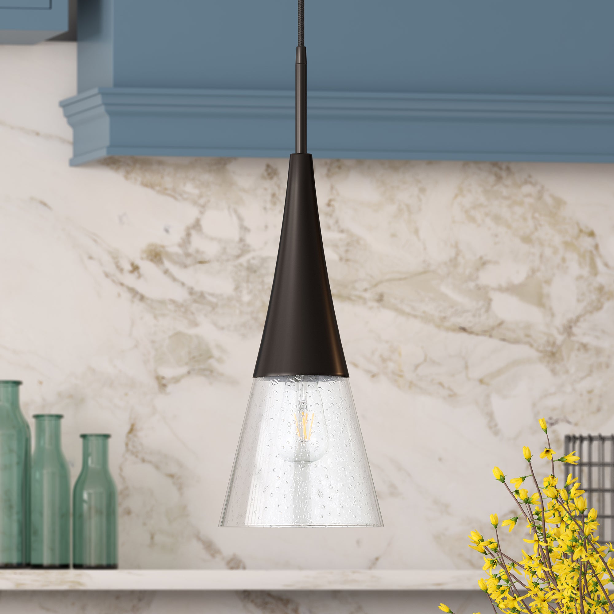 Brighten your kitchen, dining room, or foyer with this timeless pendant light that never goes out of style. The conical glass shade is topped with lustrous metal accents, providing both direct and diffused light while allowing the statement light bulb of your choice to shine through. The 8’ foot adjustable cord lets you customize this fixture to fit your space perfectly.