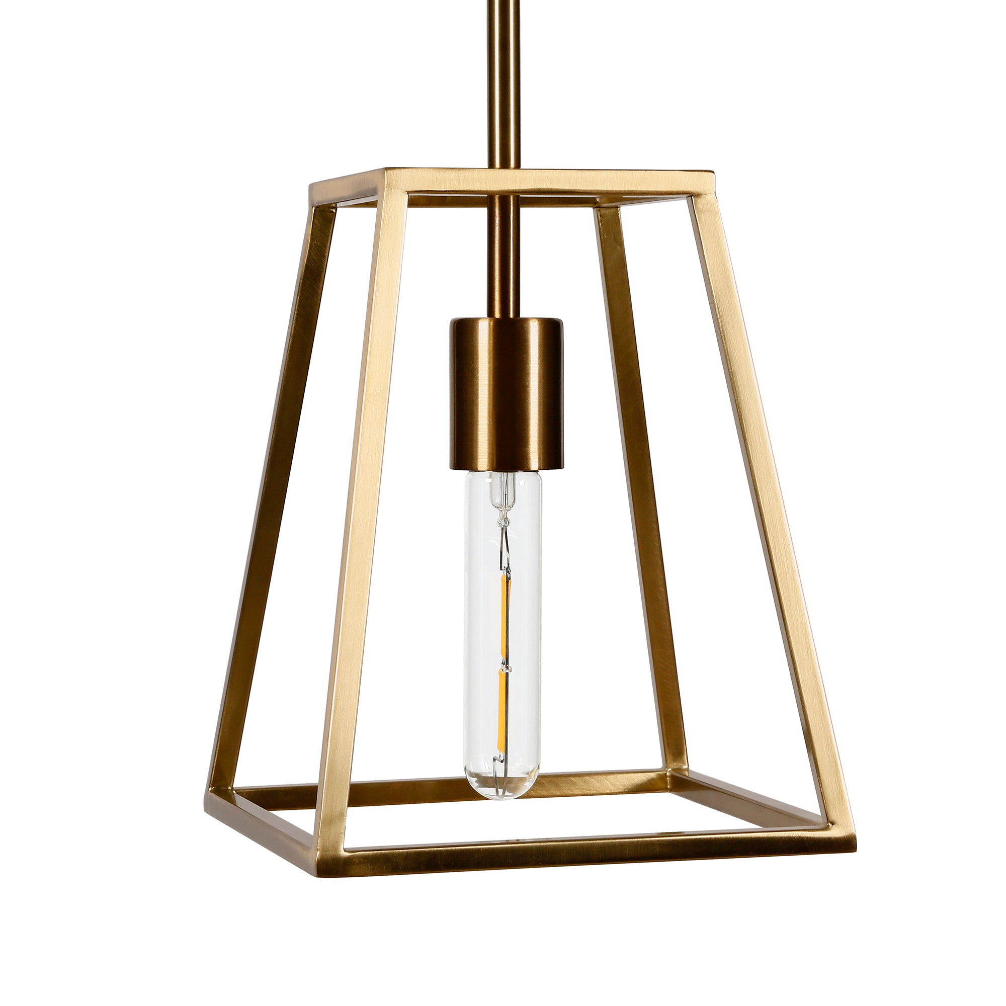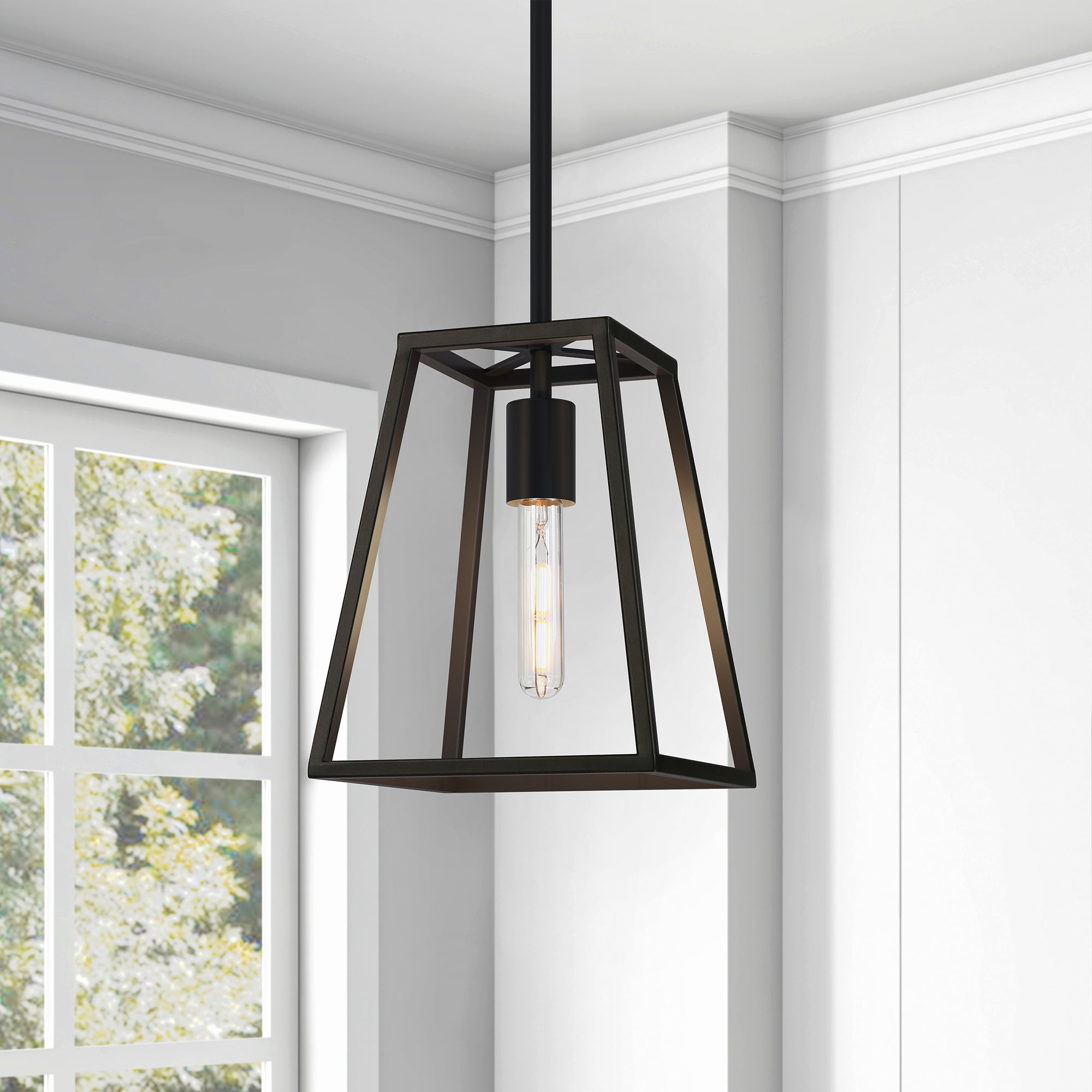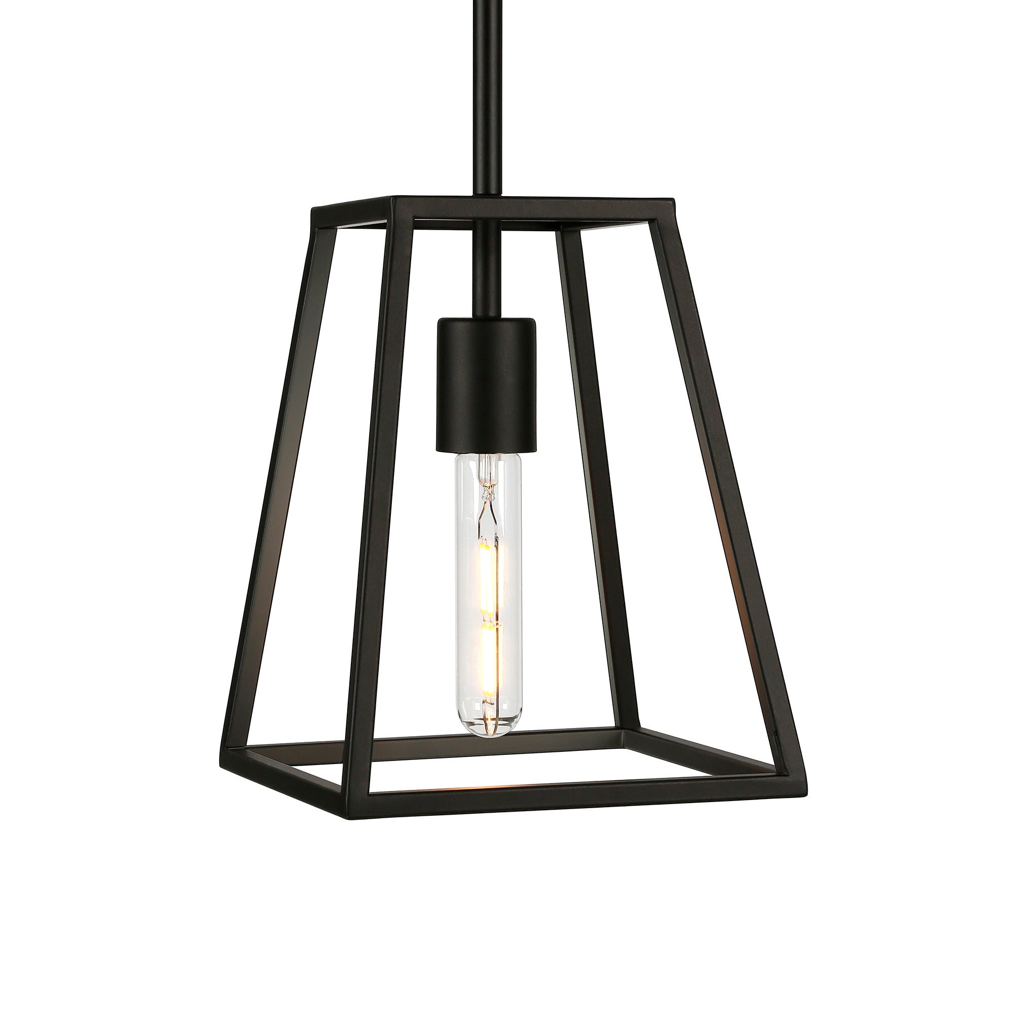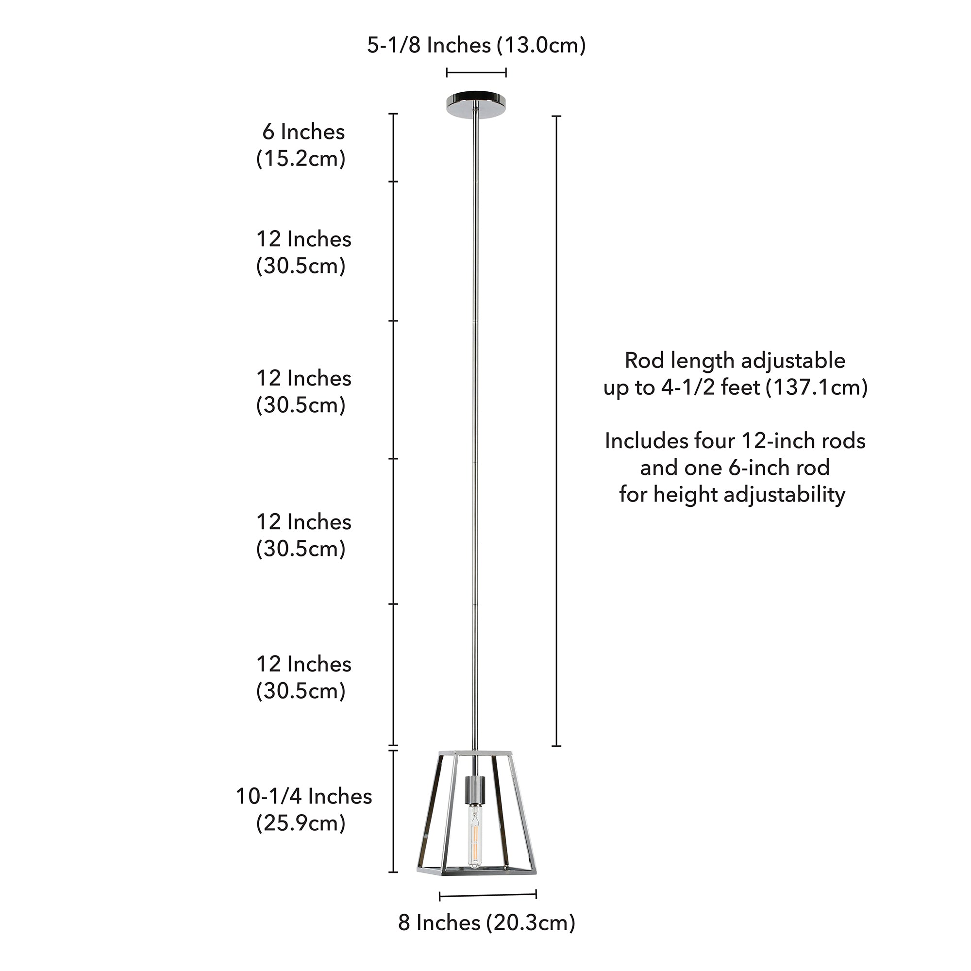 Bring an industrial, modern feel to your living space with this geometric, open-framed pendant. Featuring a clean-cut, rhombus shaped frame allowing an exposed view to the bulb (not included). The hardware is finished in cool silver nickel and includes an 8 ft polyester cord.