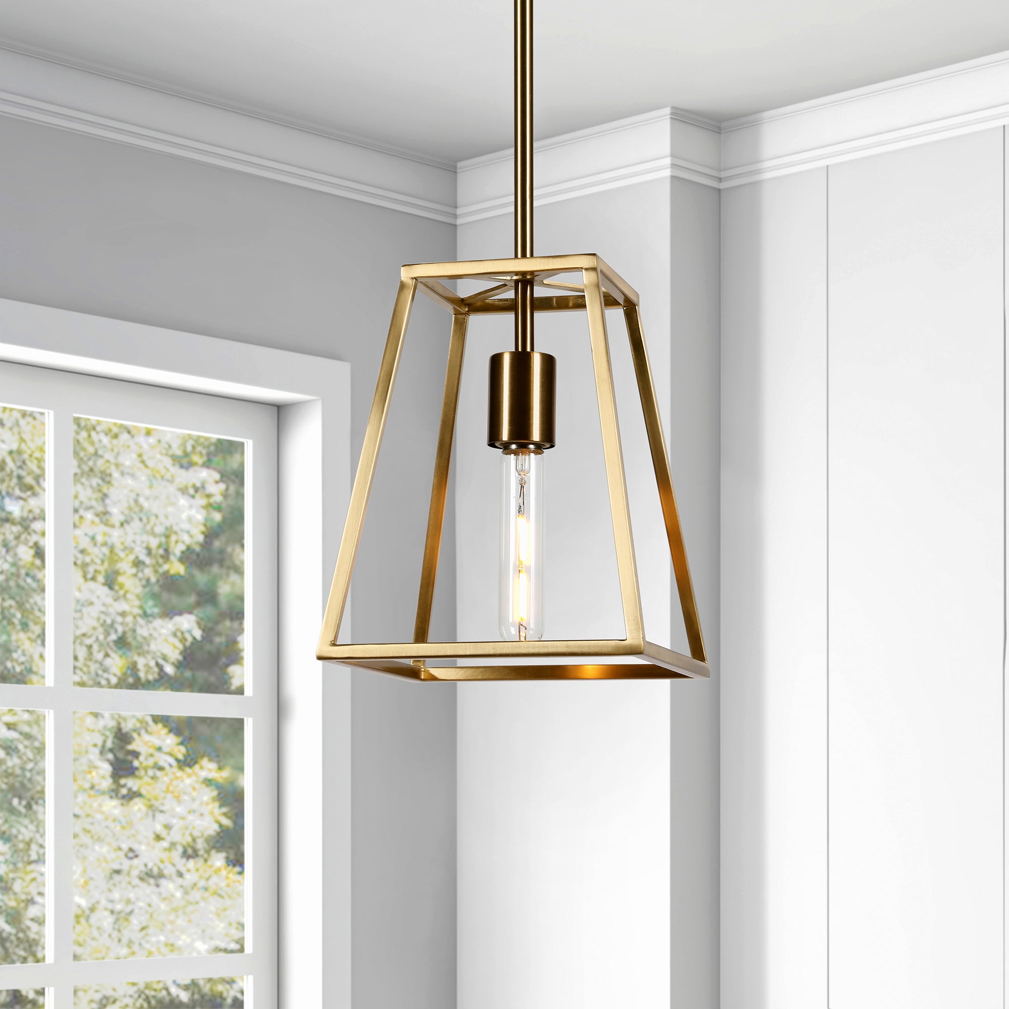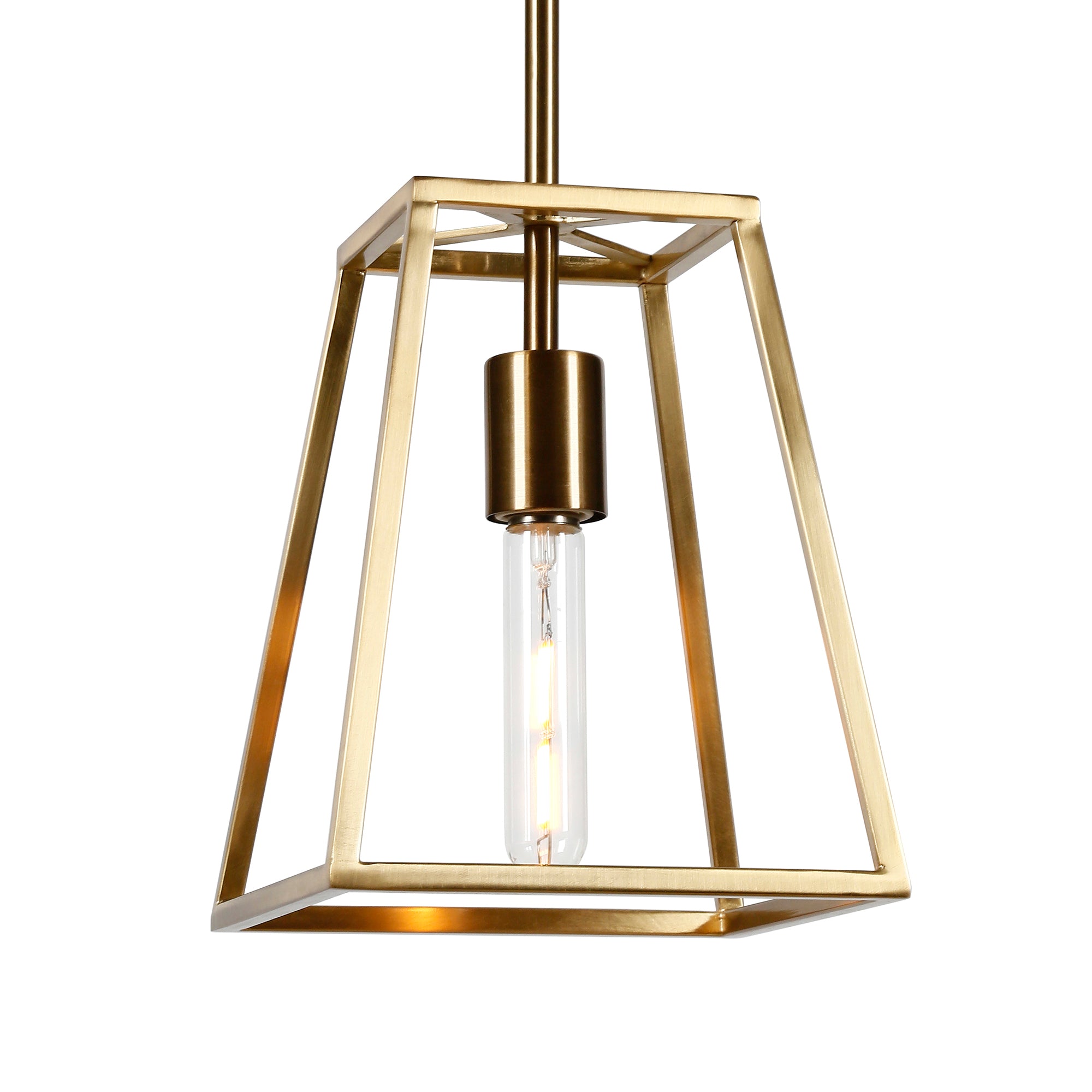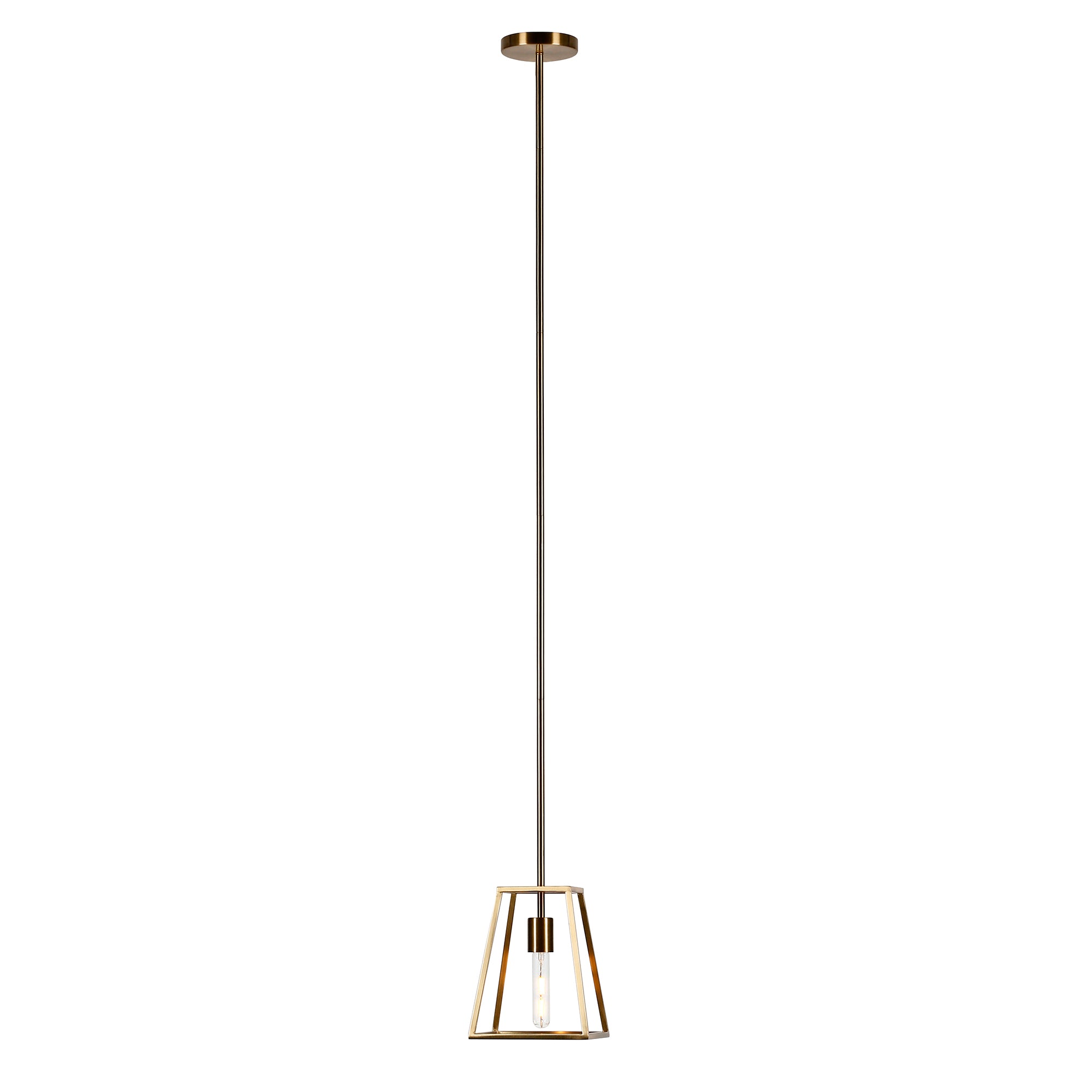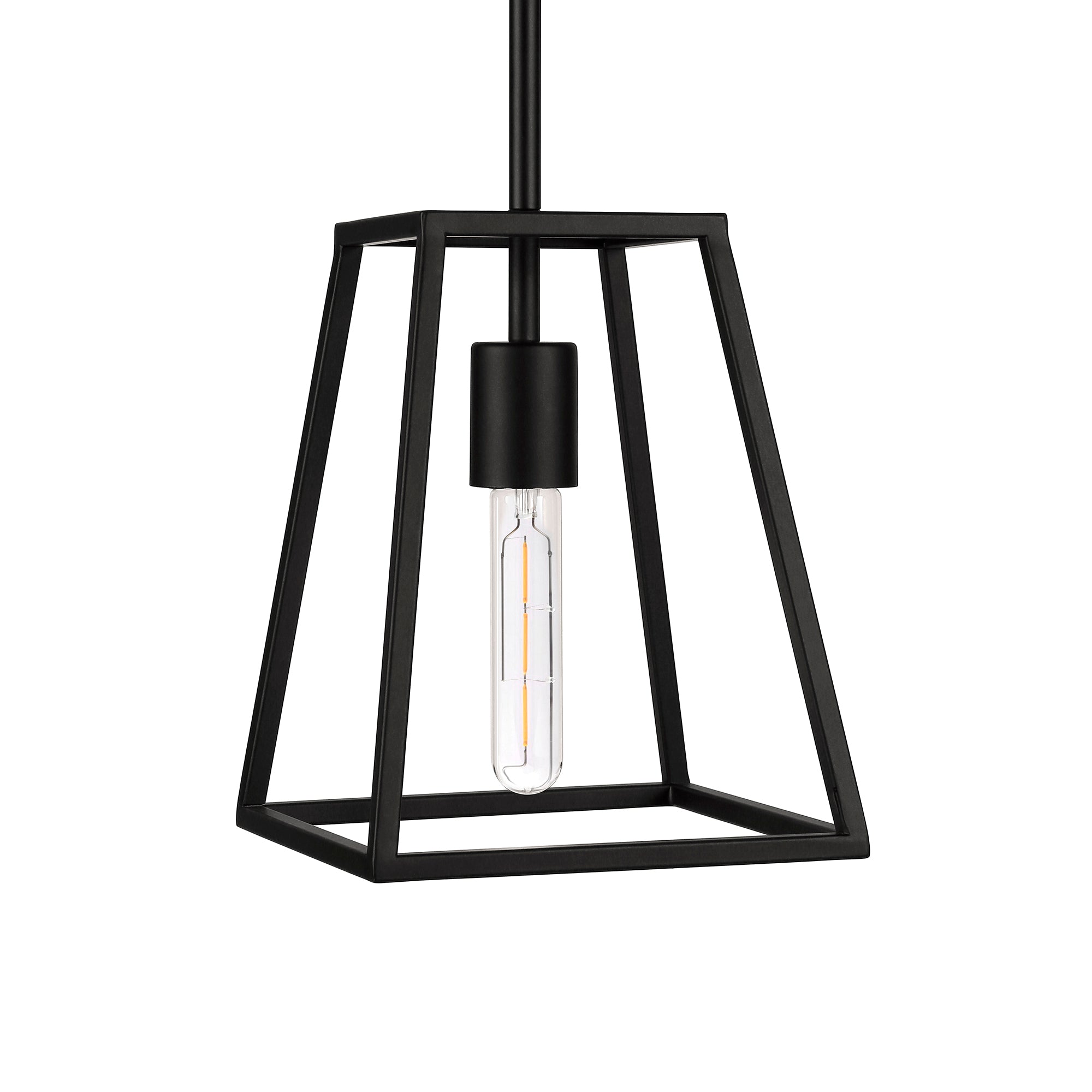Bring an industrial, modern feel to your living space with this geometric, open-framed pendant. Featuring a clean-cut, rhombus shaped frame allowing an exposed view to the bulb (not included). The hardware is finished in cool silver nickel and includes an 8 ft polyester cord.