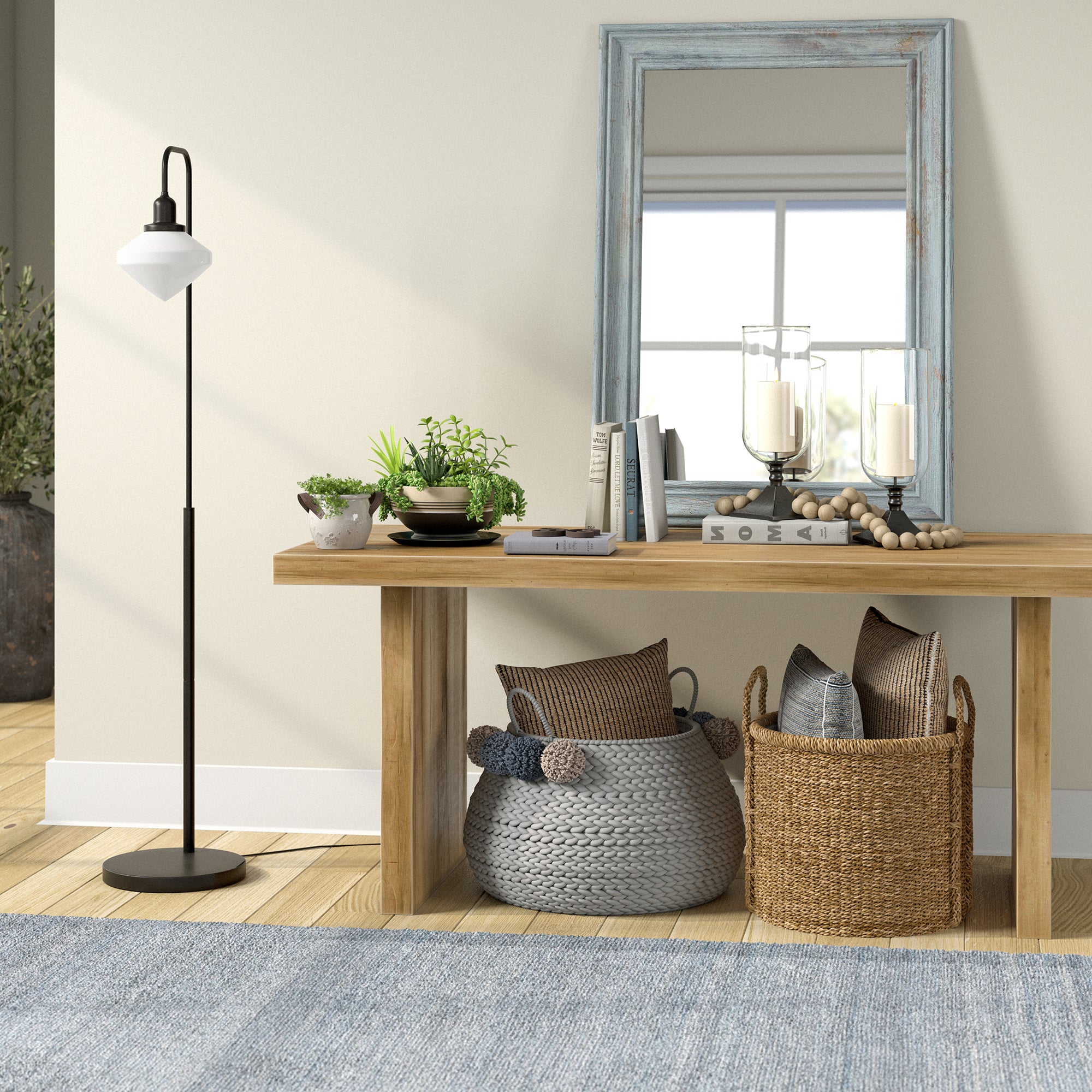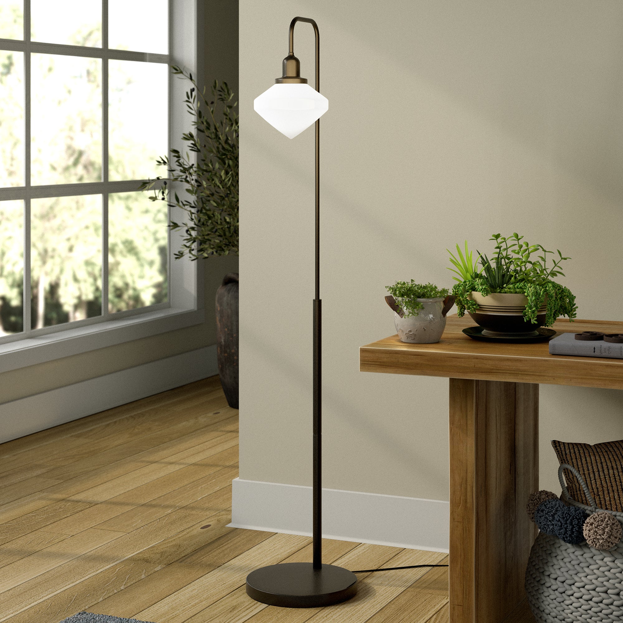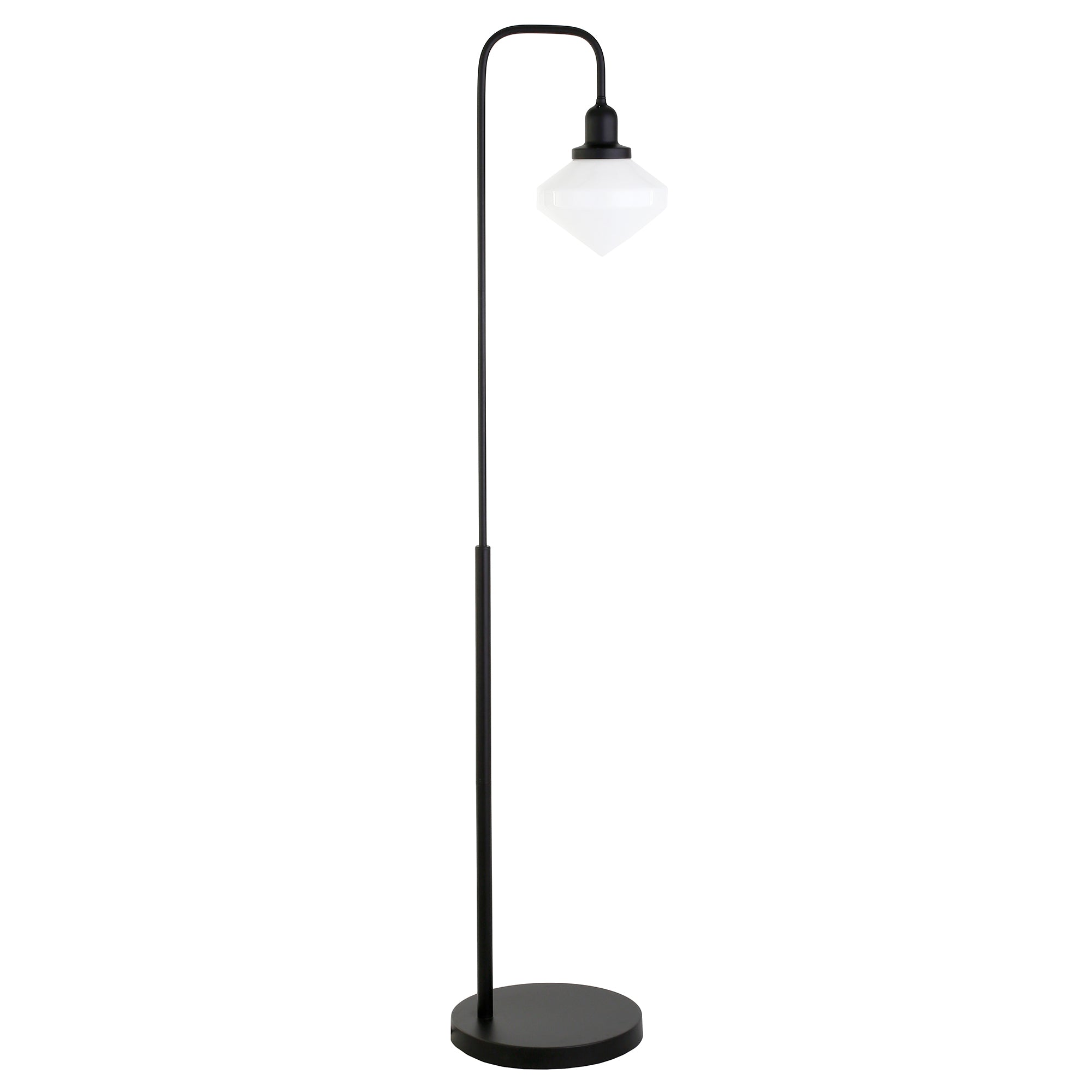 A classic arc floor lamp takes a whimsical turn with the soft gem shape of this fixture’s glass shade. Keep it contemporary with clear glass or add a touch of retro flair with a white milk glass shade. Its neutral metallic finish blend easily into any color scheme.