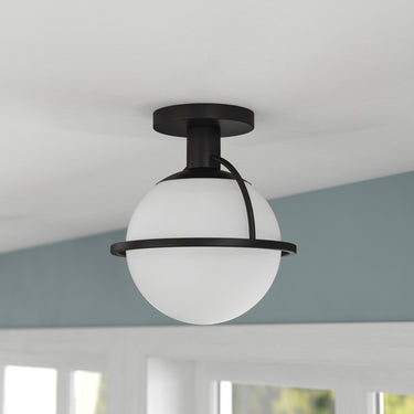 Pairing a modern canopy with a retro-inspired drop-globe shade, this semi flush mount ceiling light creates a classic mid-century look in your entranceway, hallway, or dining room. The enclosed white milk glass shade diffuses light gently throughout your space without a glare. The warm neutral metallic base artfully frames the fixture, creating a clean on-trend look.
