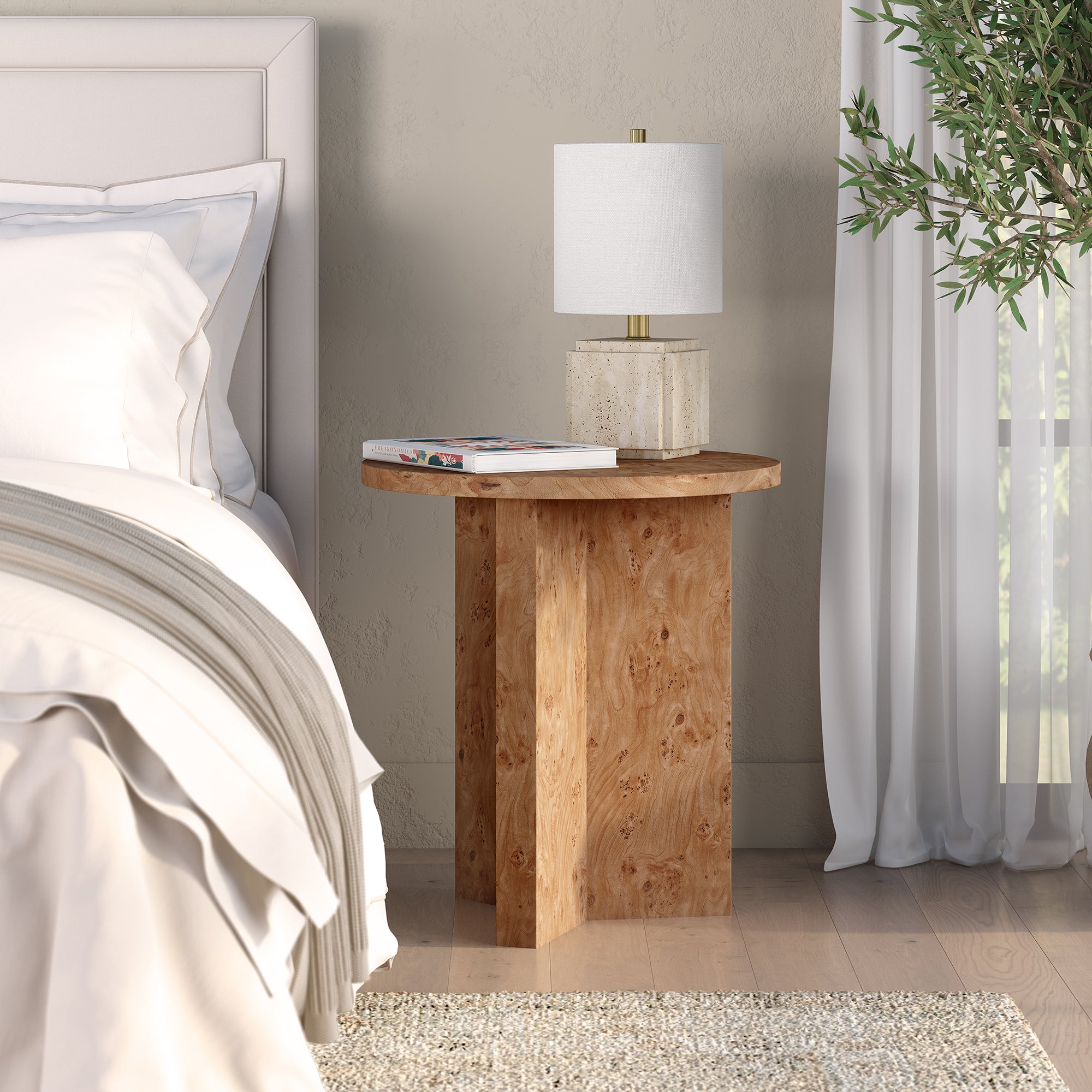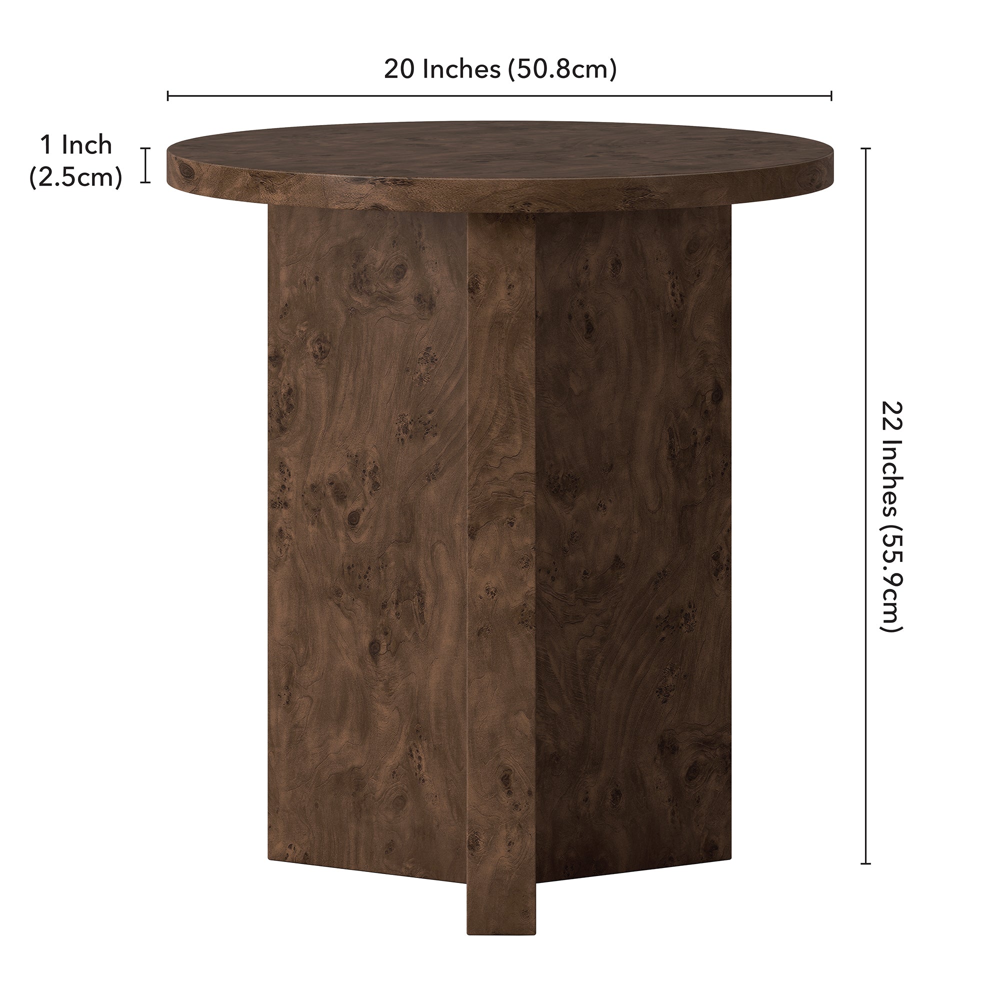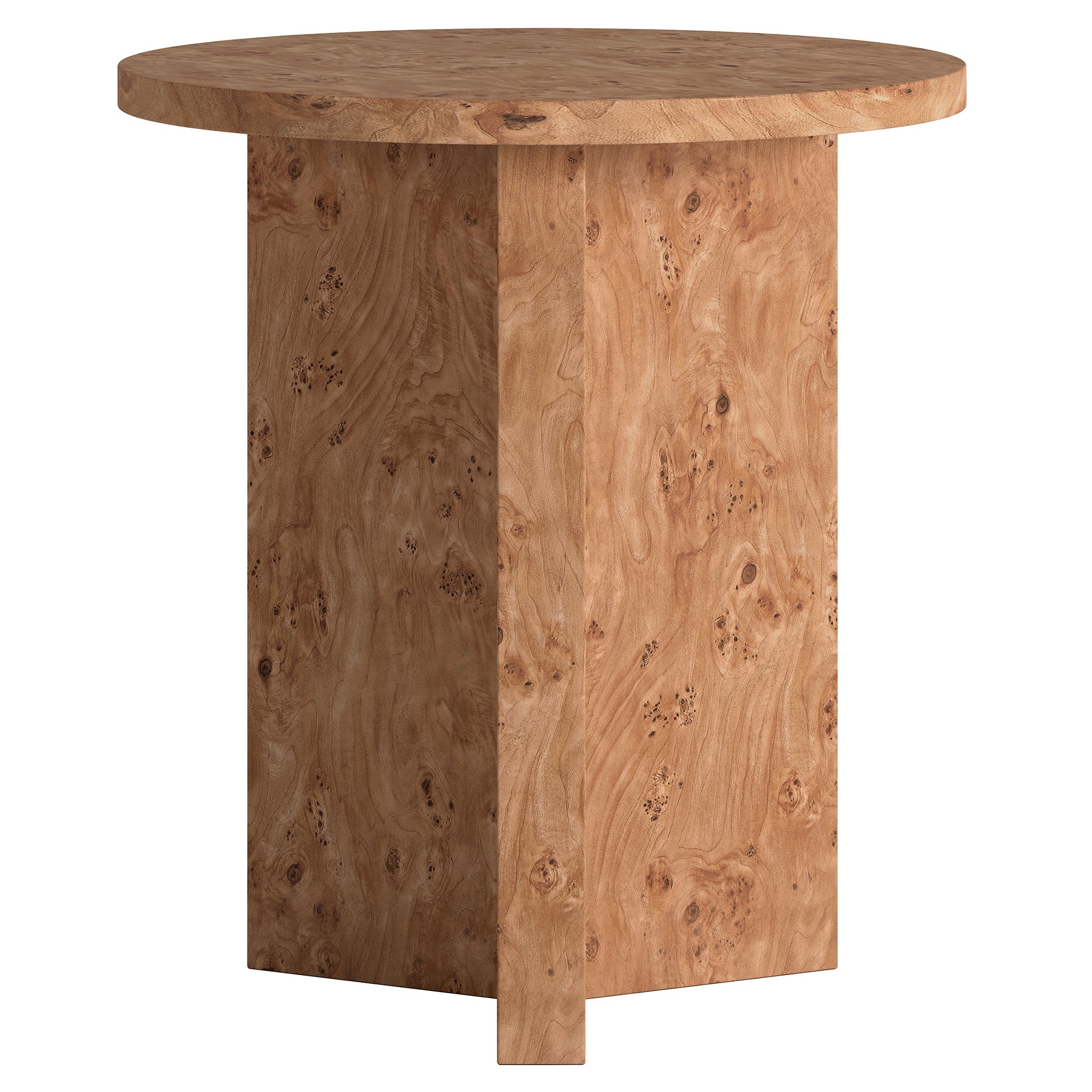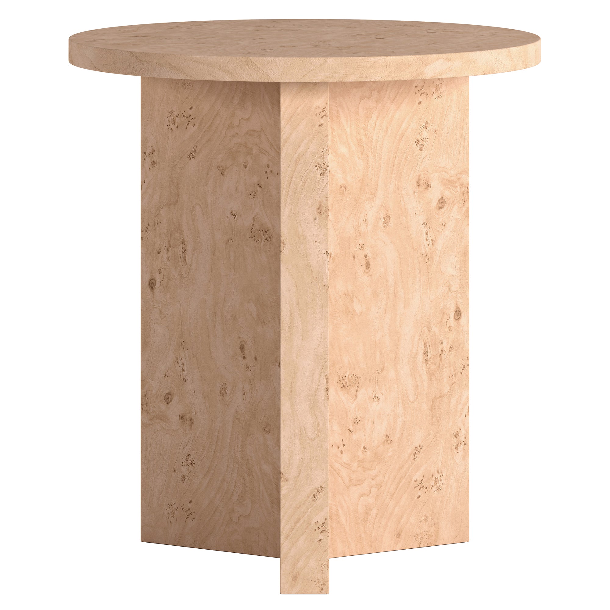 Striking in its simplicity, but with an eye catching finish and texture, this Scandinavian inspired side table emphasizes clean lines with a unique wood look. The sturdy base anchors the look, while the burl natural variation finish adds visual texture and tonal variation to your space. Featuring a 25 lb weight capacity and adjustable leveling feet under the base, this 20" round table will grant your living space with a new and on-trend focal point.