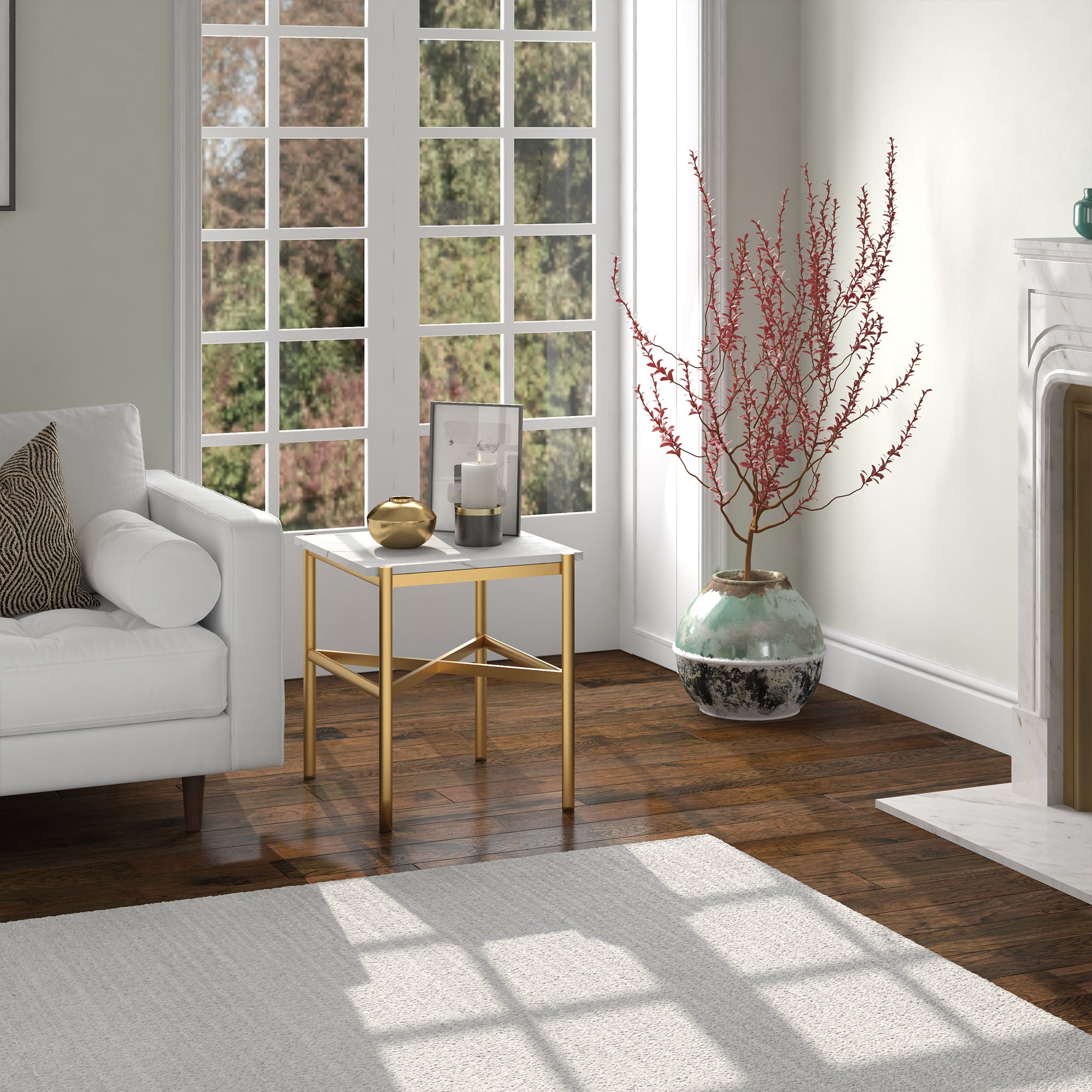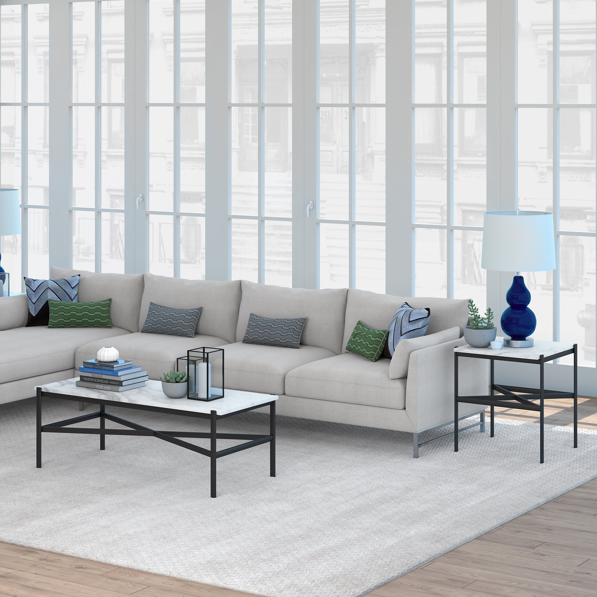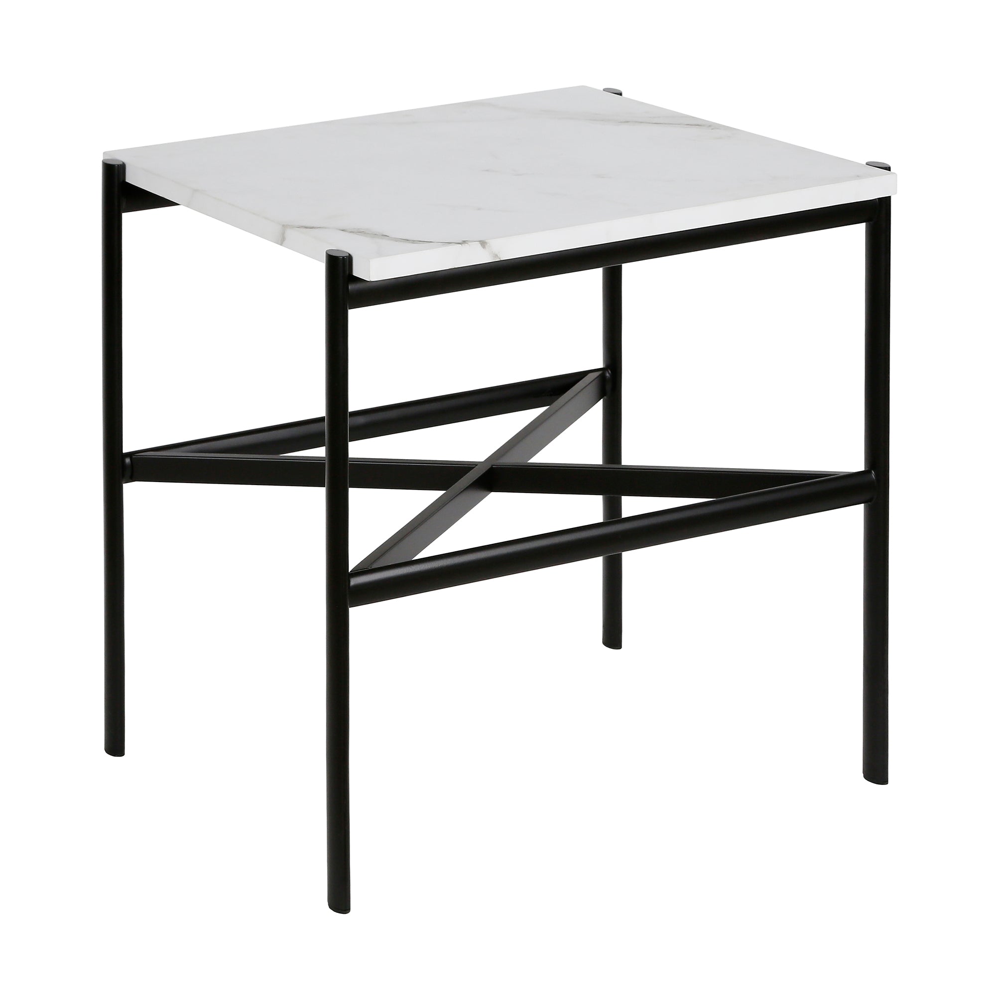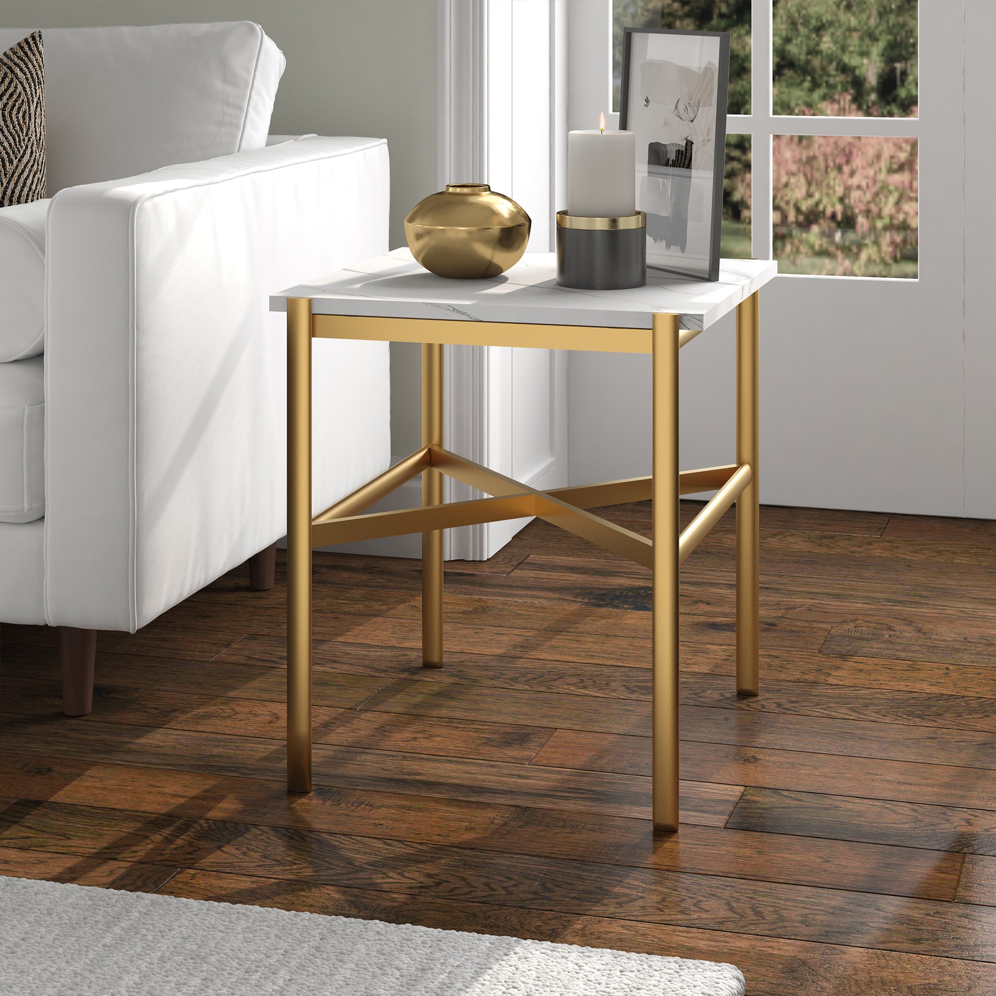 Geometric design takes this industrial modern side table to the next level. A seamless blend of mixed materials gives this table an industrial style that'll make your space looks warm and inviting. Easy to assemble and easy to style, the faux marble top and blackened bronze hardware make it the perfect addition to your living room or bedroom ensemble.