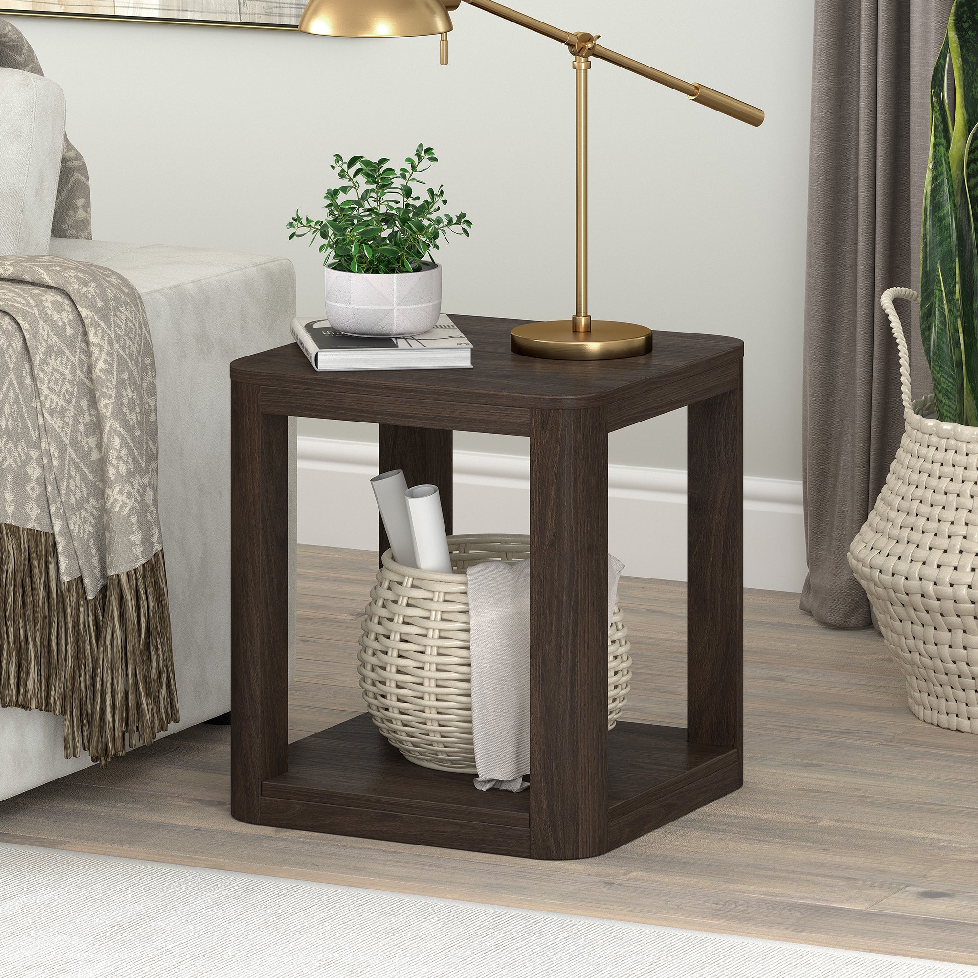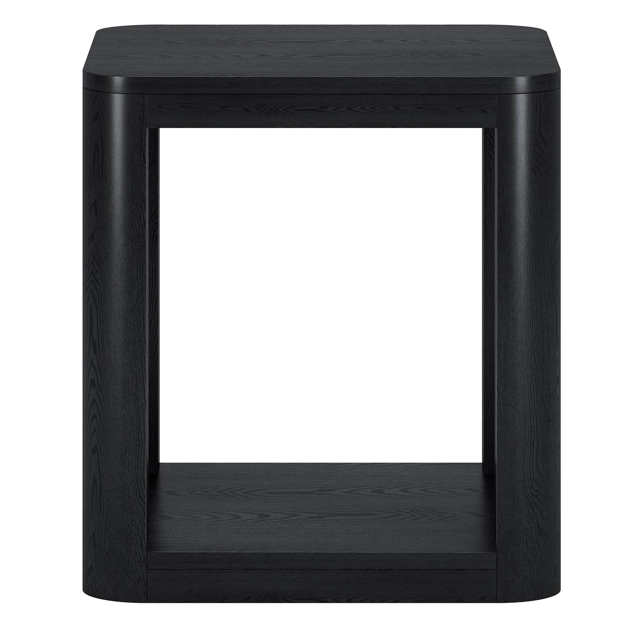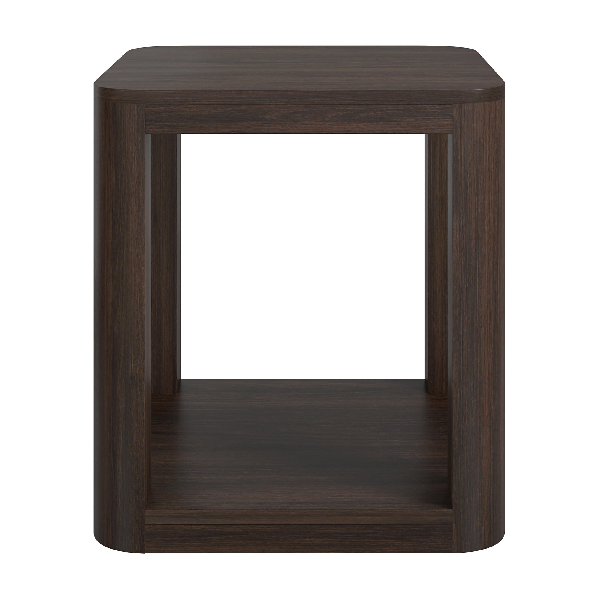 Striking in its simplicity, this modern side table emphasizes clean lines and straightforward design. The table's seamless design is given extra dimension with the gently rounded, double-posted frame. The solid base anchors the look, while the natural wood-look finish adds texture and tonal variation to your space. With plenty of open storage space to work with, this is the perfect piece to effortlessly update your living room, family room, or office.