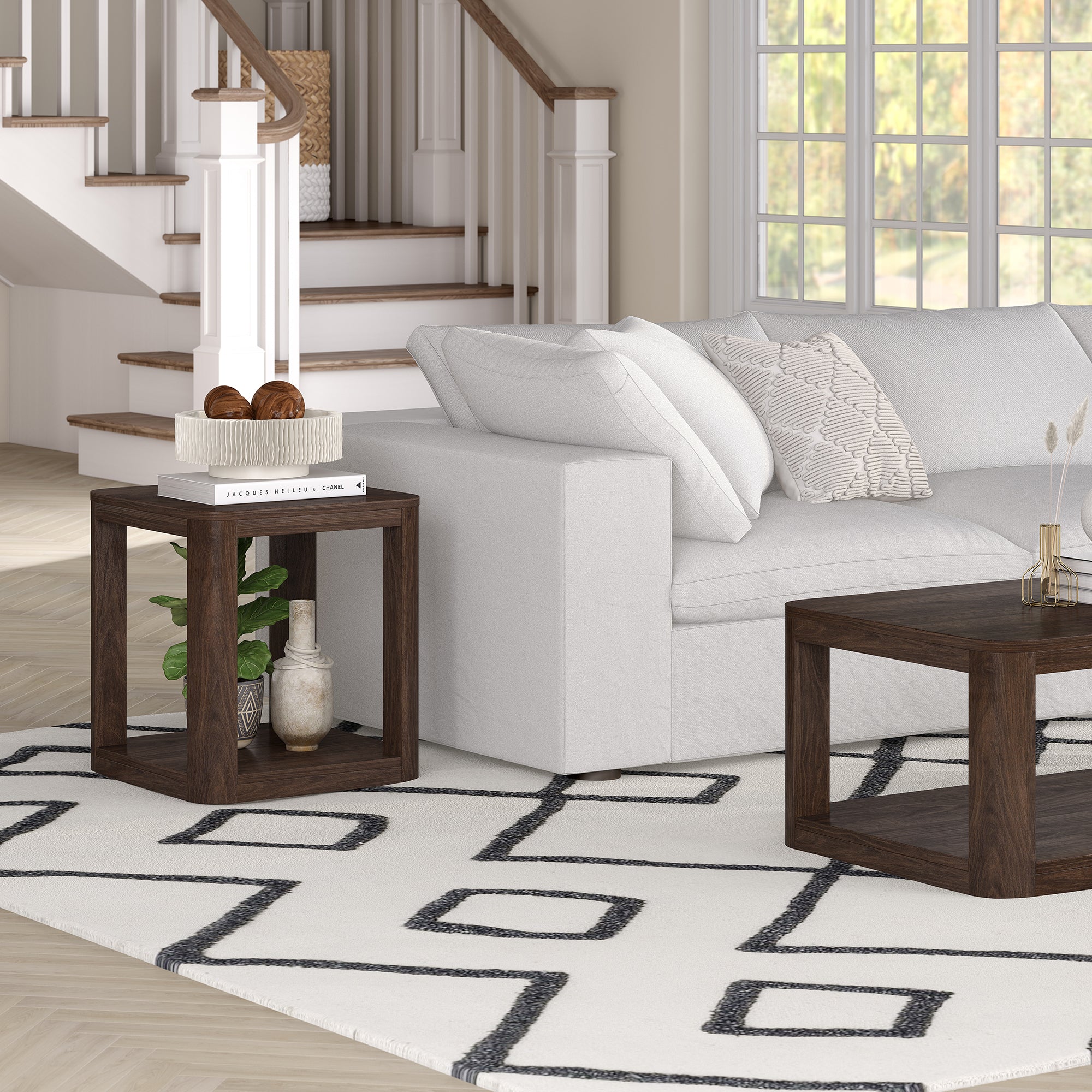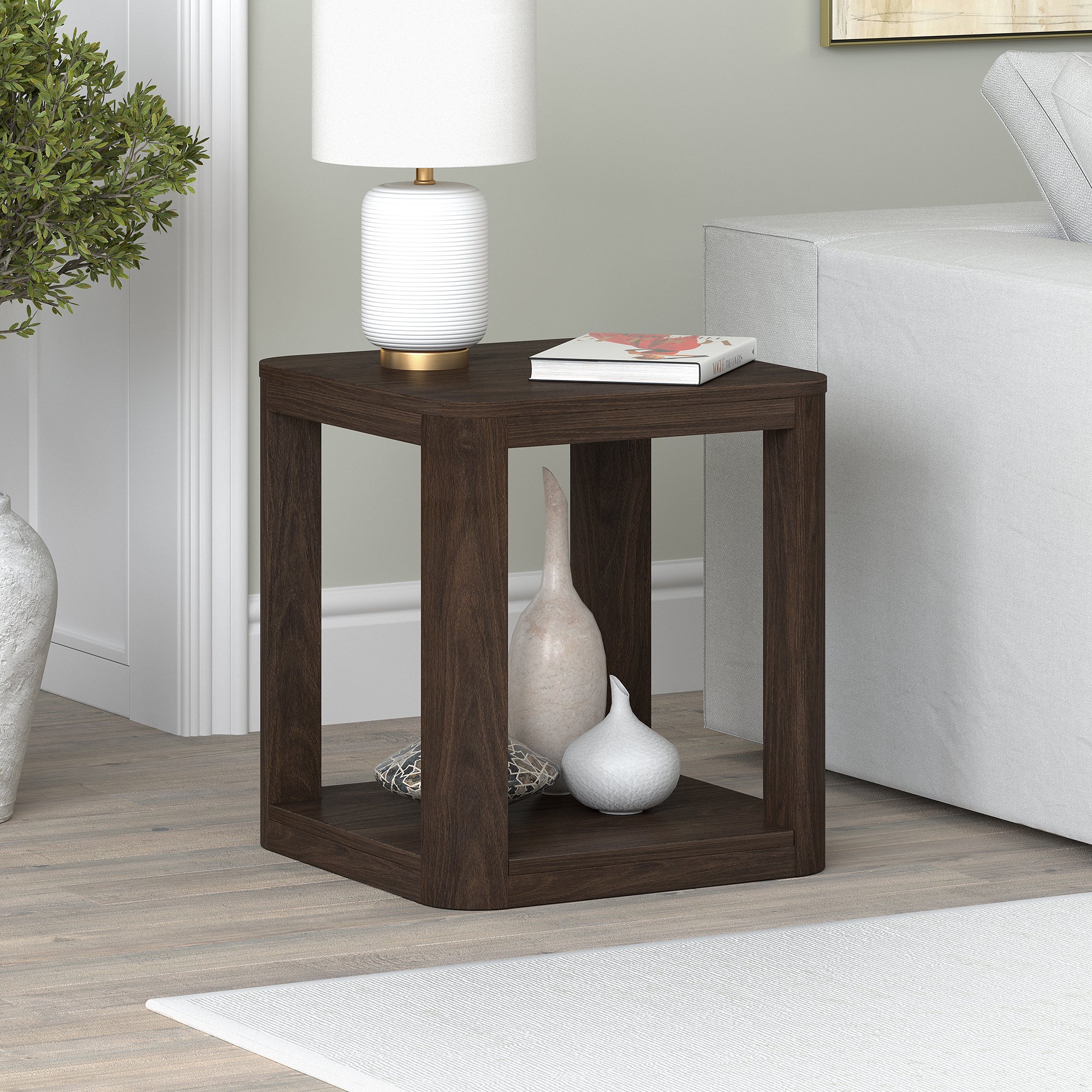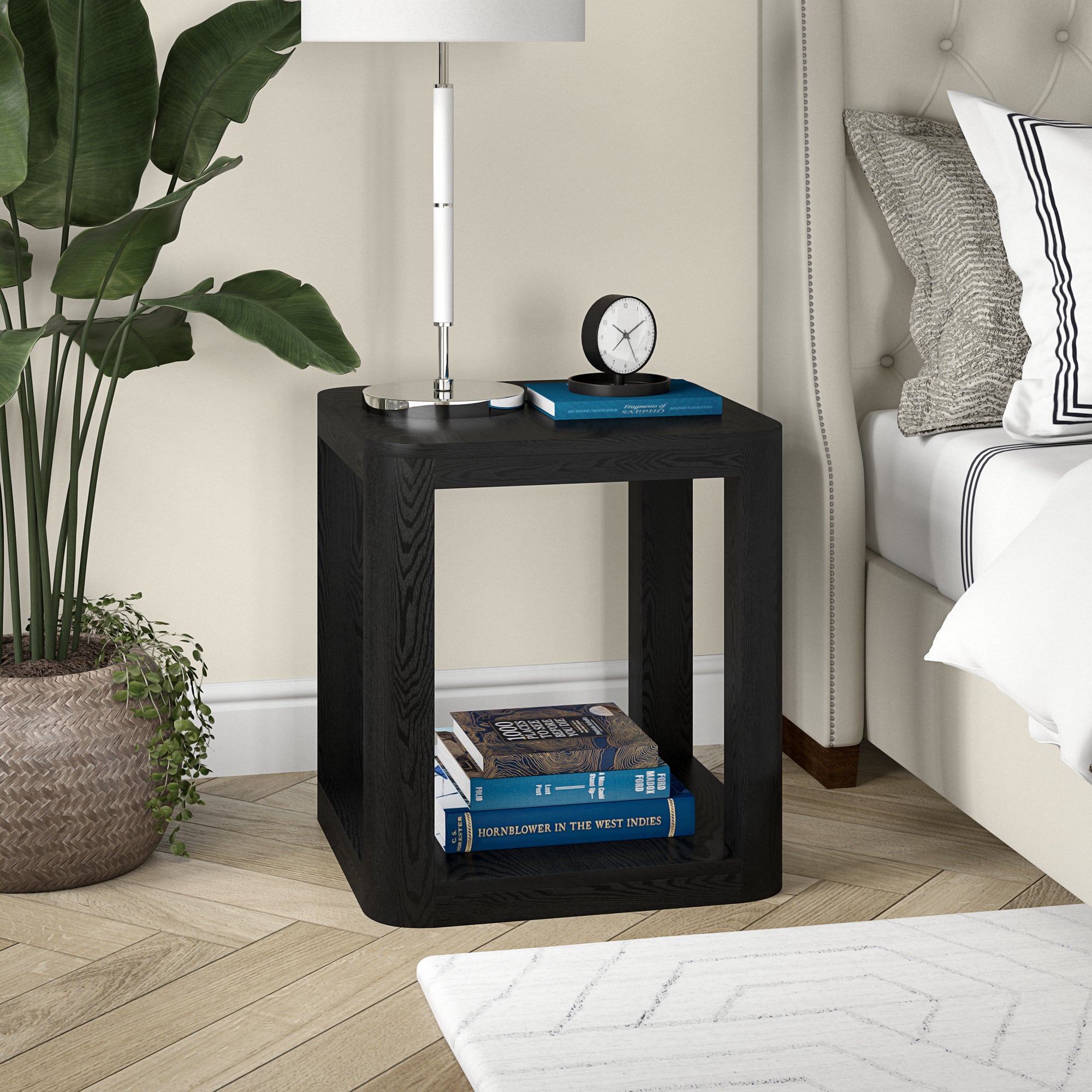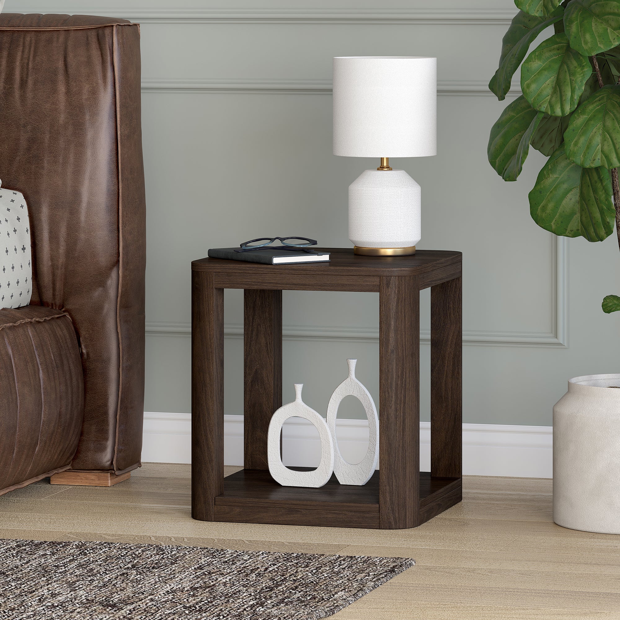 Striking in its simplicity, this modern side table emphasizes clean lines and straightforward design. The table's seamless design is given extra dimension with the gently rounded, double-posted frame. The solid base anchors the look, while the natural wood-look finish adds texture and tonal variation to your space. With plenty of open storage space to work with, this is the perfect piece to effortlessly update your living room, family room, or office.