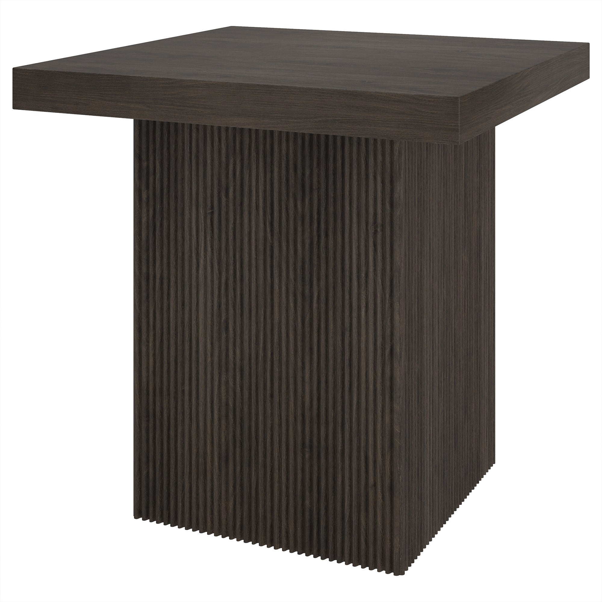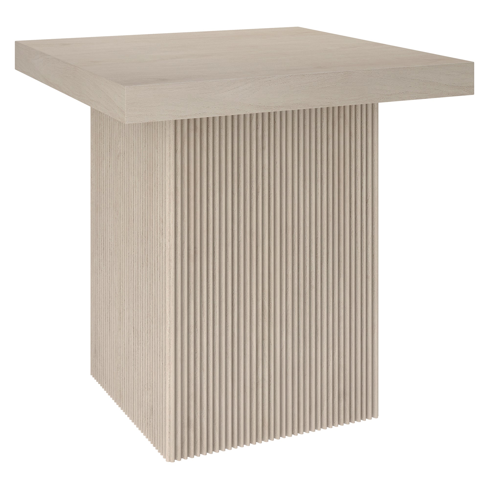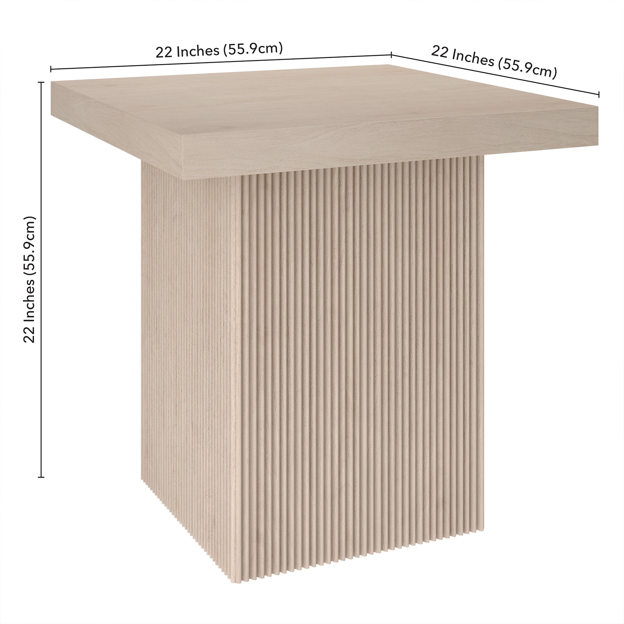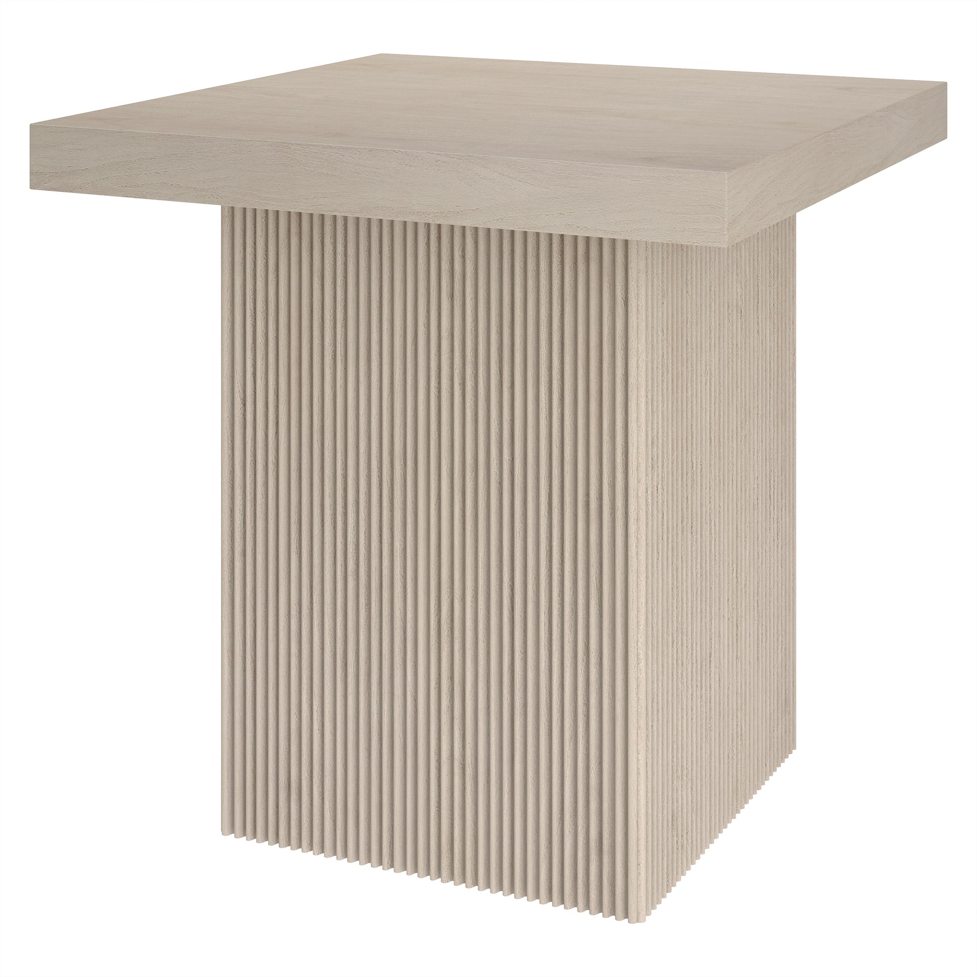 Striking in its simplicity, this modern side table emphasizes clean lines and straightforward design. The table's simple style is given extra dimension with the fluted detailing on the base. The natural wood-look finish adds texture and tonal variation to your space, while the solid base adds substance to the piece. With a weight capacity of up to 40 lbs, this is sure to be a durable addition to your living room, family room, or office.