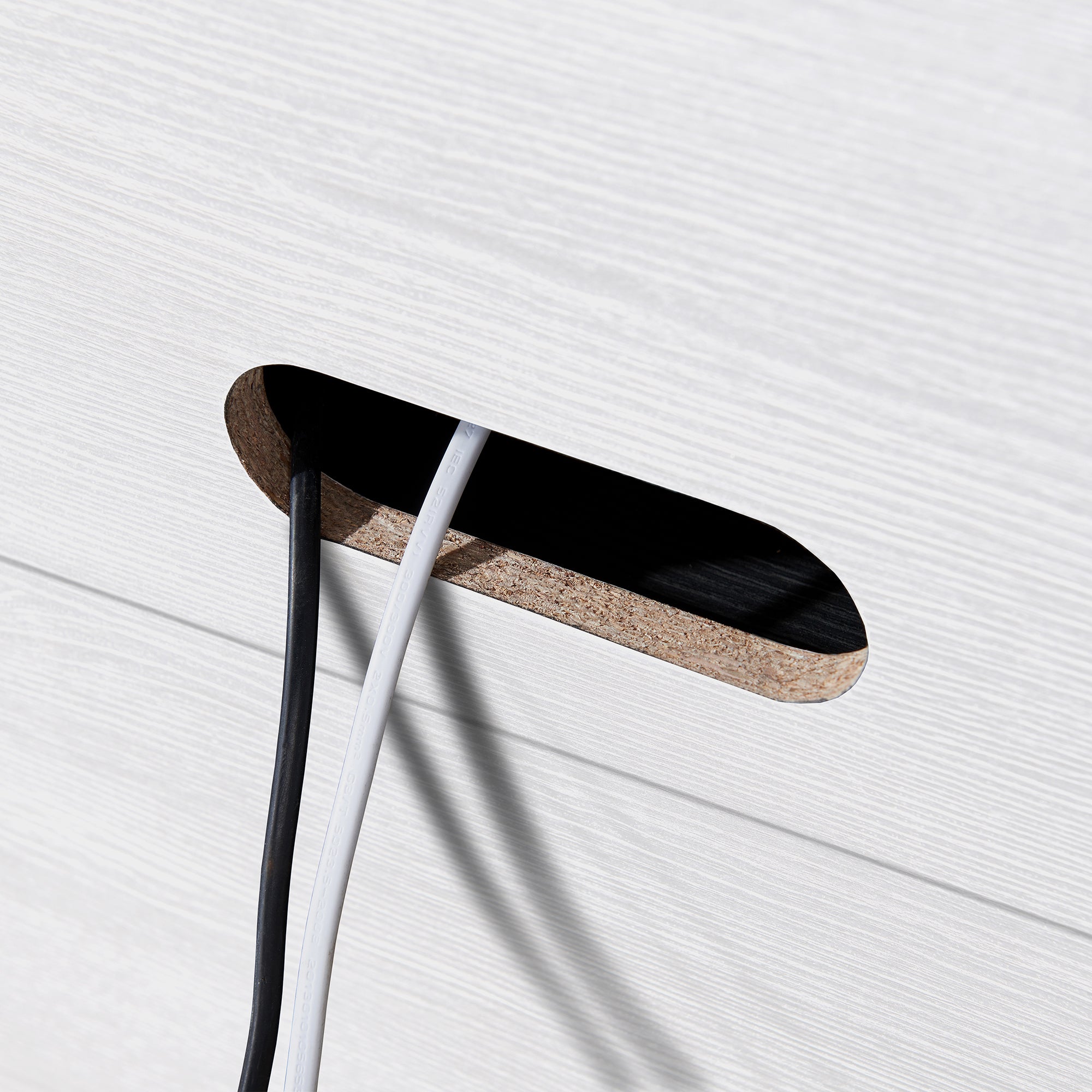 - Constructed of MDF and sturdy steel materials, in alder white, black grain, or white with a black base.