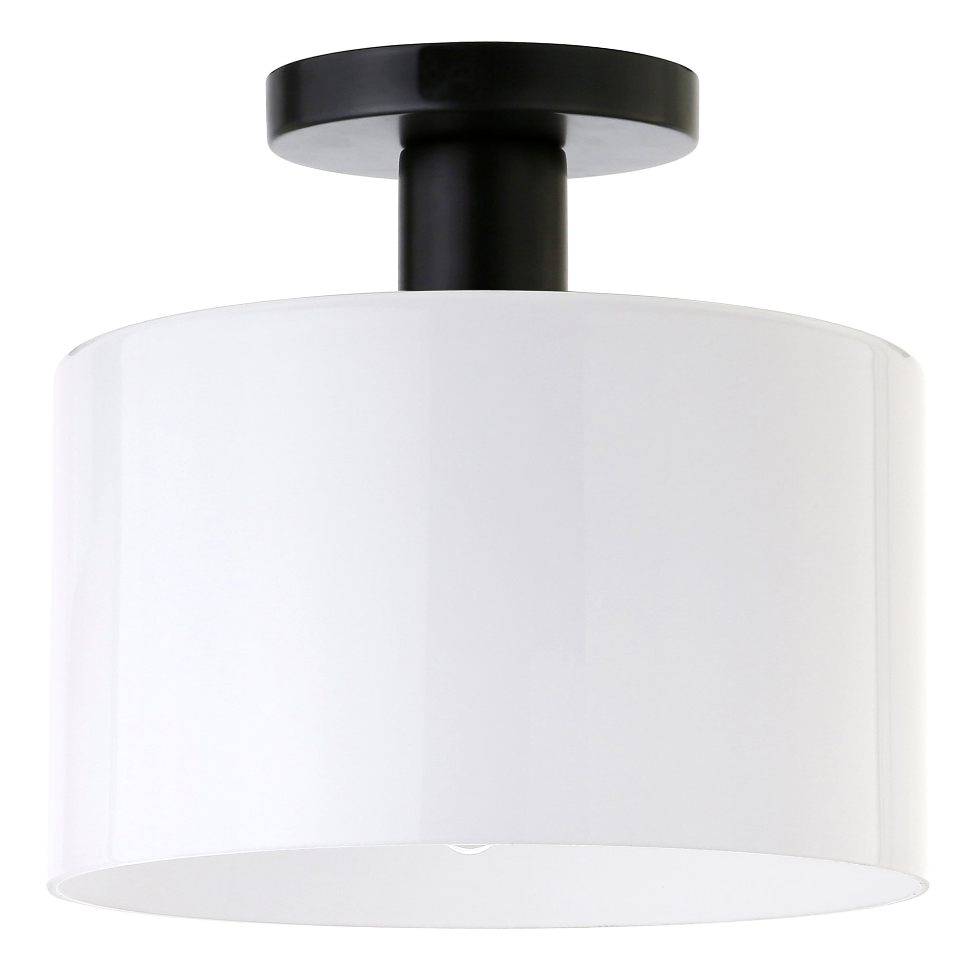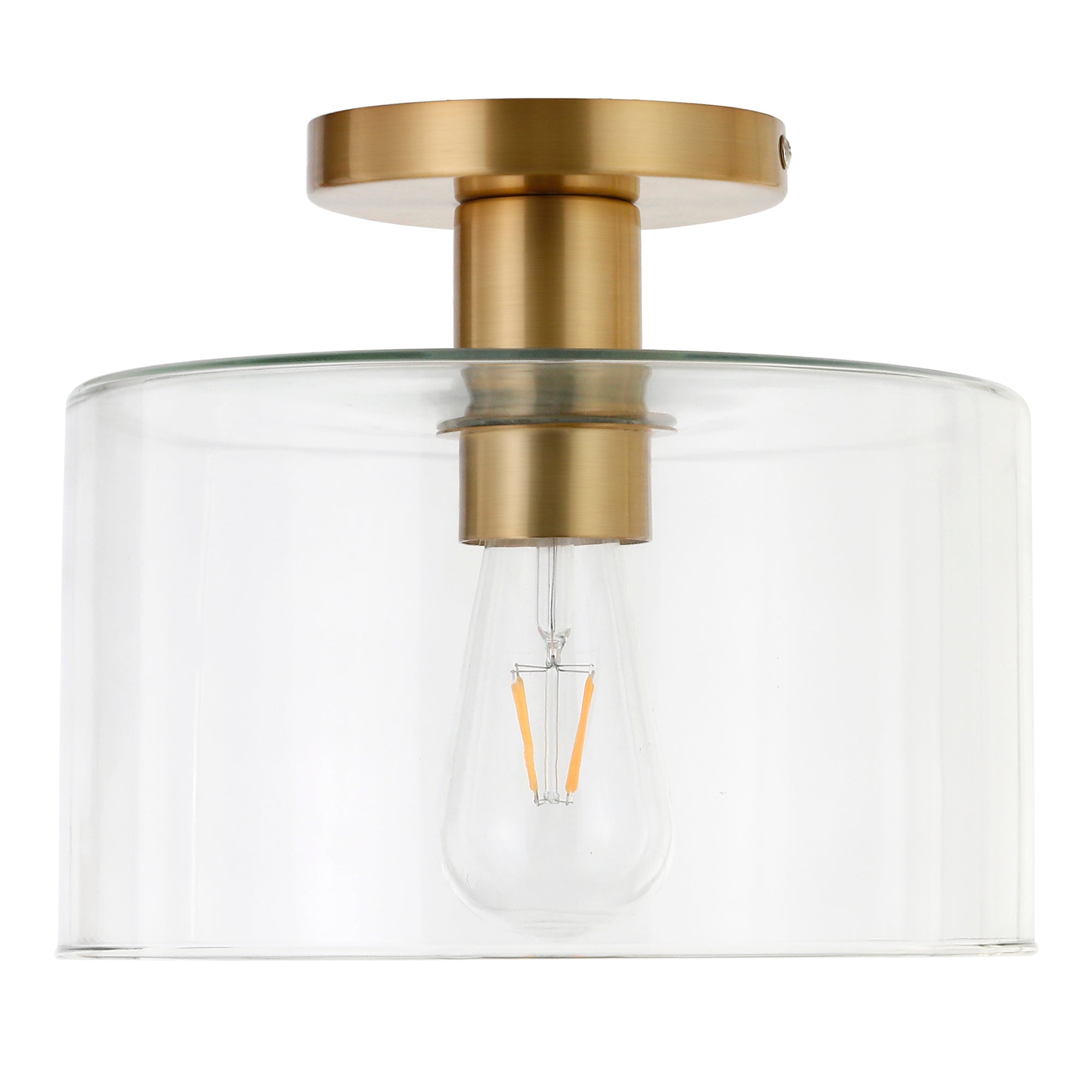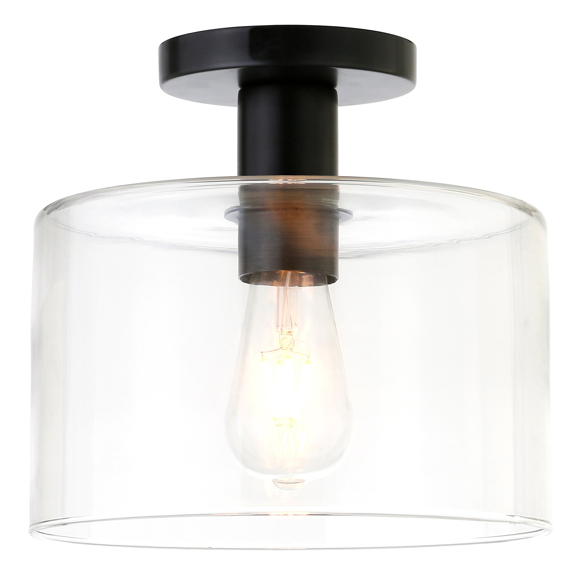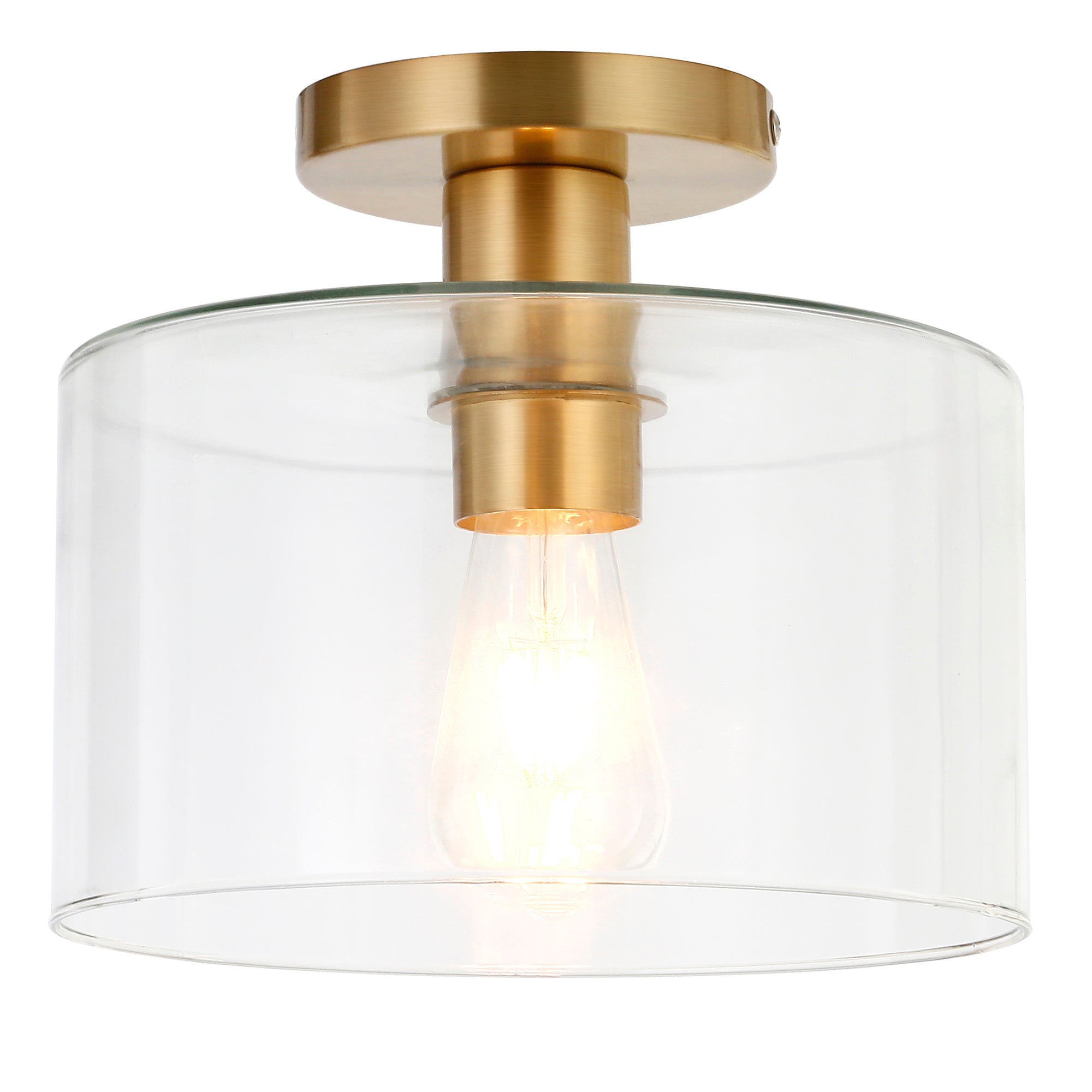 With a style inspired by the industrial revolution but appropriate for a coastal beach house, this semi flush mount ceiling light brings true mood lighting to your space. The classic glass drum shade and streamlined hardware gives this fixture a retro feel that complements many decor styles. The on-trend metallic finish provides a perfect complement to nearly any color scheme.