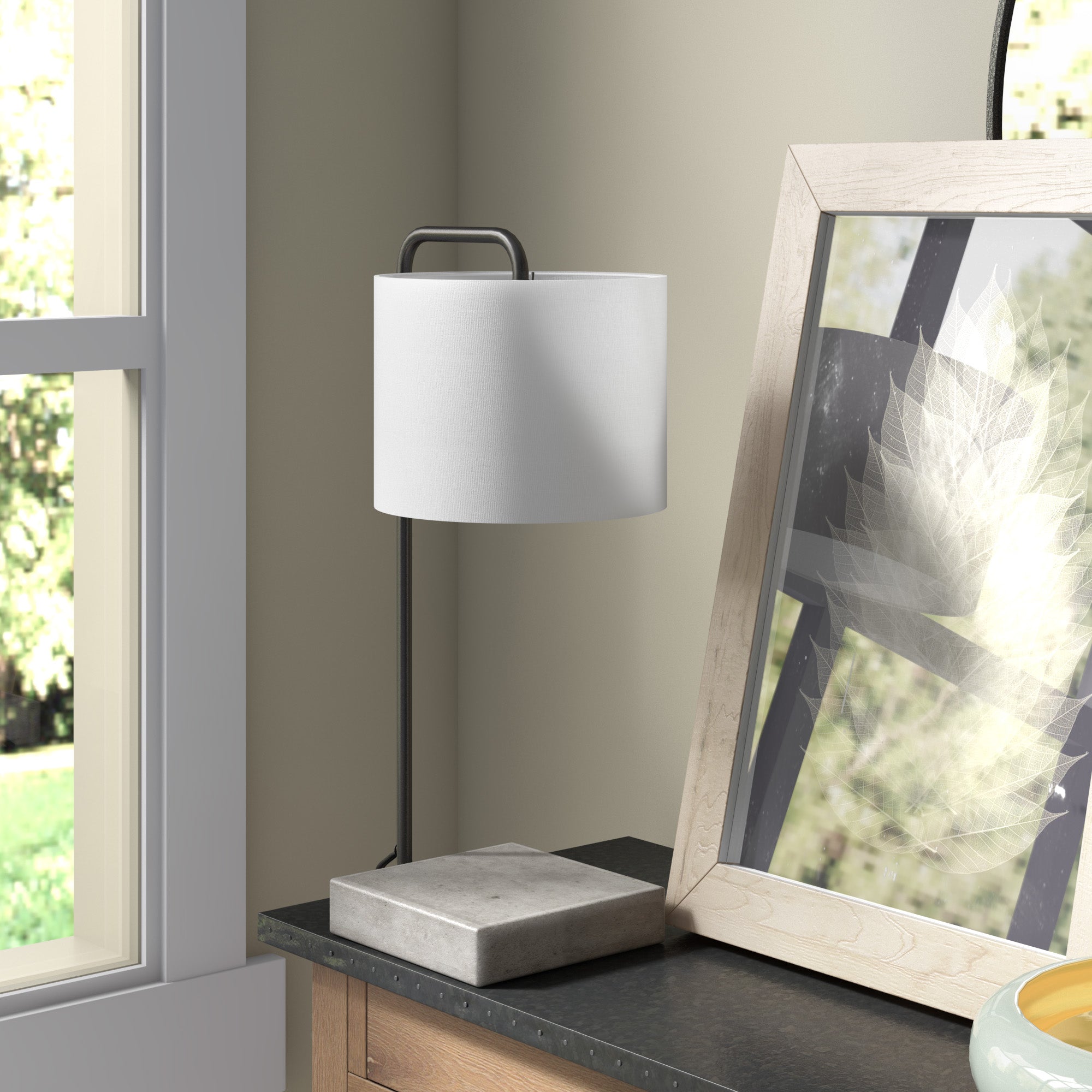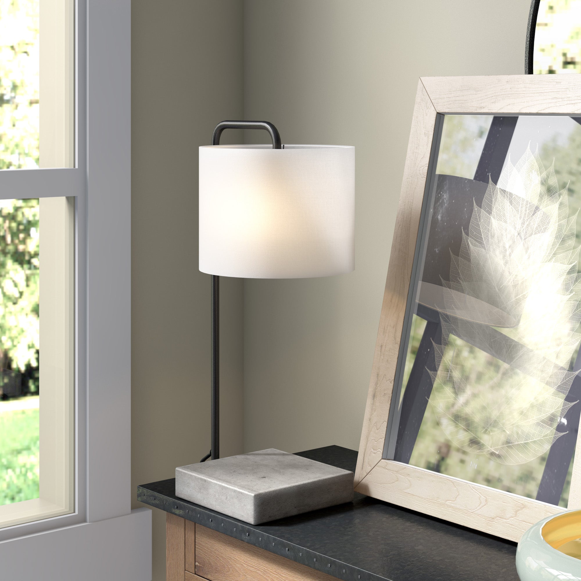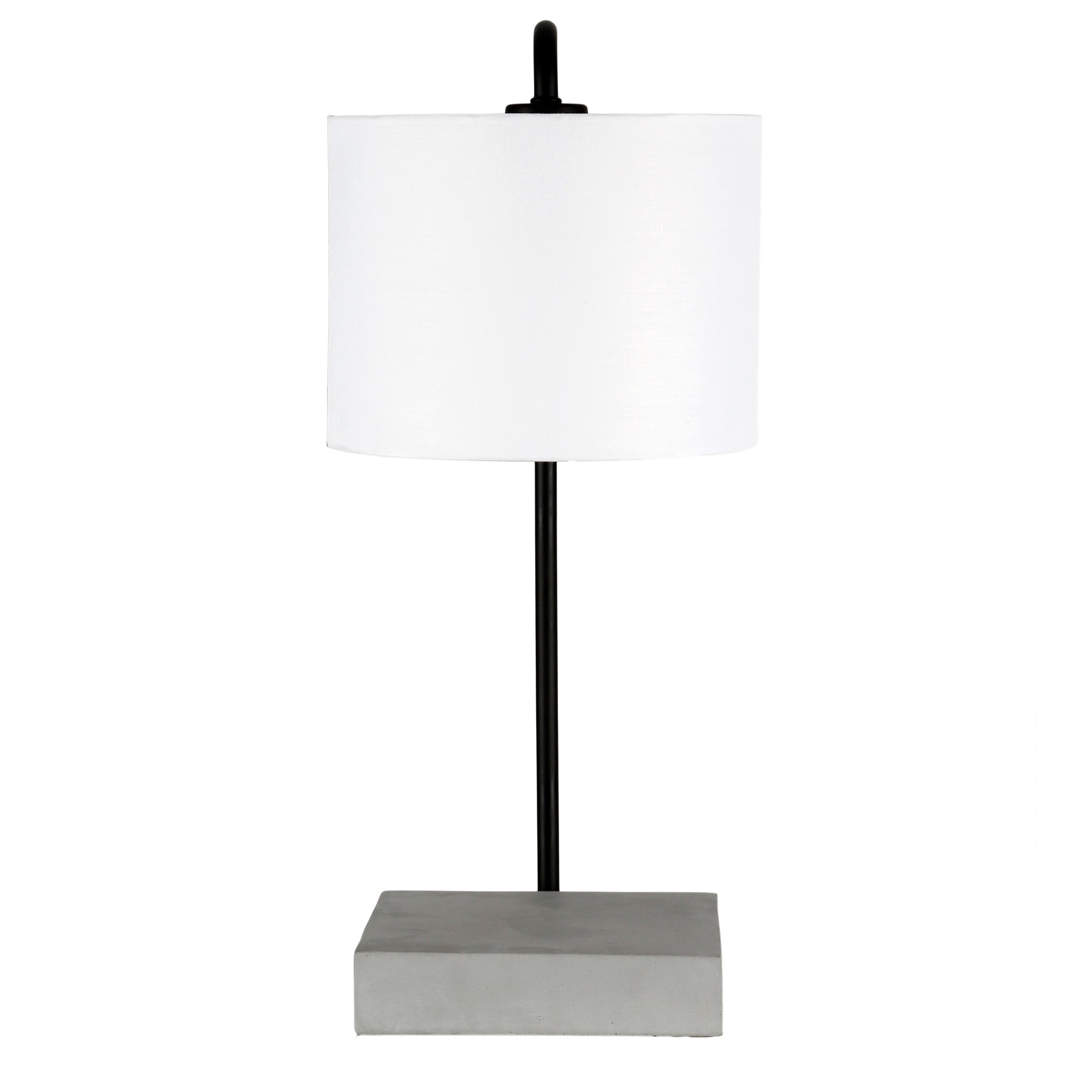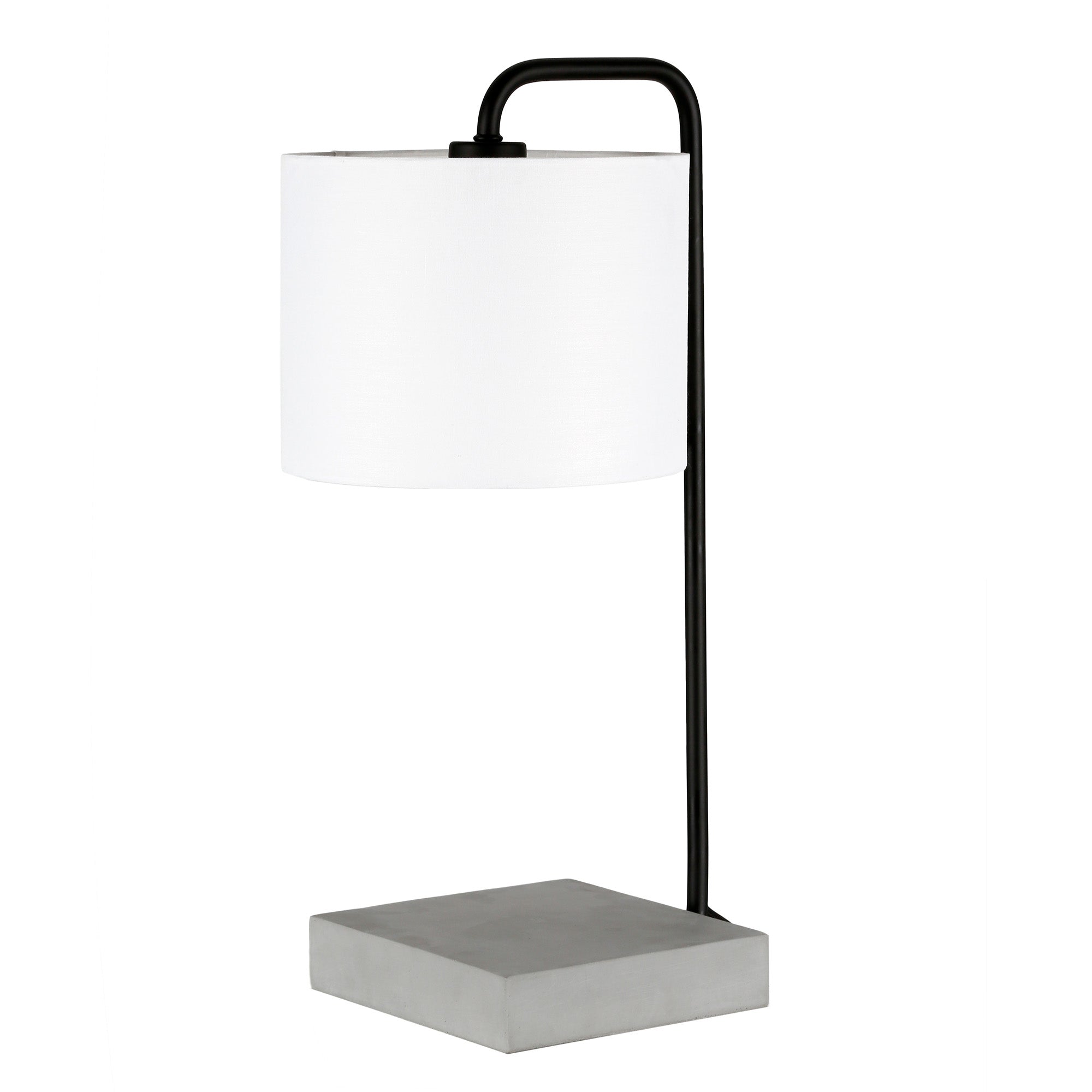 Bring a touch of modern, industrial design to your living room or bedroom with this 22" table lamp. Featuring a concrete base and blackened bronze hardware, this sturdy lamp is the perfect addition to your bedside or office desk. The fabric drum shade brings a touch of softness to its design.