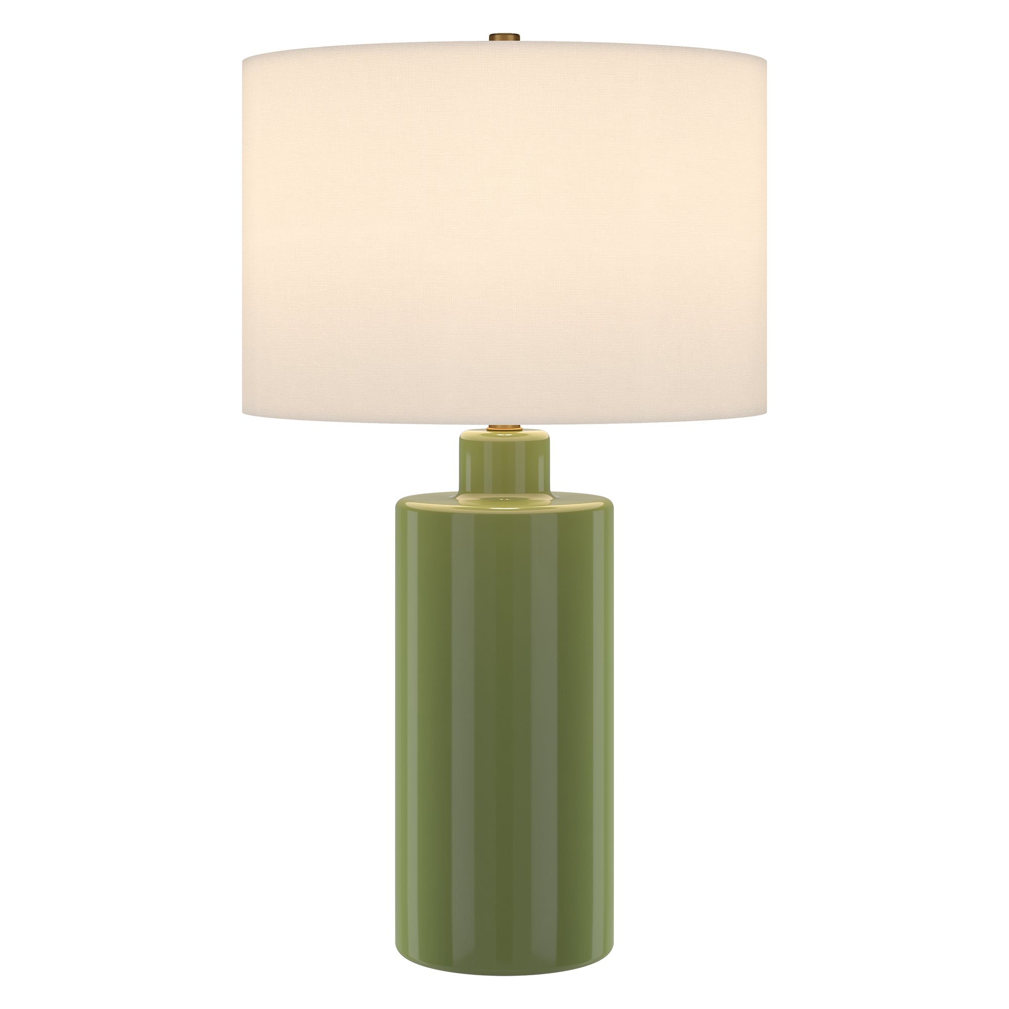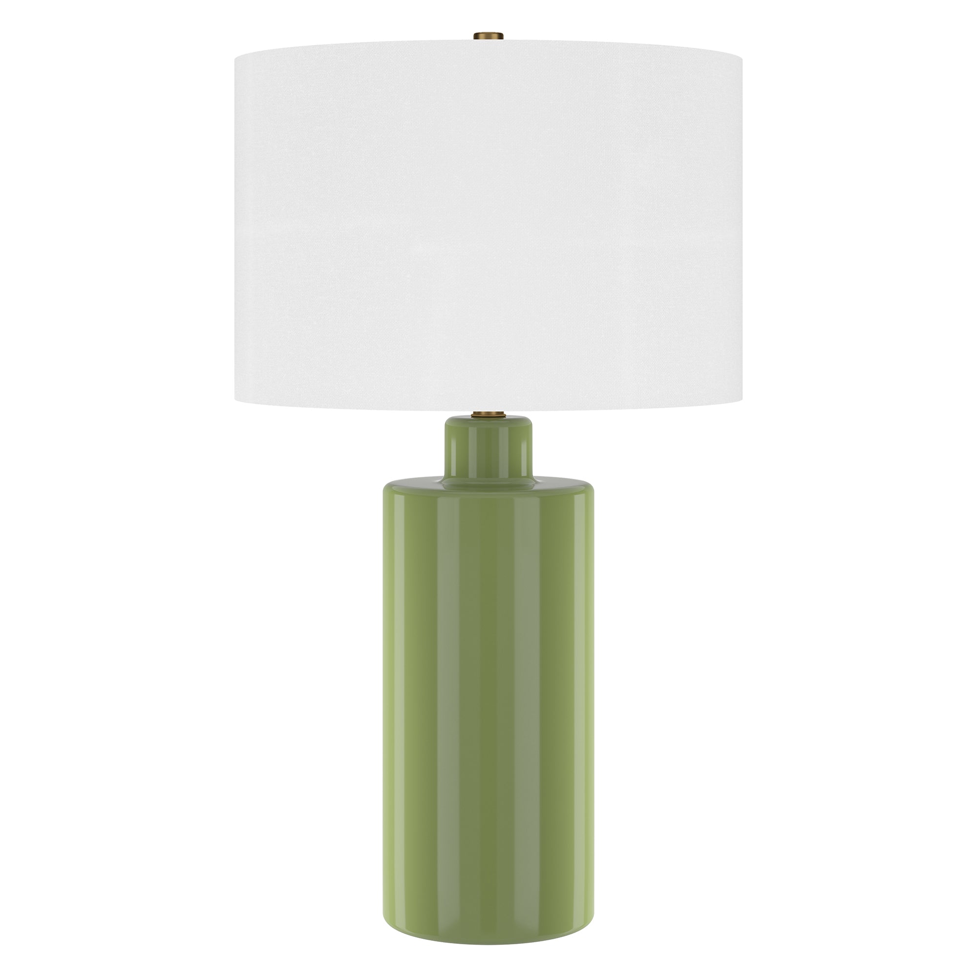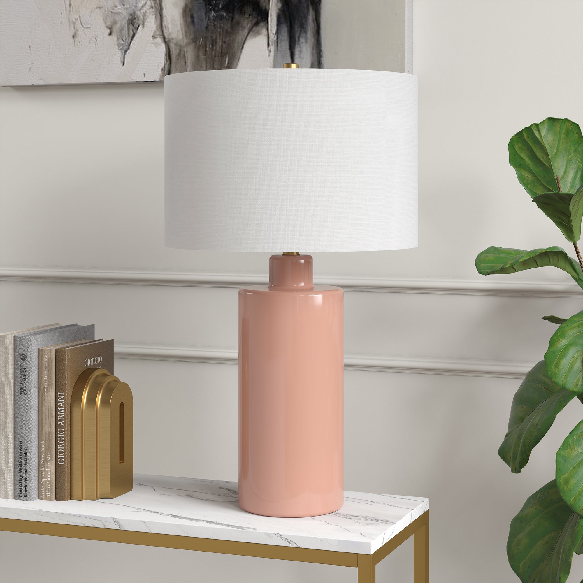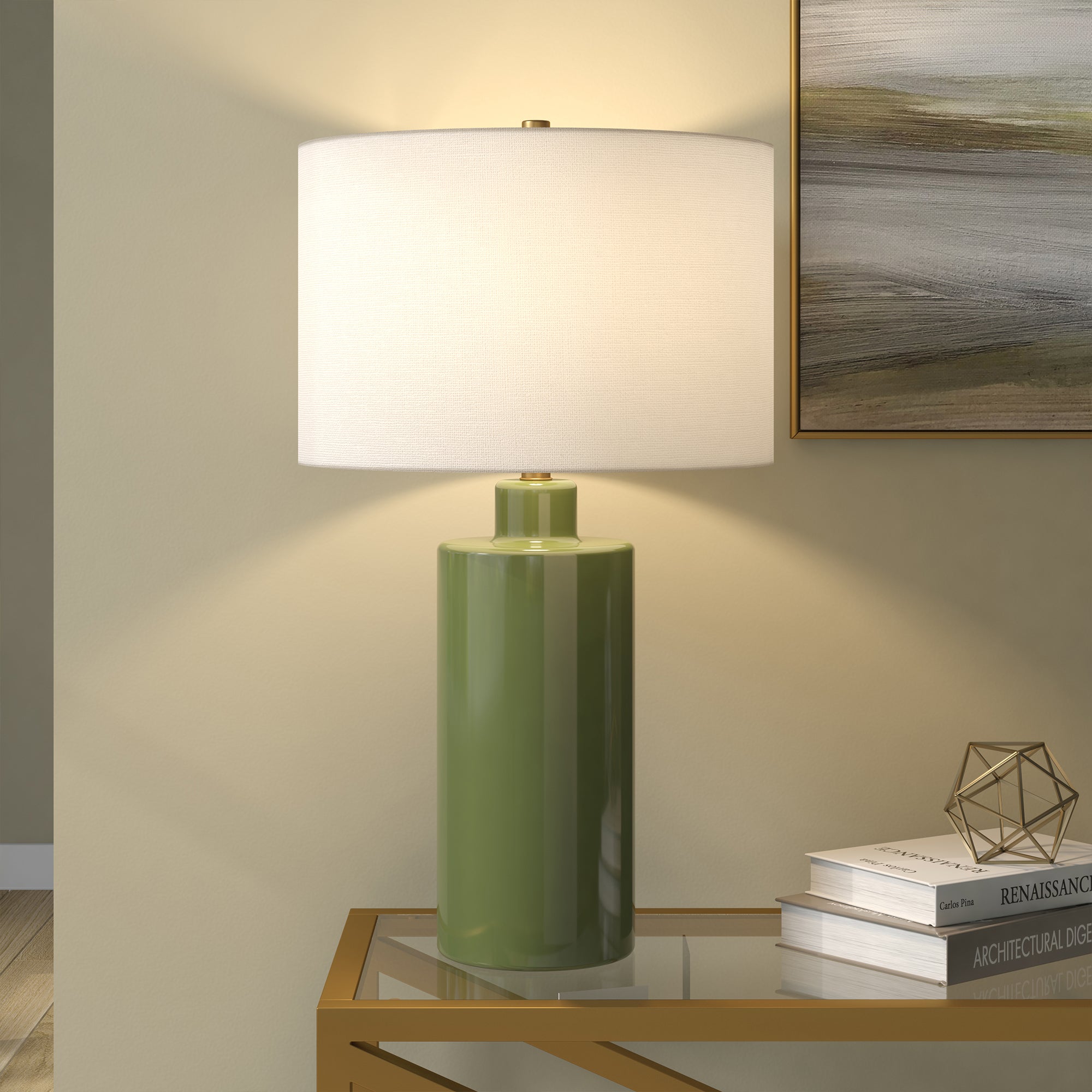 Add an on-trend pop of color to your living room, bedside, or den with this Scandinavian-inspired modern table lamp. It features a substantial ceramic base finished with a glossed exterior in a muted yet eye-catching colorway that will really tie the room together. The fixture is topped off with a crisp white fabric drum shade that perfectly complements the soft curves featured in the design.