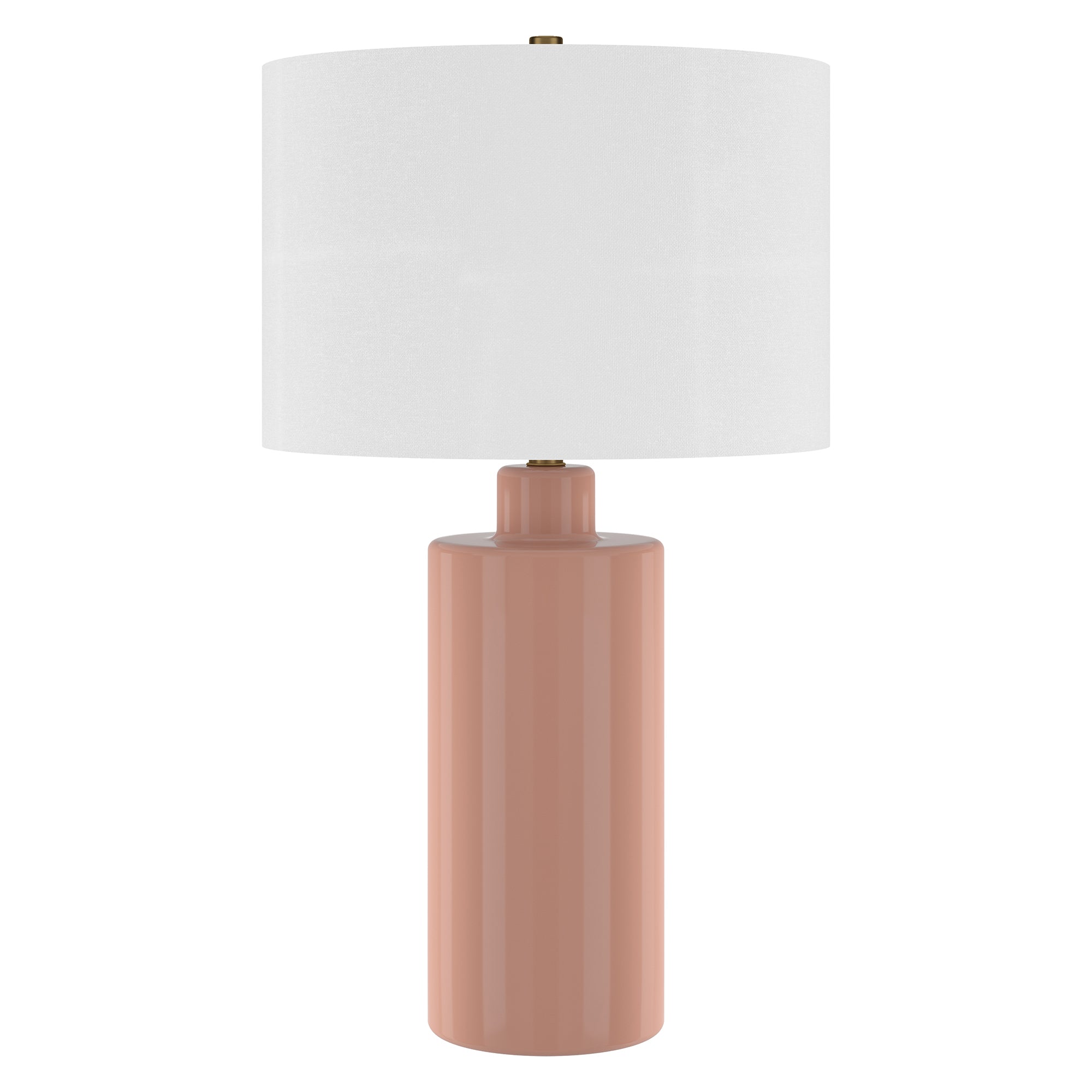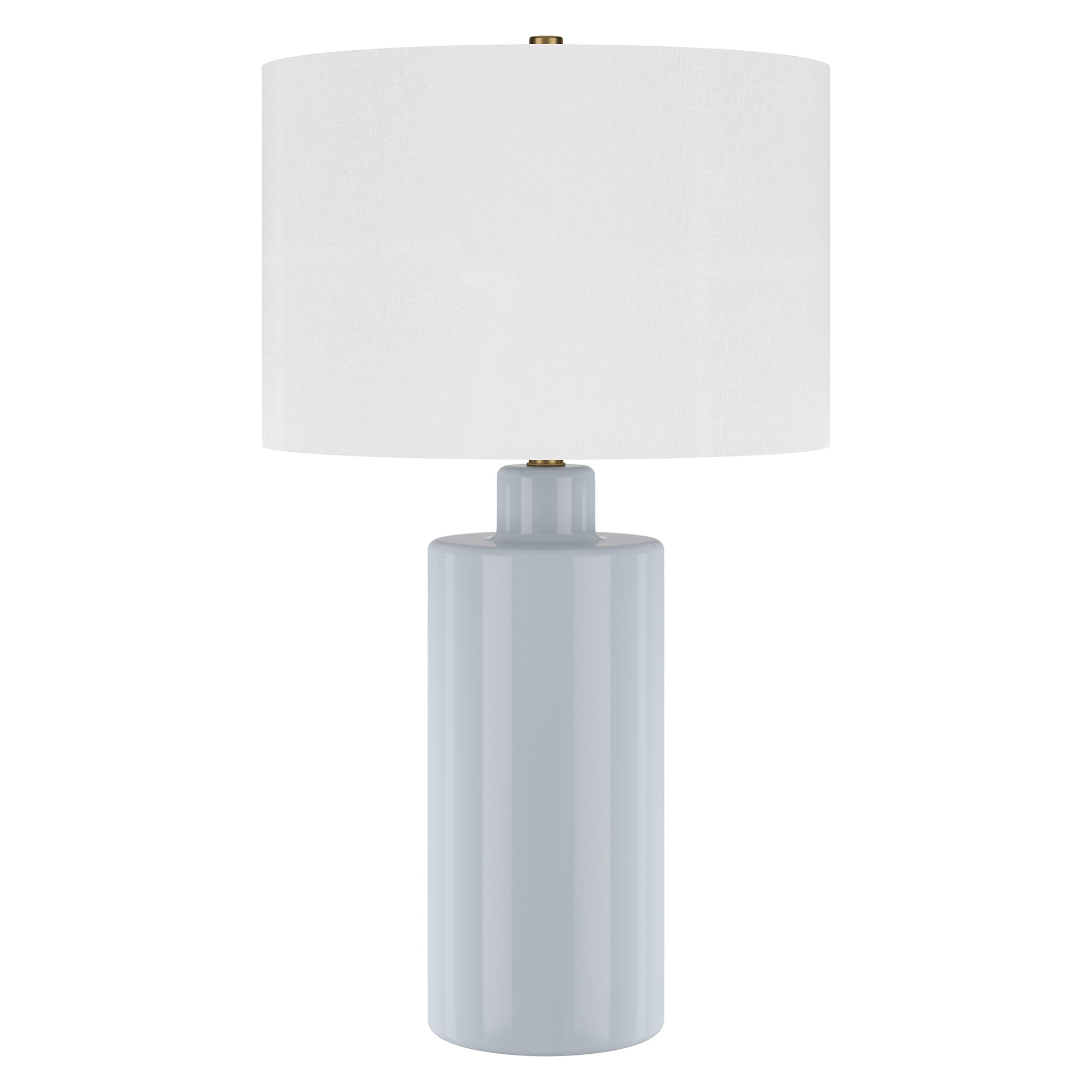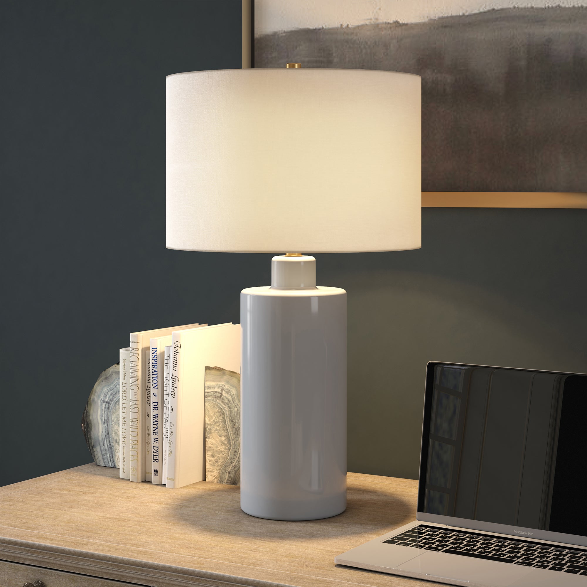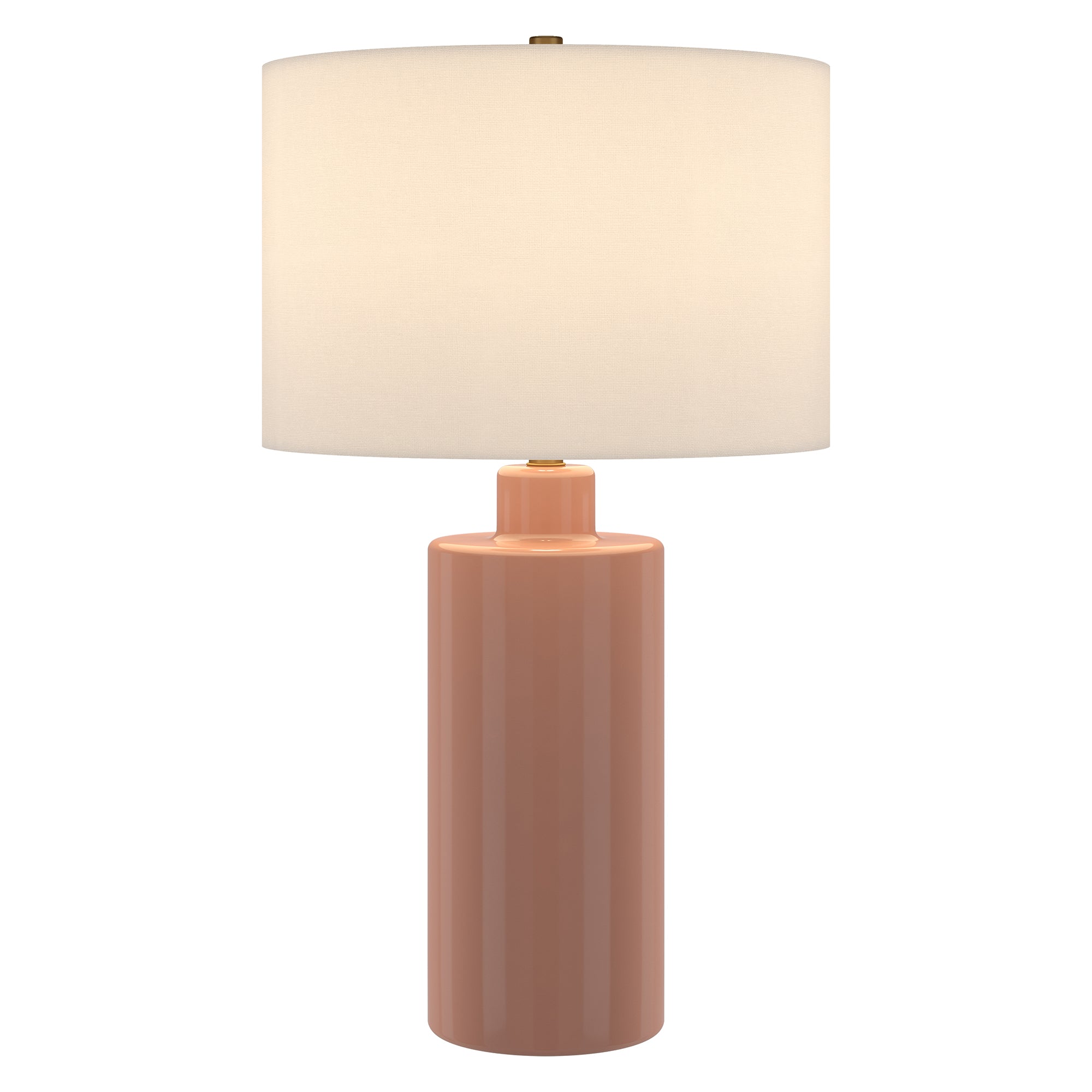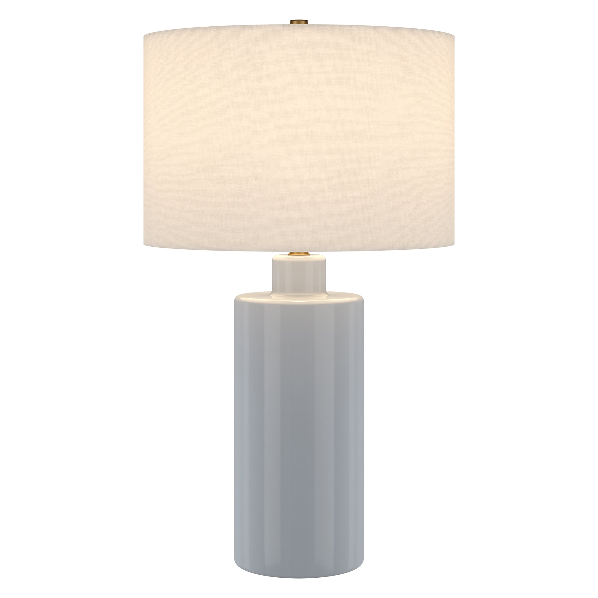Add an on-trend pop of color to your living room, bedside, or den with this Scandinavian-inspired modern table lamp. It features a substantial ceramic base finished with a glossed exterior in a muted yet eye-catching colorway that will really tie the room together. The fixture is topped off with a crisp white fabric drum shade that perfectly complements the soft curves featured in the design.