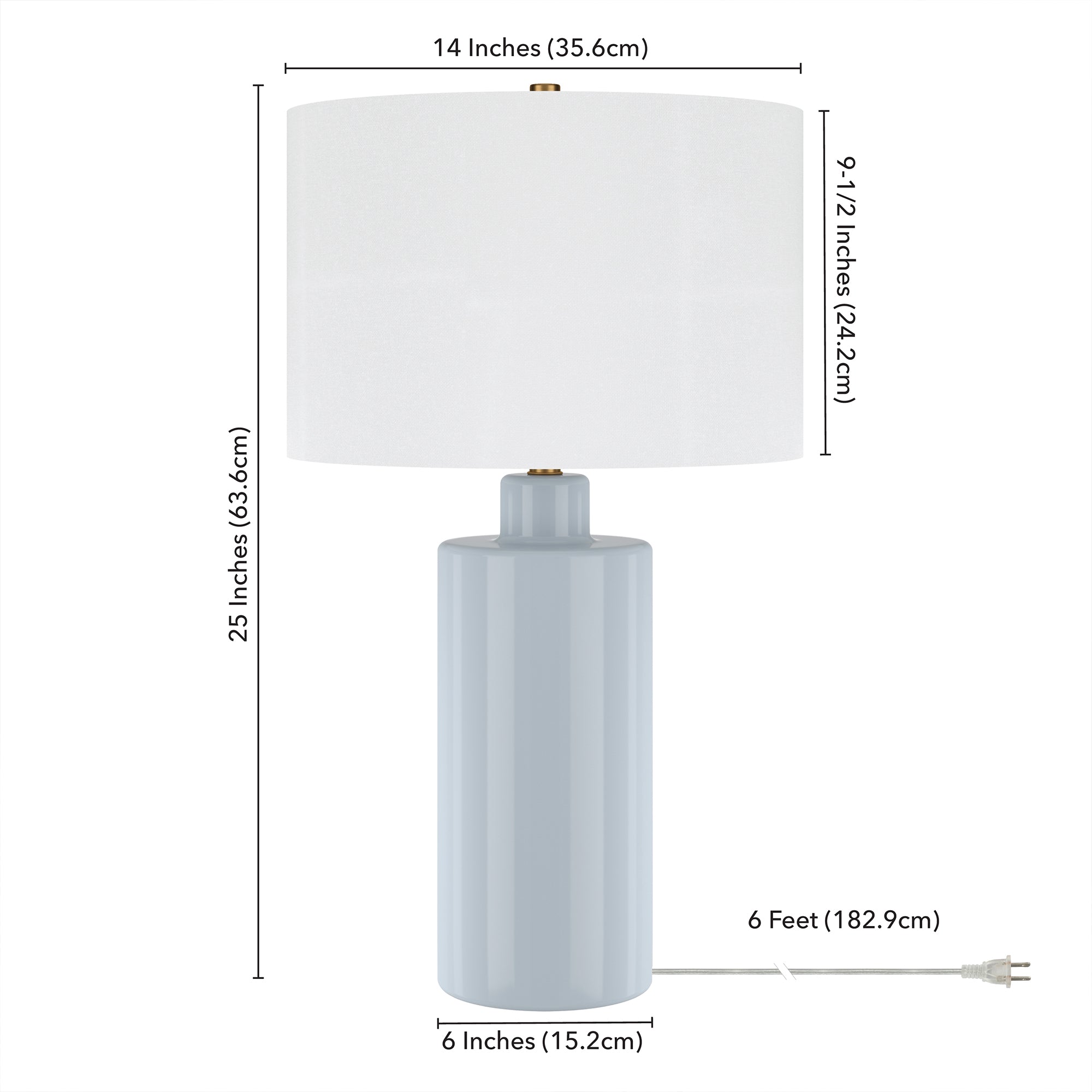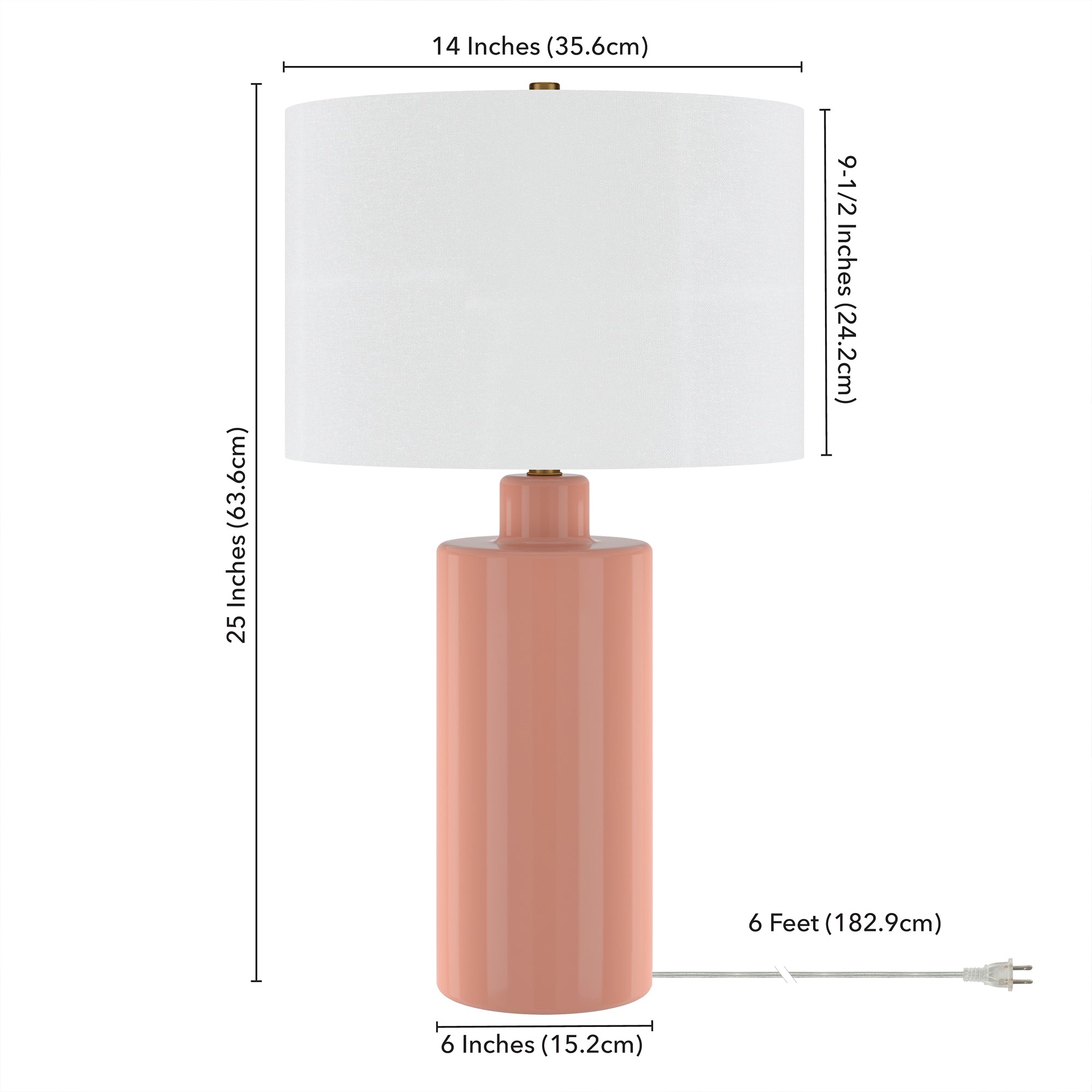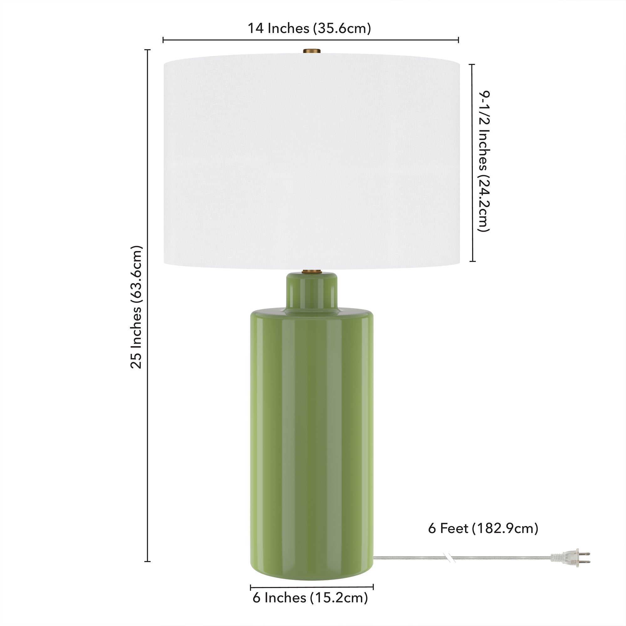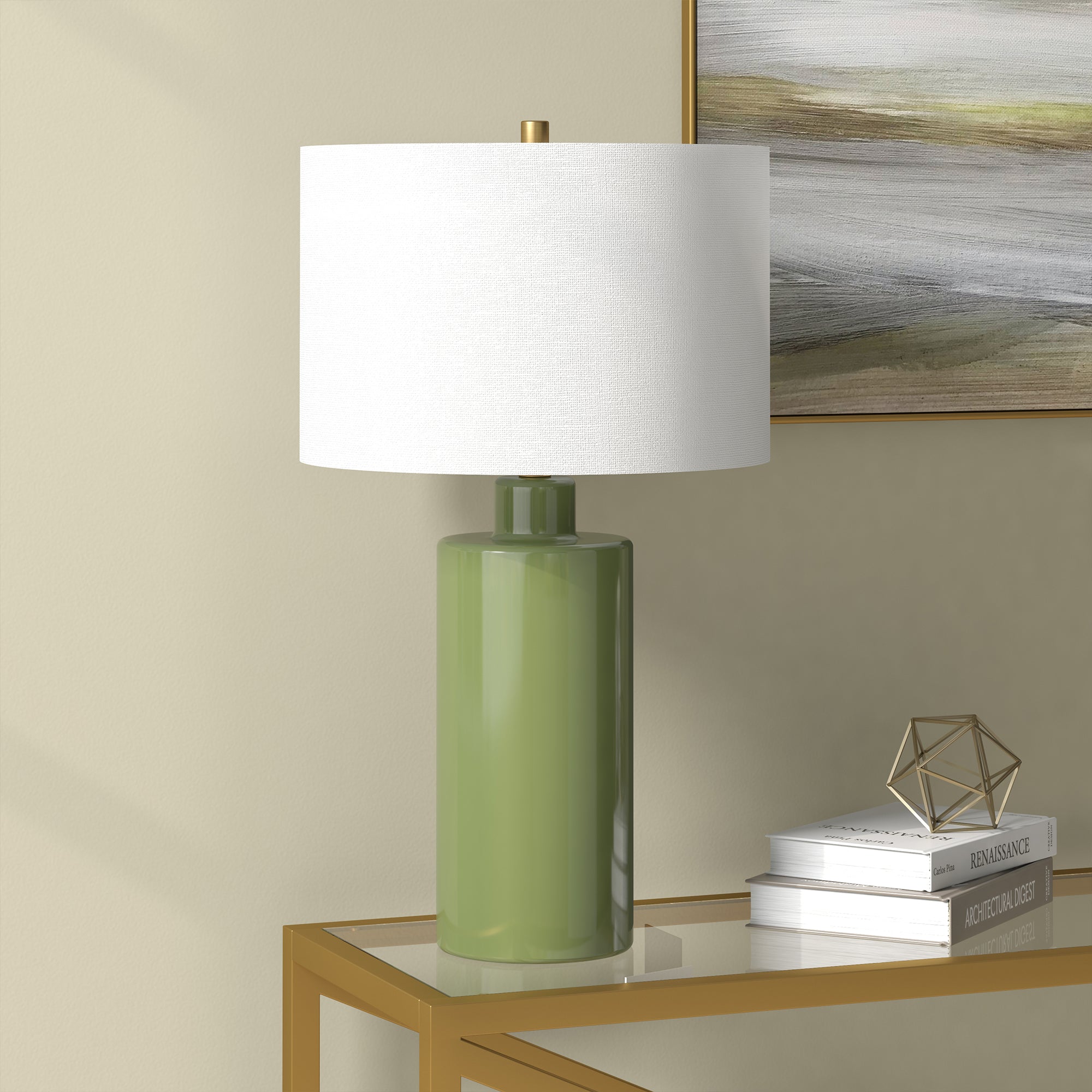 Add an on-trend pop of color to your living room, bedside, or den with this Scandinavian-inspired modern table lamp. It features a substantial ceramic base finished with a glossed exterior in a muted yet eye-catching colorway that will really tie the room together. The fixture is topped off with a crisp white fabric drum shade that perfectly complements the soft curves featured in the design.