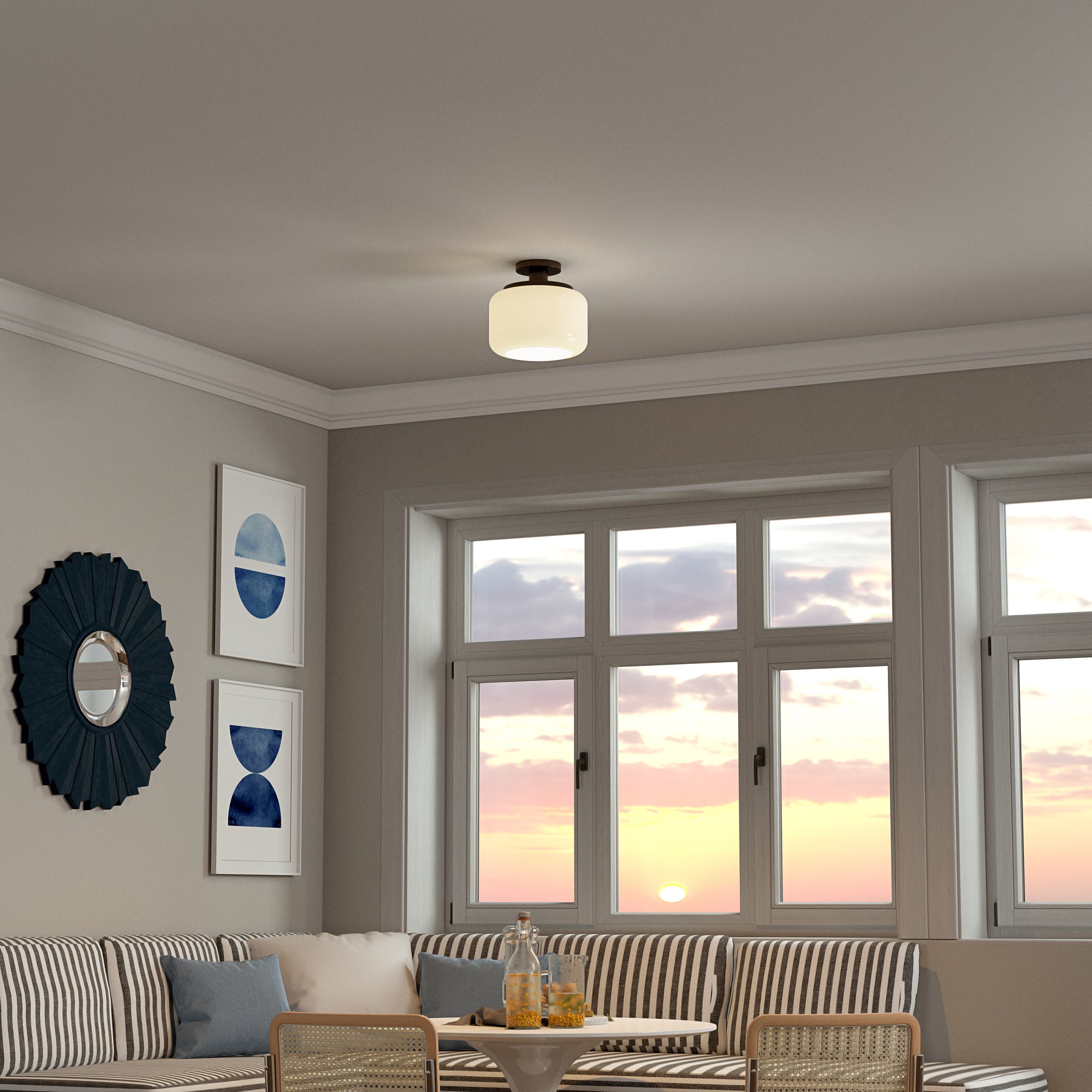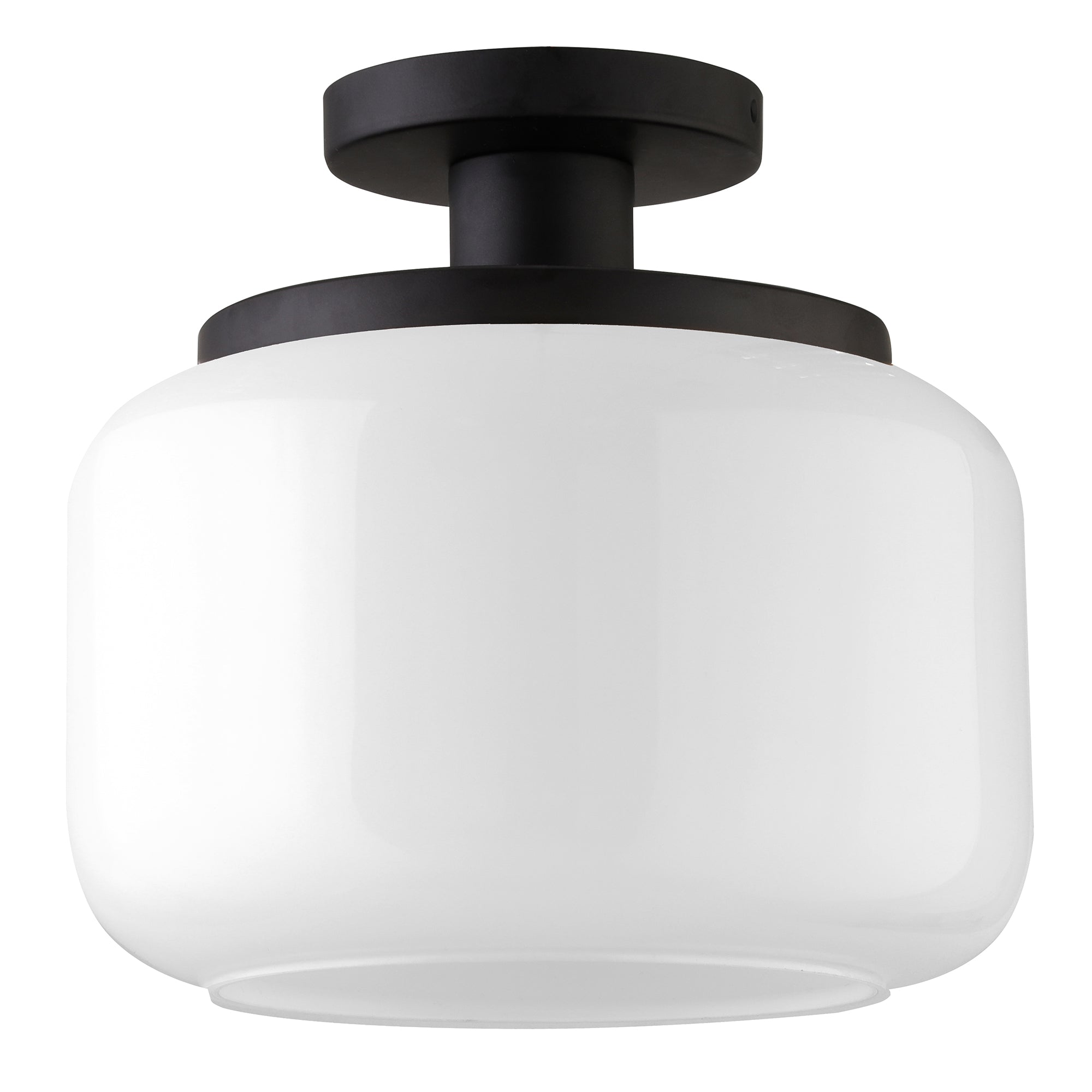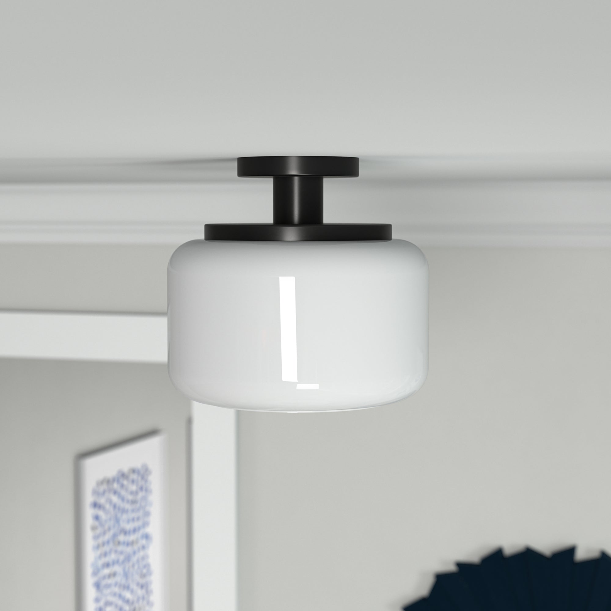 - Paired with a white drum-shaped globe glass shade.