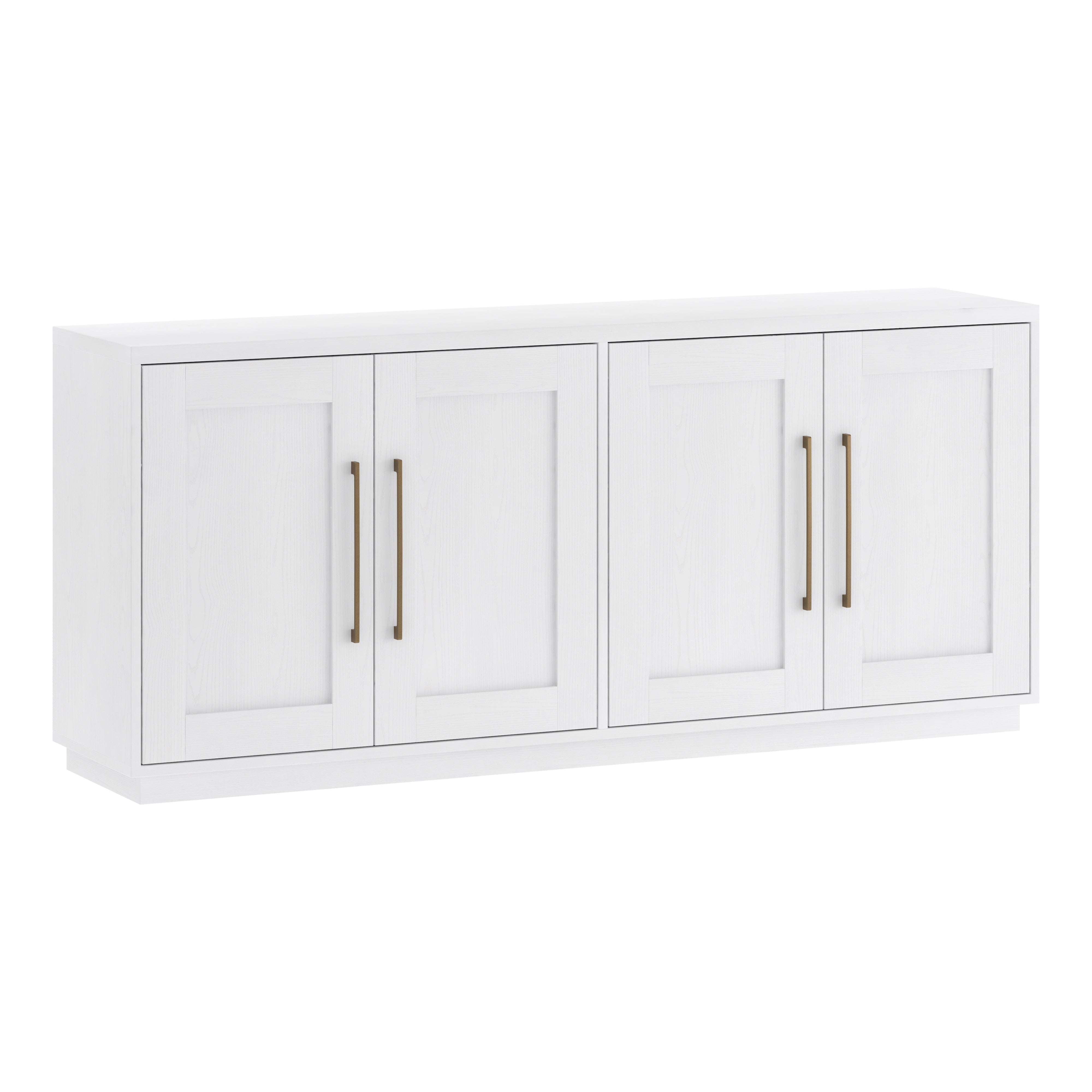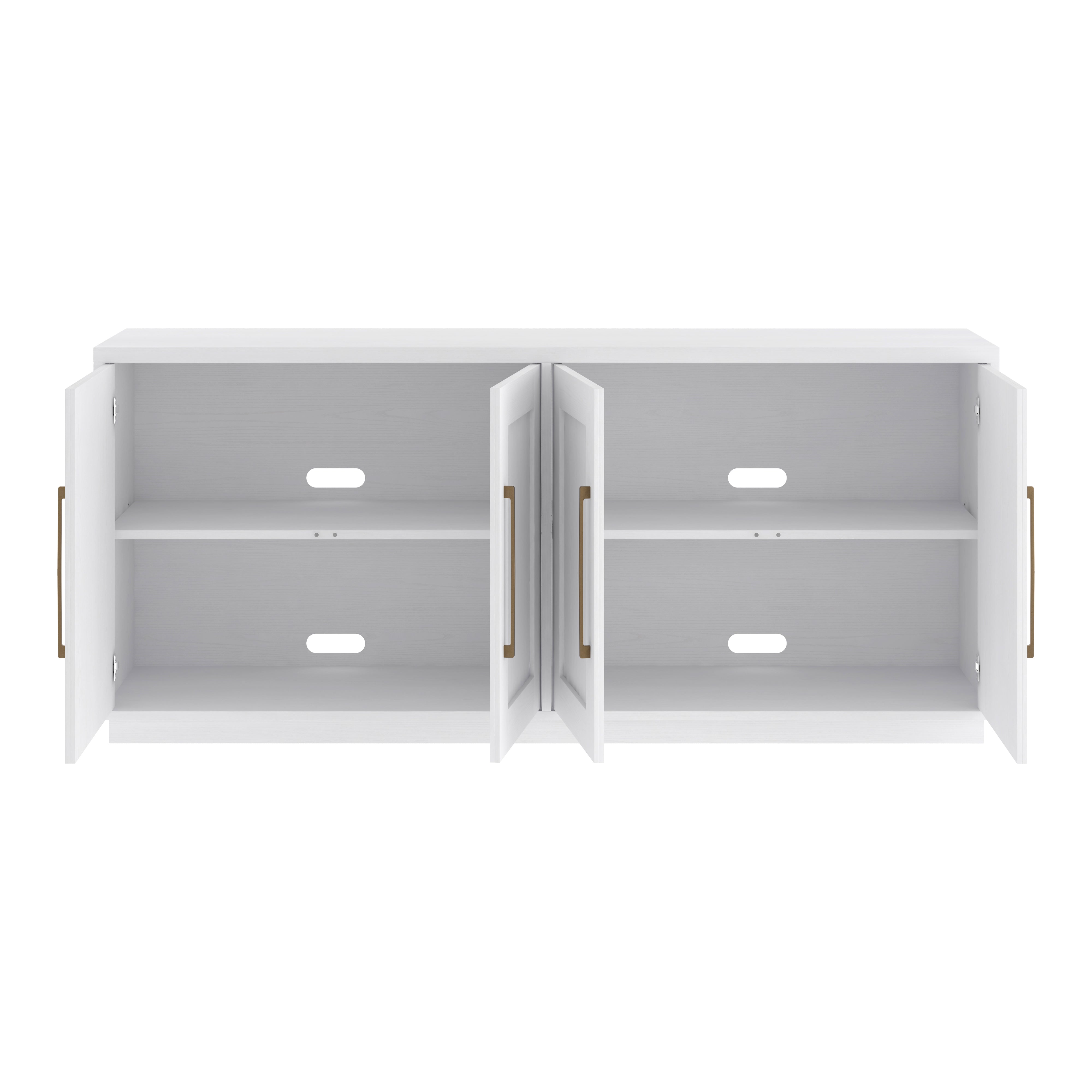 Cultivate effortless transitional style with the clean lines and eye-catching details of this 68” Buffet Table. Easy to style with many design inspirations, a rich wood-tone finish complements sleek metal cabinet handles. Featuring dual-level closed cabinet shelving, there’s plenty of storage space for your consoles and media collections, while cable management cut-outs in the finished back panel keep your cable and cord situation in check. Whether placed in your dining room or kitchen as a traditional buffet, or your living room for additional storage, this sturdy and spacious piece creates endless options for entertaining.